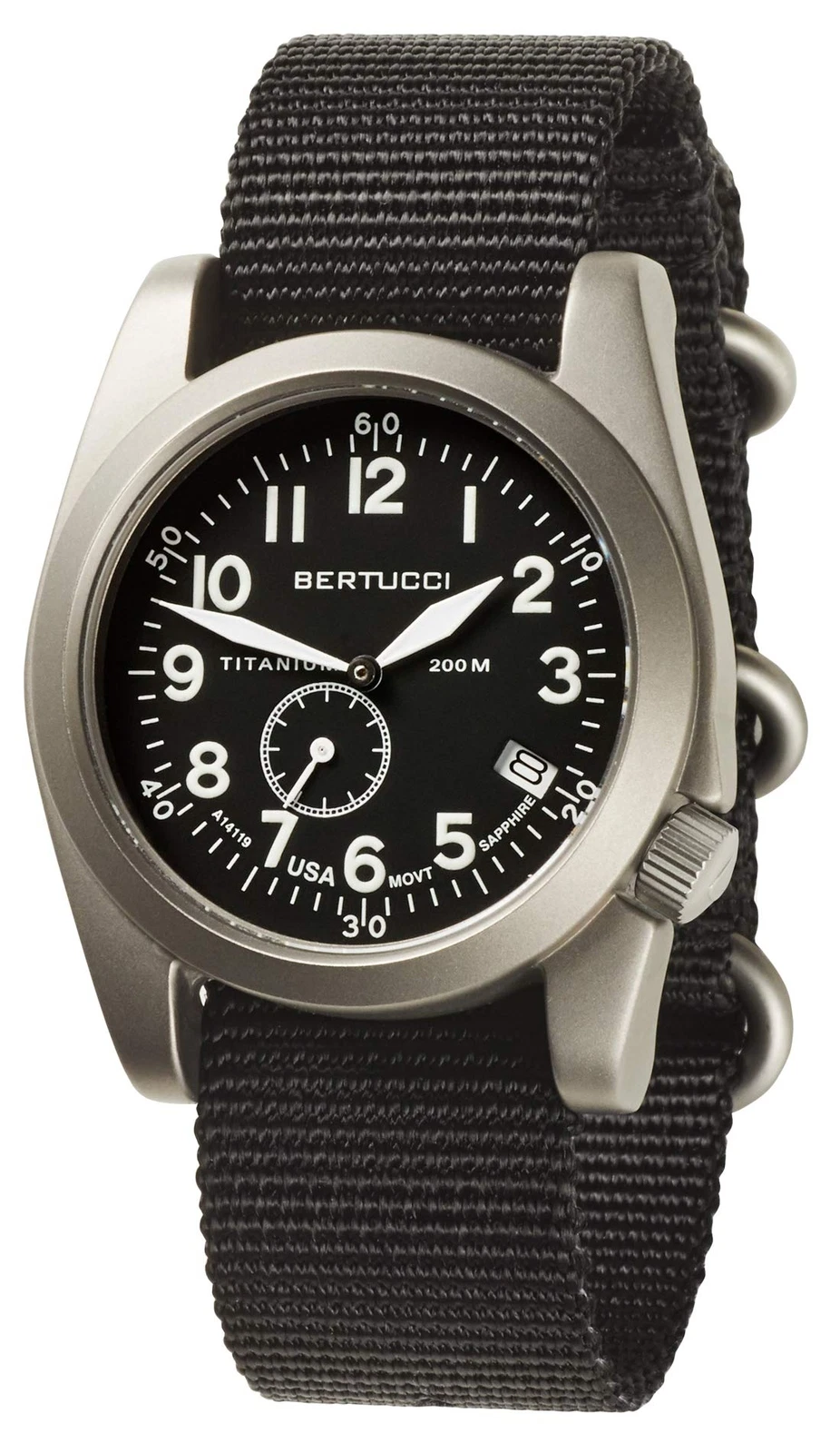 Bertucci A-11t Americana Black Nylon Strap 42mm Titanium Dial Field Watch