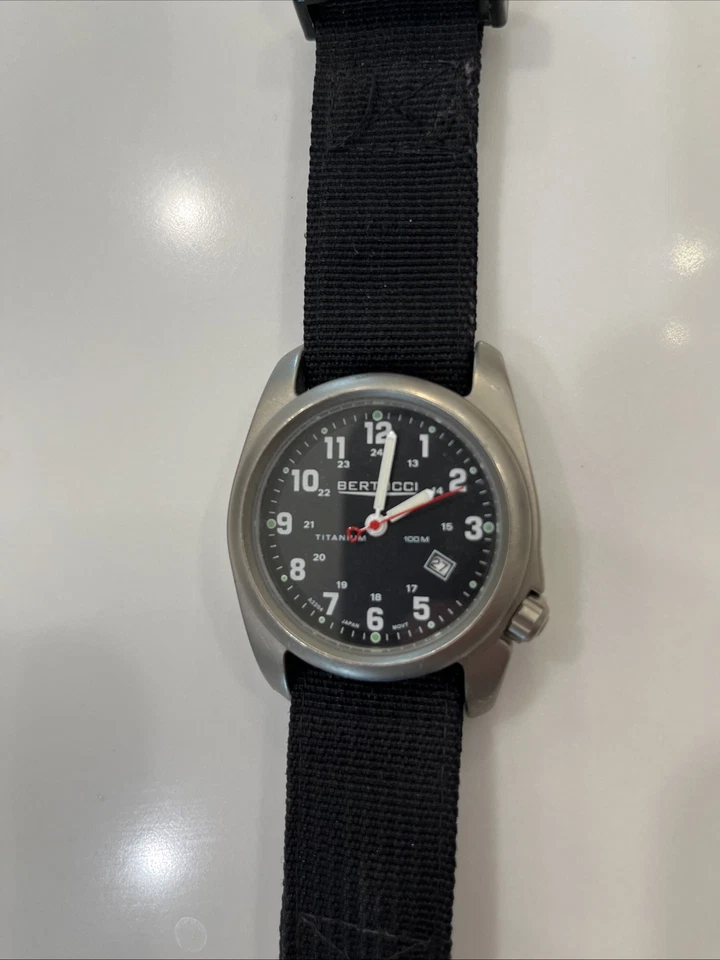 Bertucci A-2T Original Classic Mens Quartz Watch Black Dial Titanium Case