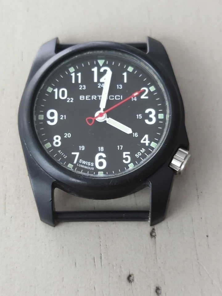 Bertucci A-2R DX3 Field  40mm Black Dial Black Nato Strap Quartz EUC Running