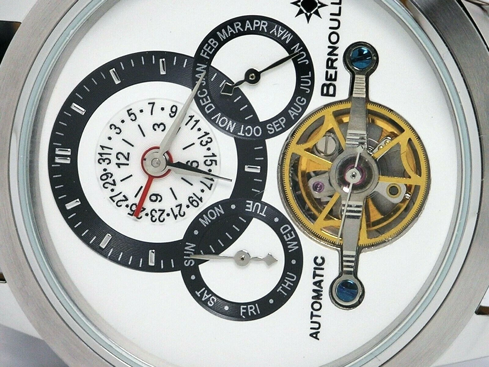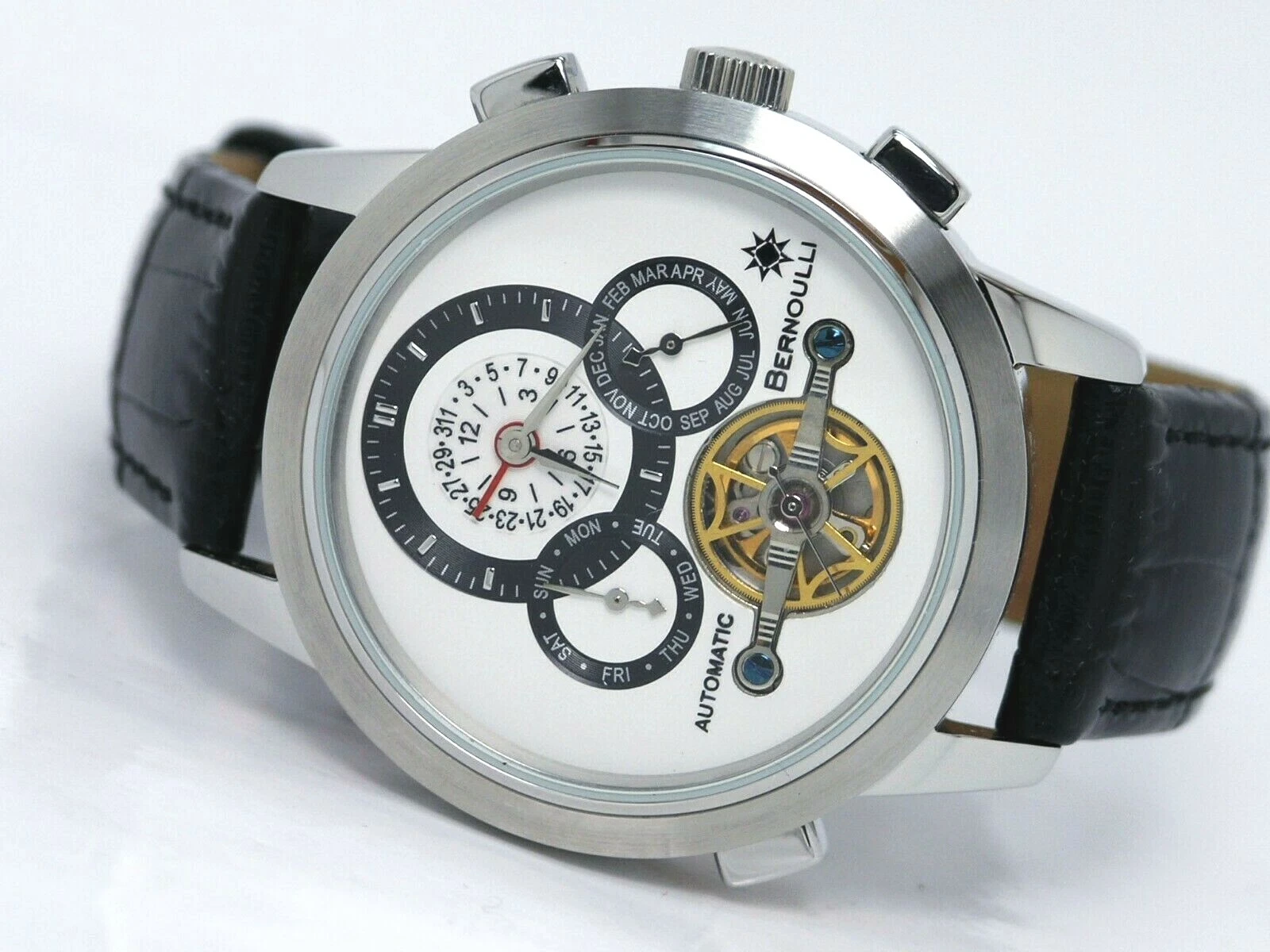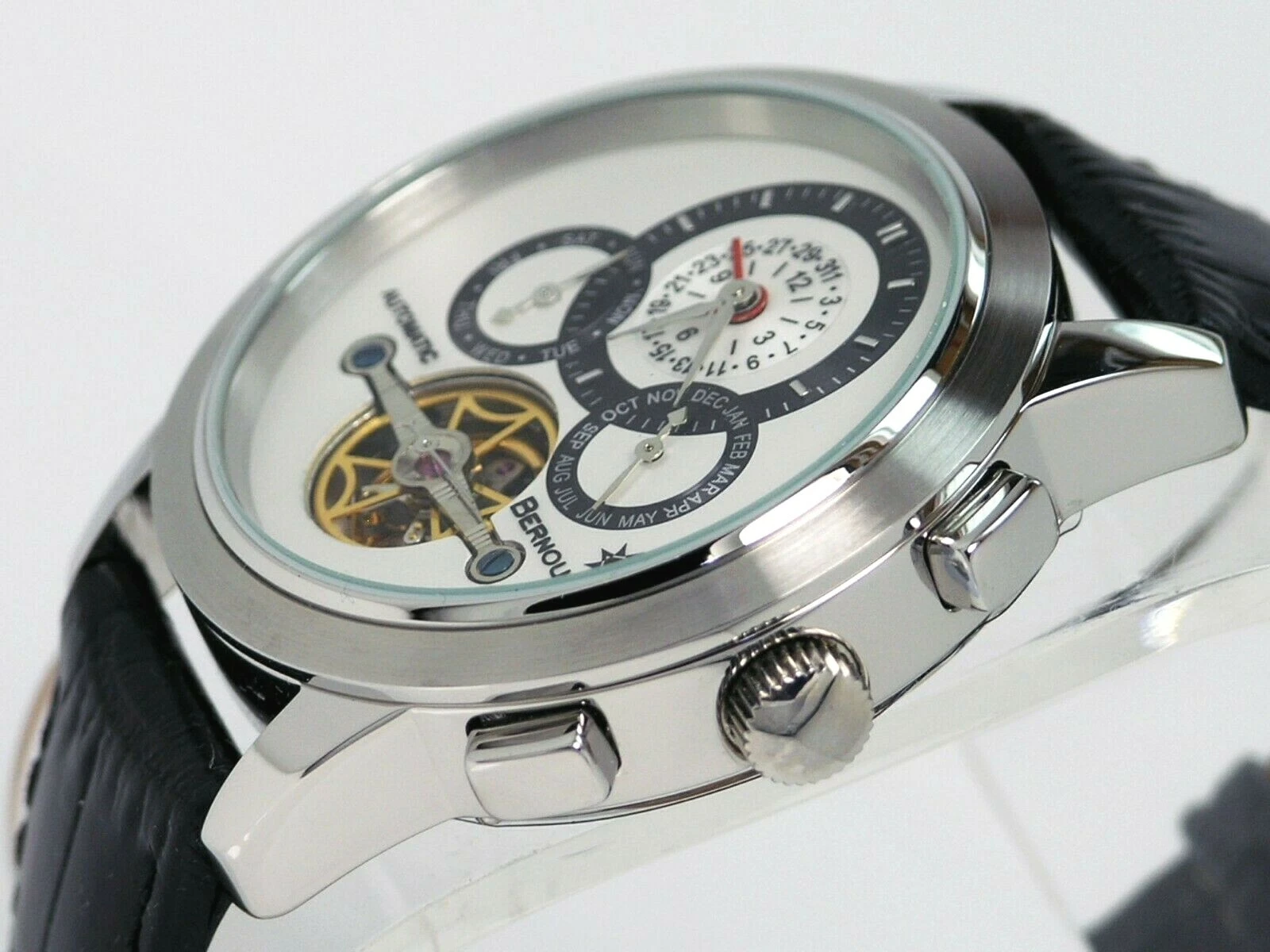 NEW BERNOULLI CORONA WHITE MULTI FUNCTION AUTOMATIC WATCH OPEN HEART DIAL