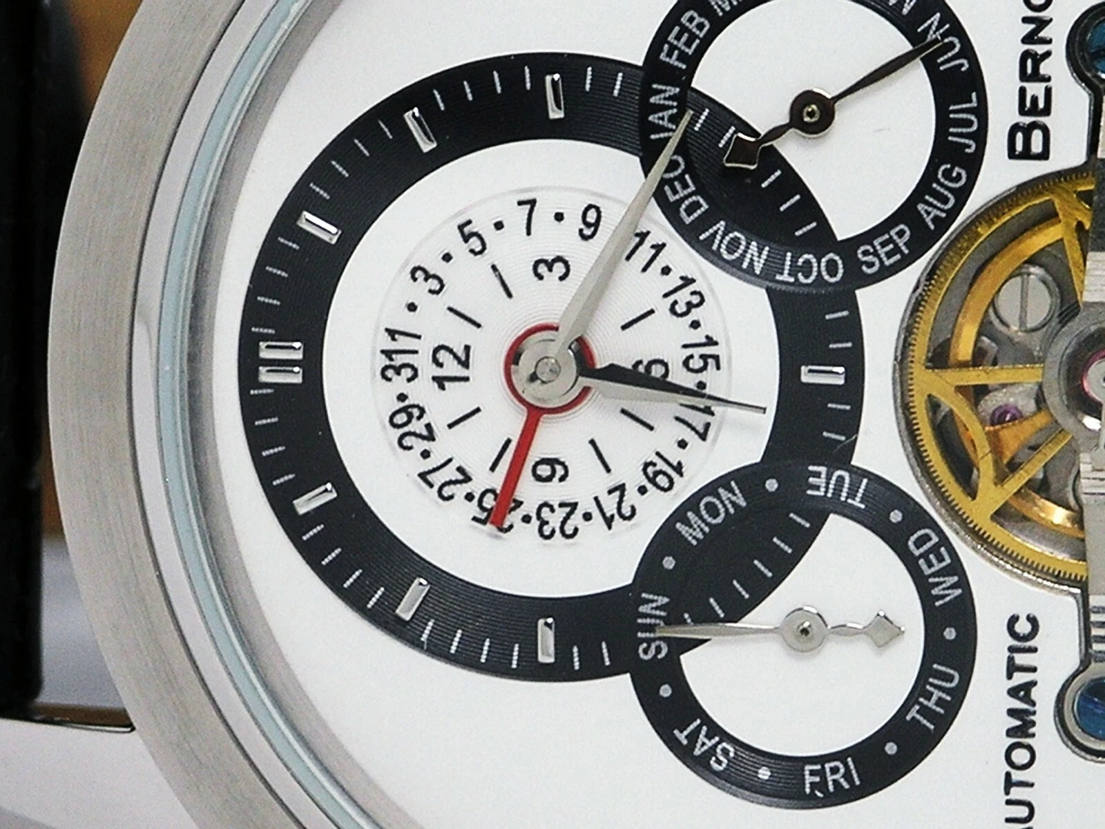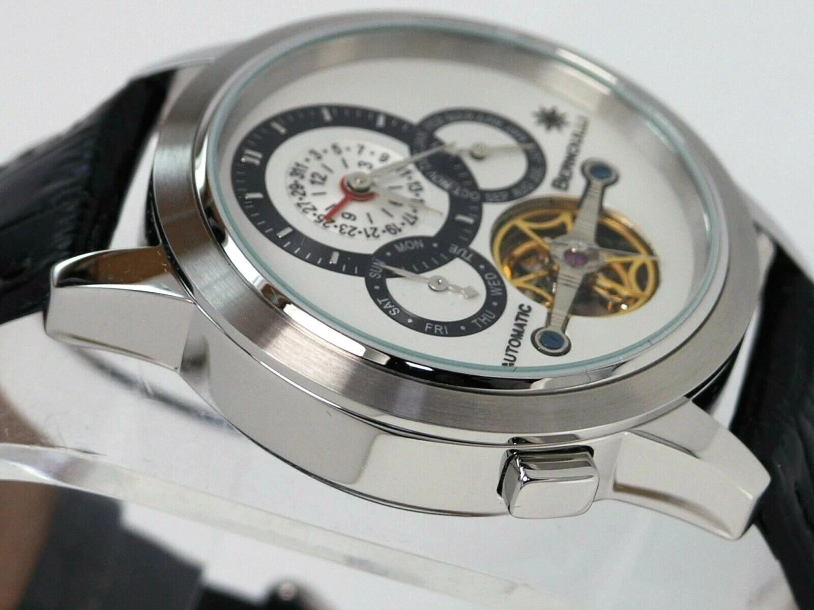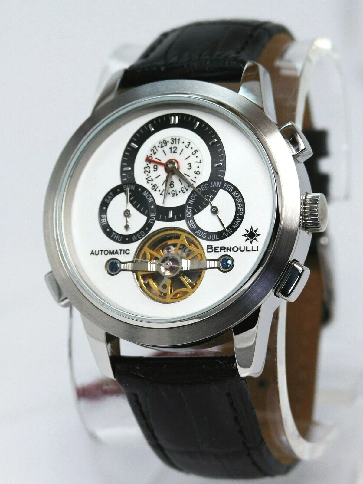 NEW BERNOULLI CORONA WHITE MULTI FUNCTION AUTOMATIC WATCH OPEN HEART DIAL