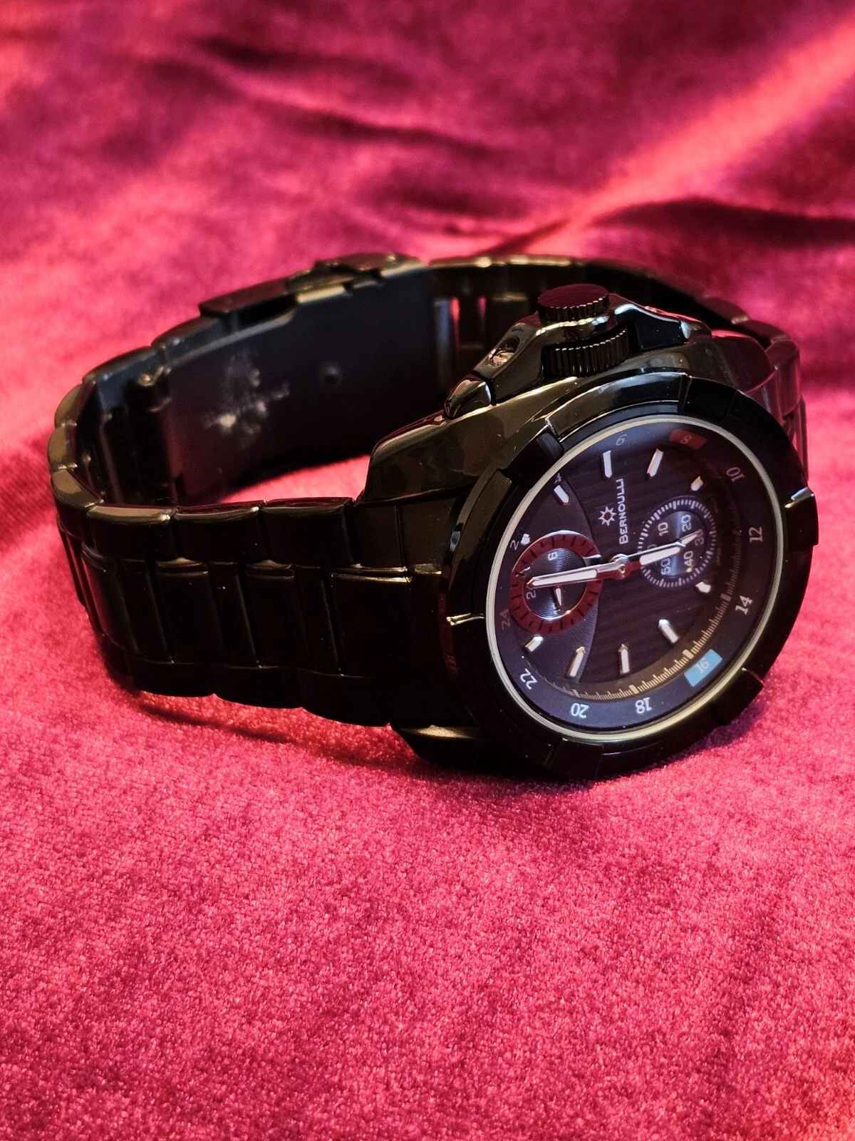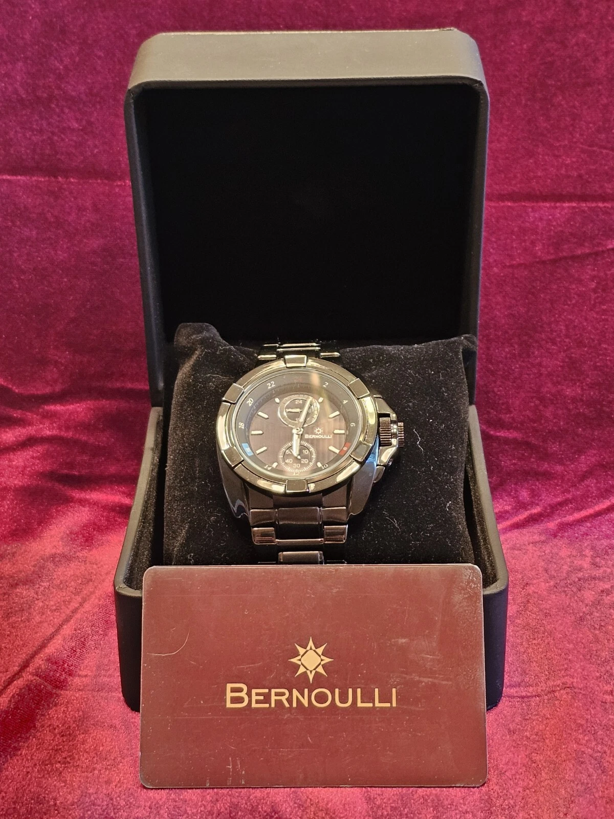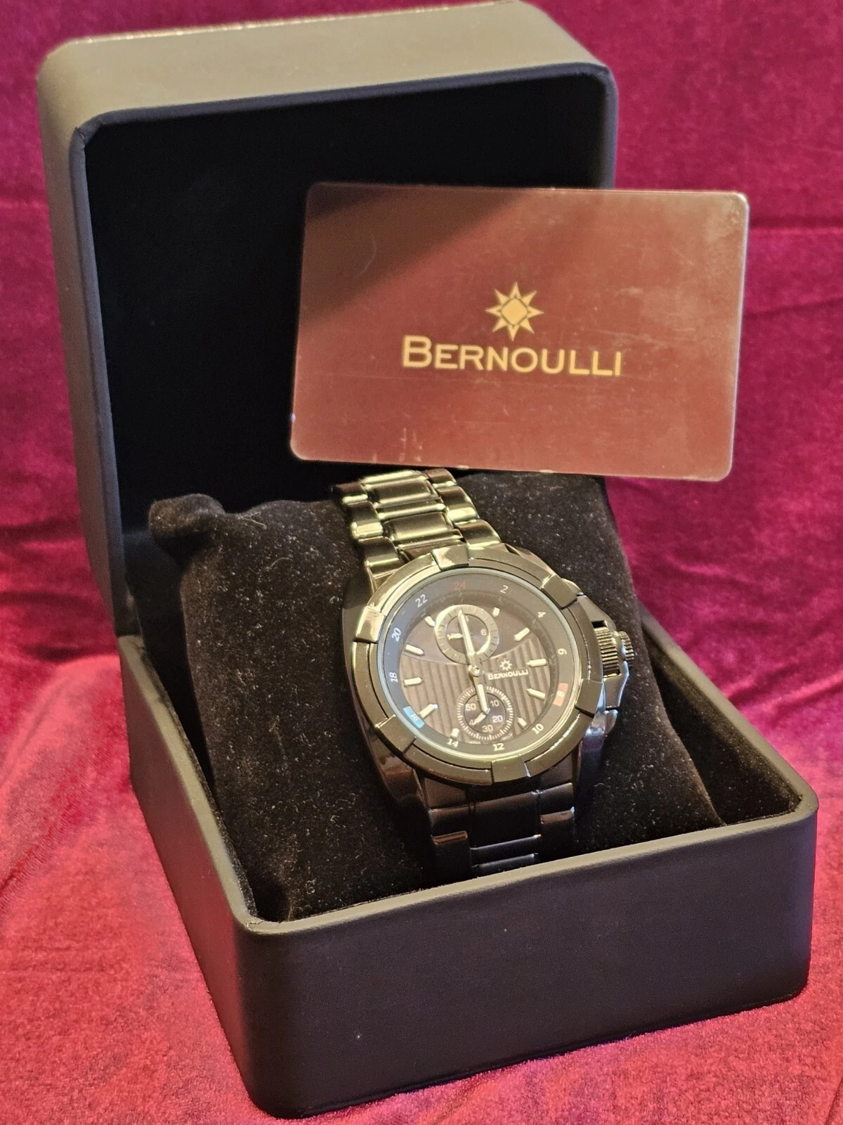 BERNOULLI  Multifunction Black Watch  w/ 60 second & 24 hour Charcoal sub dials