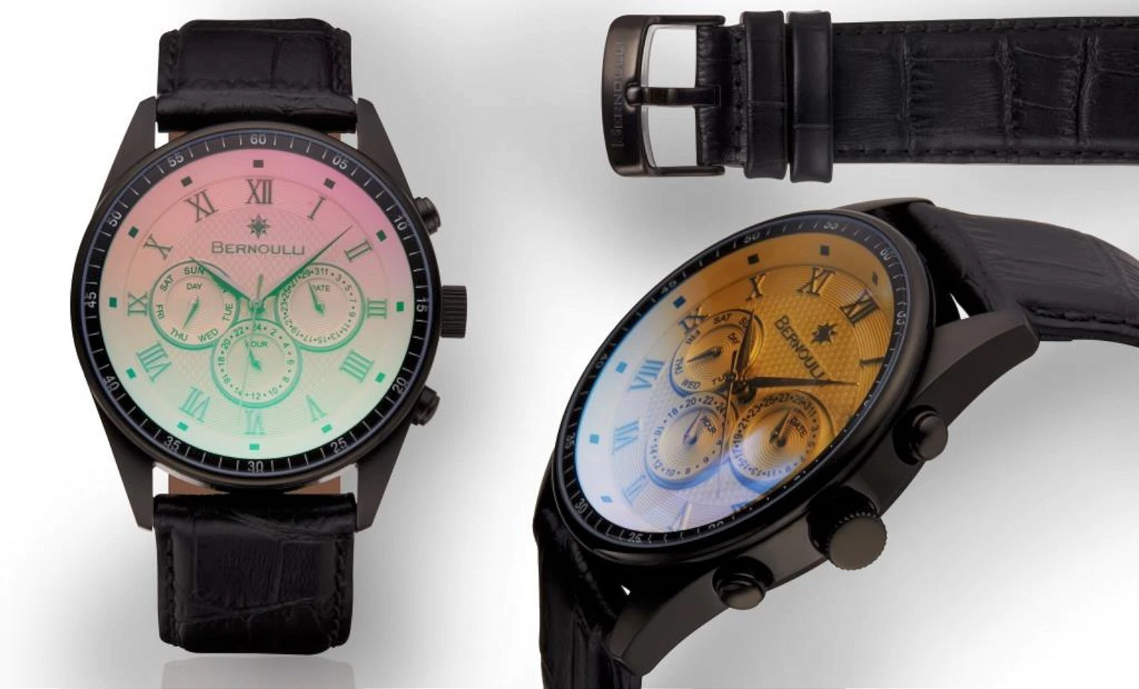 Bernoulli 0585M Men Eclipse Collection Multi-Function Shiny Pink Dial Watch