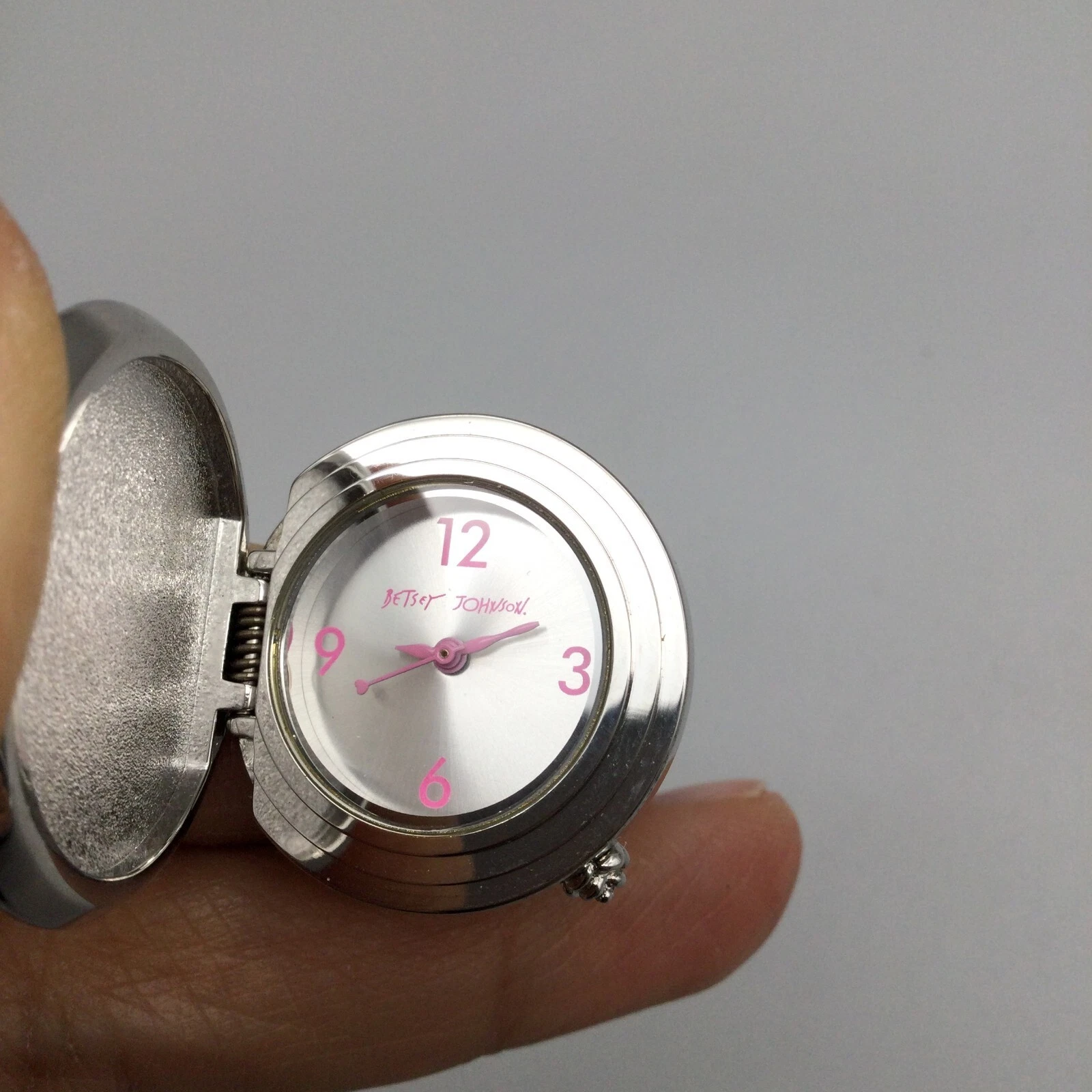 Betsey Johnson Hidden Dial Ring Watch Women 28mm Silver Tone New Battery