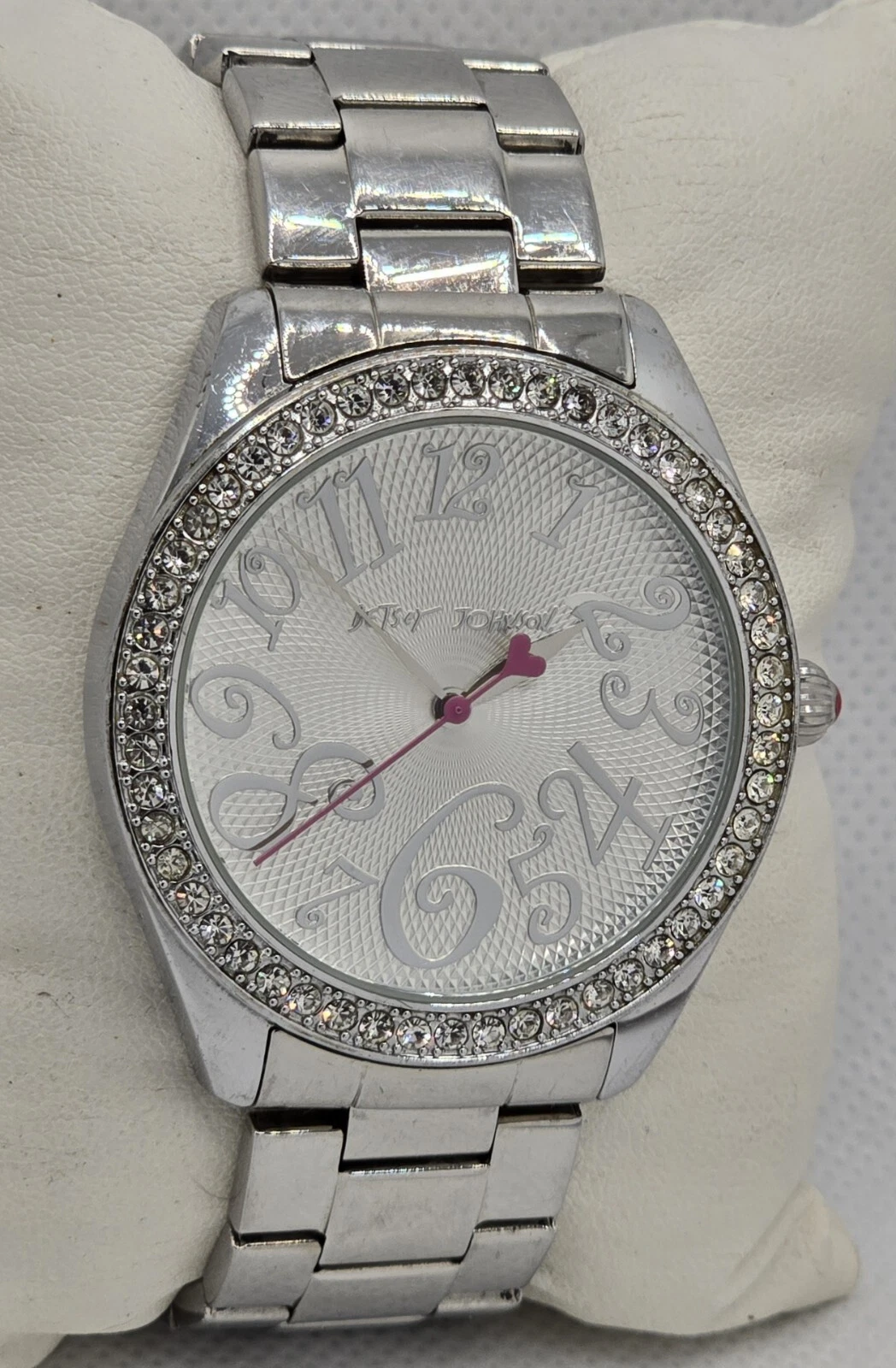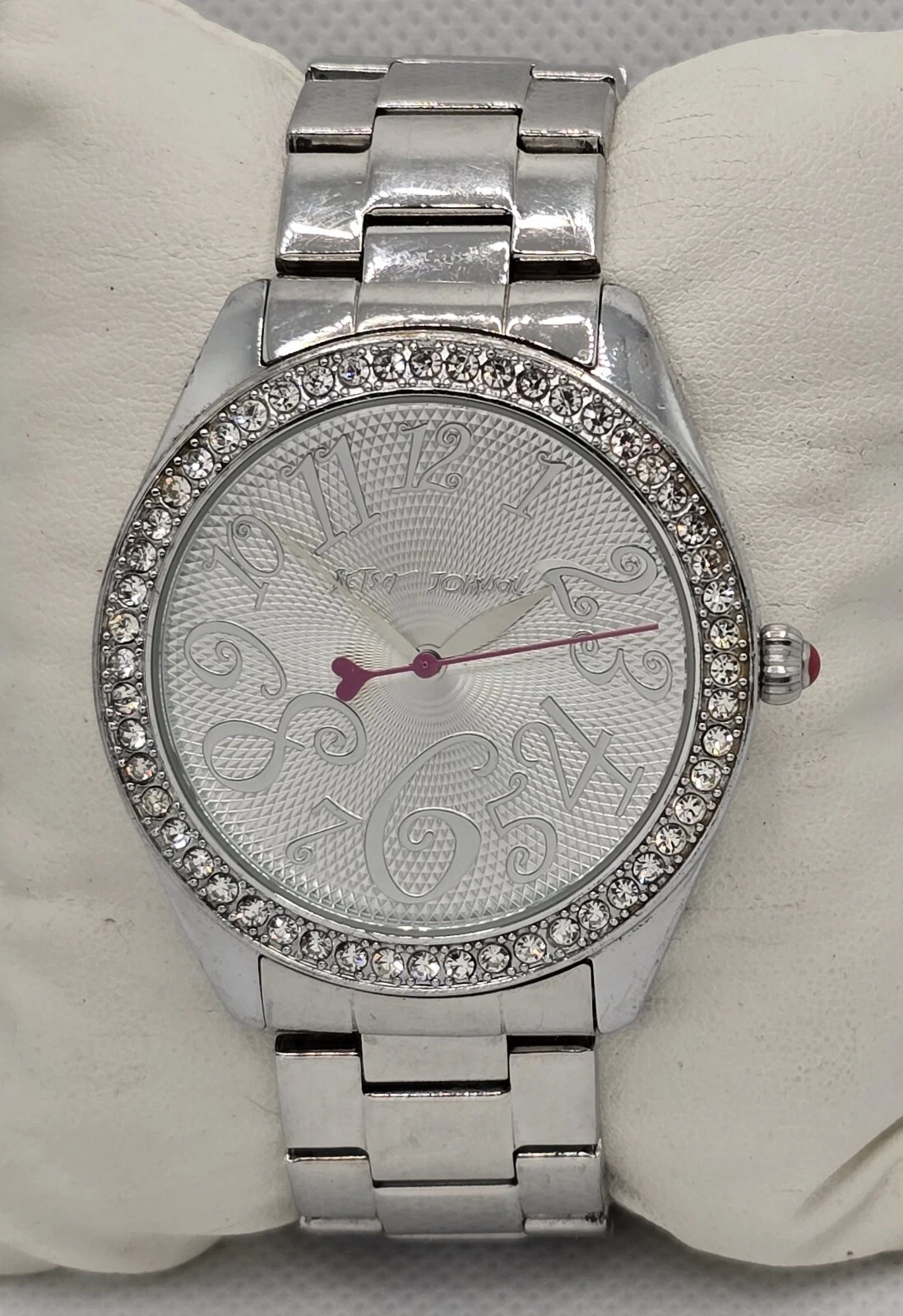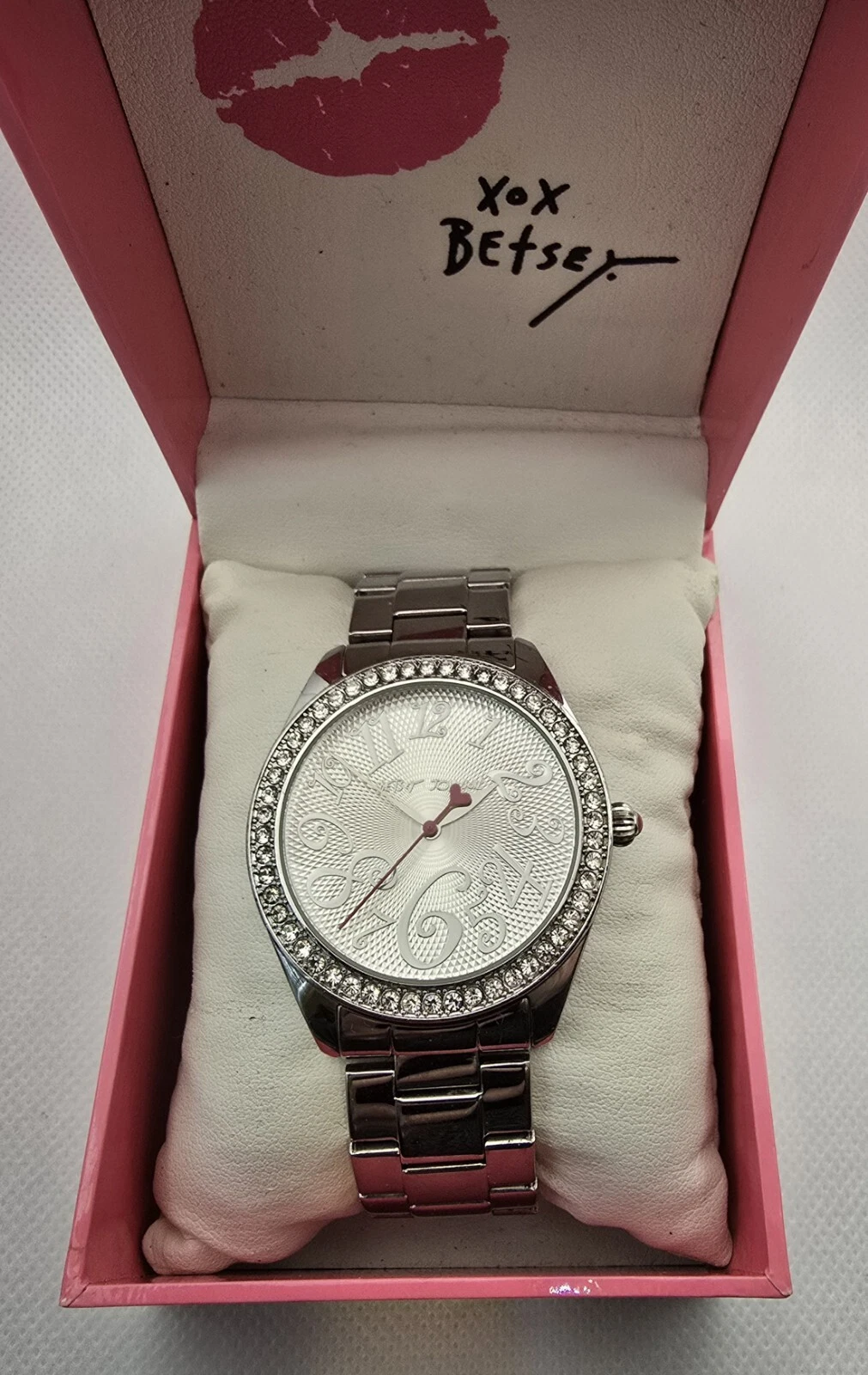 Women's Betsey Johnson XOXO with Box Silver Rhinestone Bracelet Band Watch 03
