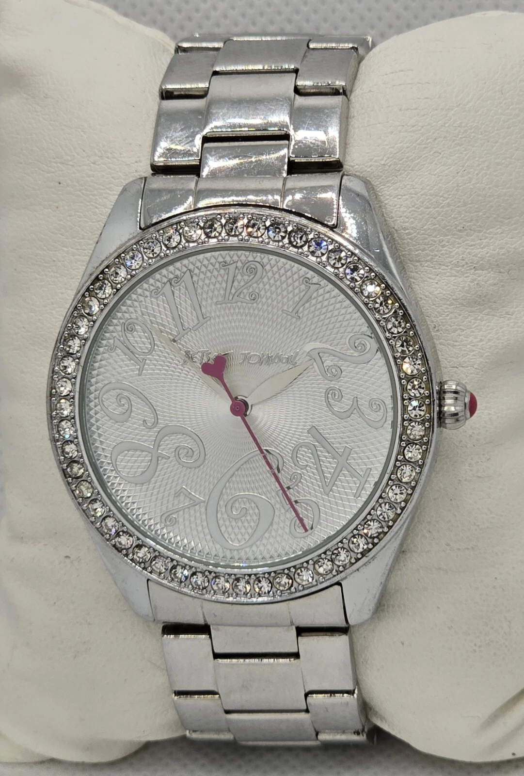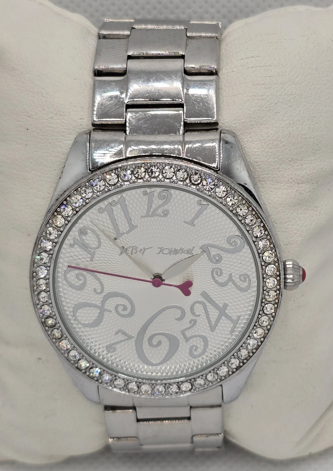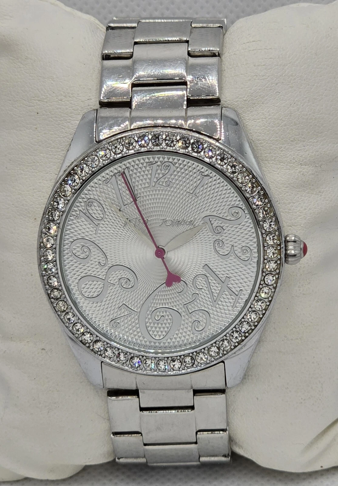 Women's Betsey Johnson XOXO with Box Silver Rhinestone Bracelet Band Watch 03