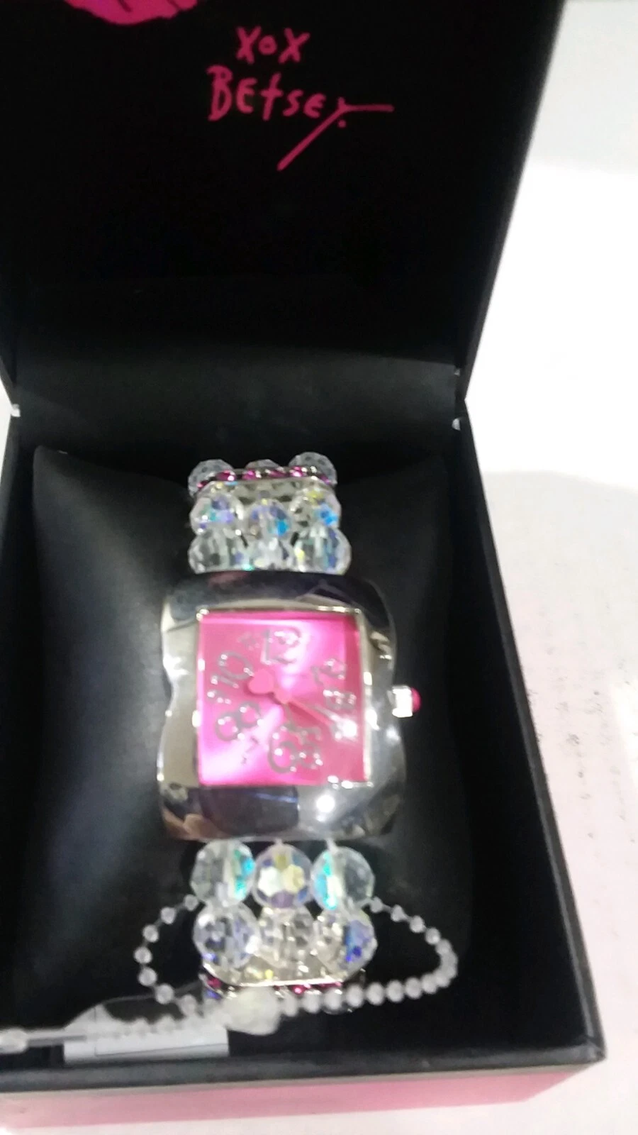 Betsey Johnson Bead Band Deep Pink face Watch New
