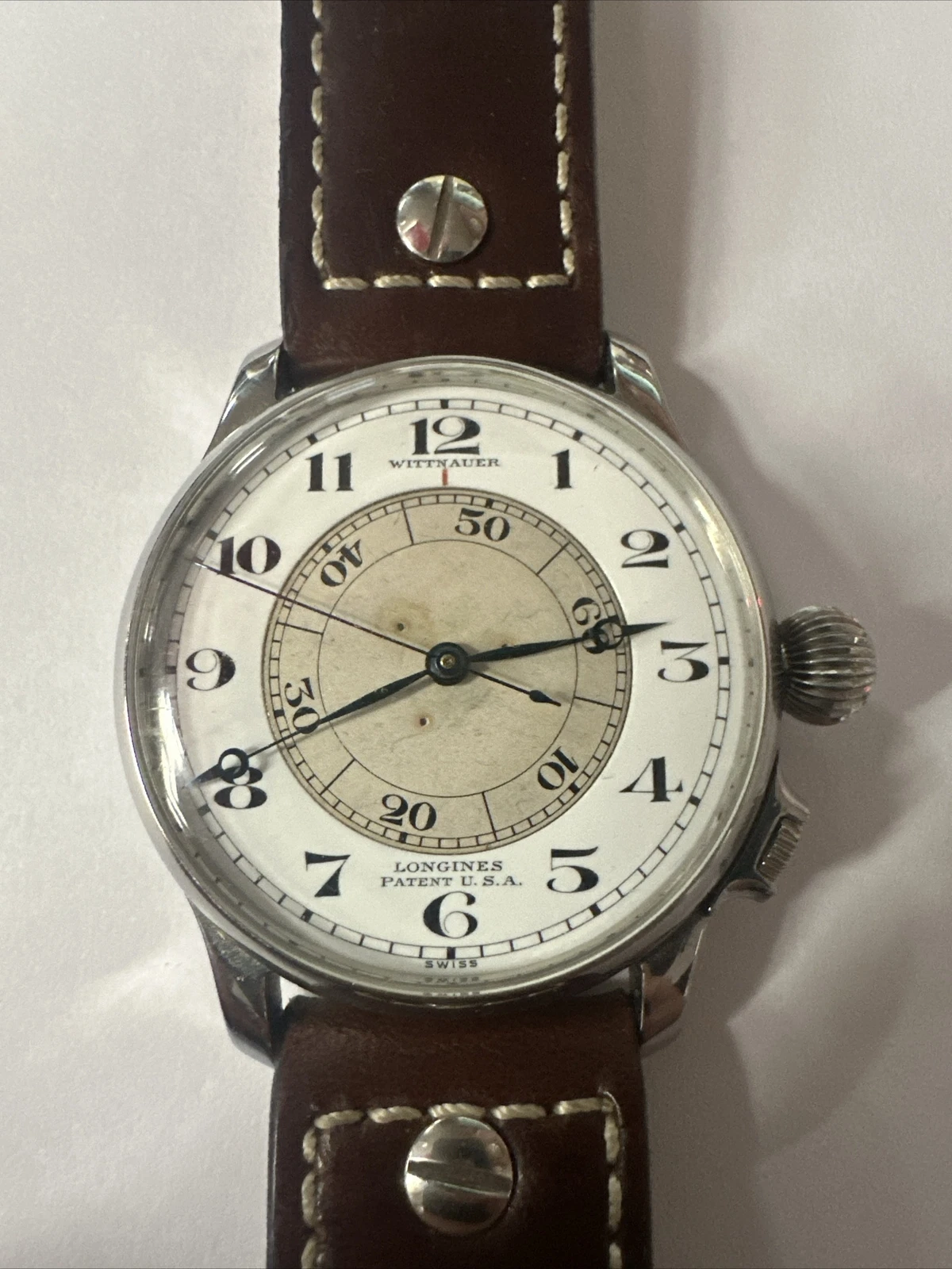 LonginesWittnauer Weems Stainless Steel 47mm Second Setting Pilots Wristwatch