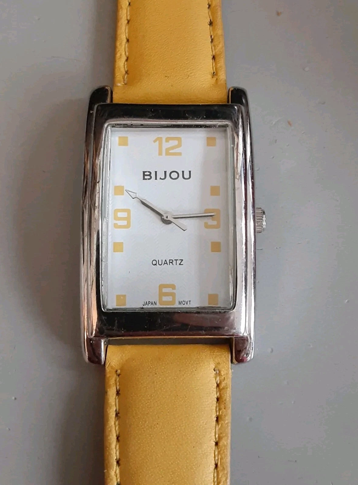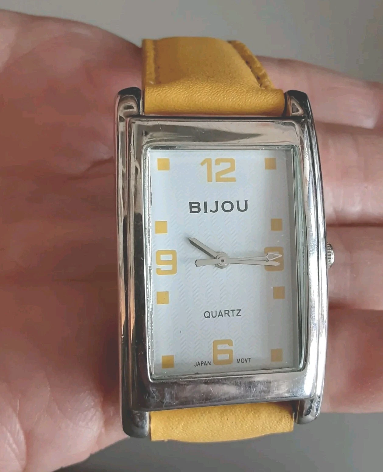 Bijou Ladies Quartz Watch Silver Yellow Band New 1*7*8.5