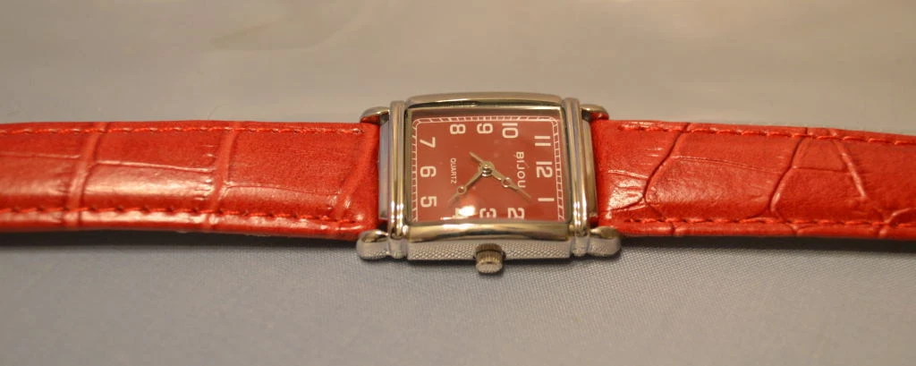 BIJOU WATCH w RED LEATHER BAND & ORIGINAL POUCH MIP Quartz