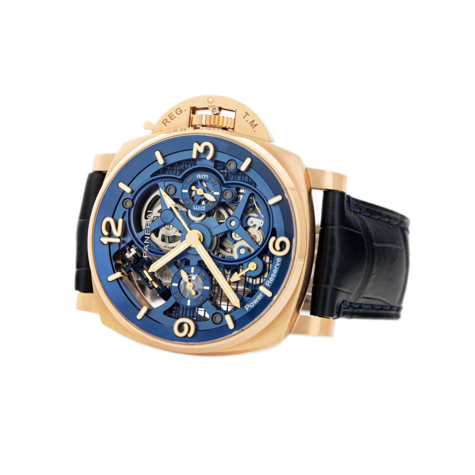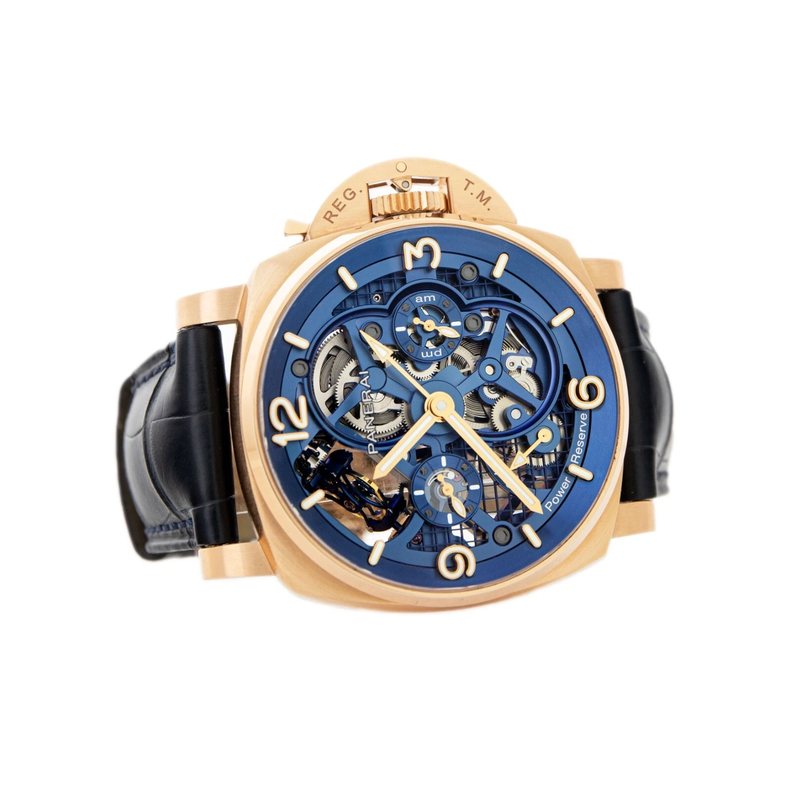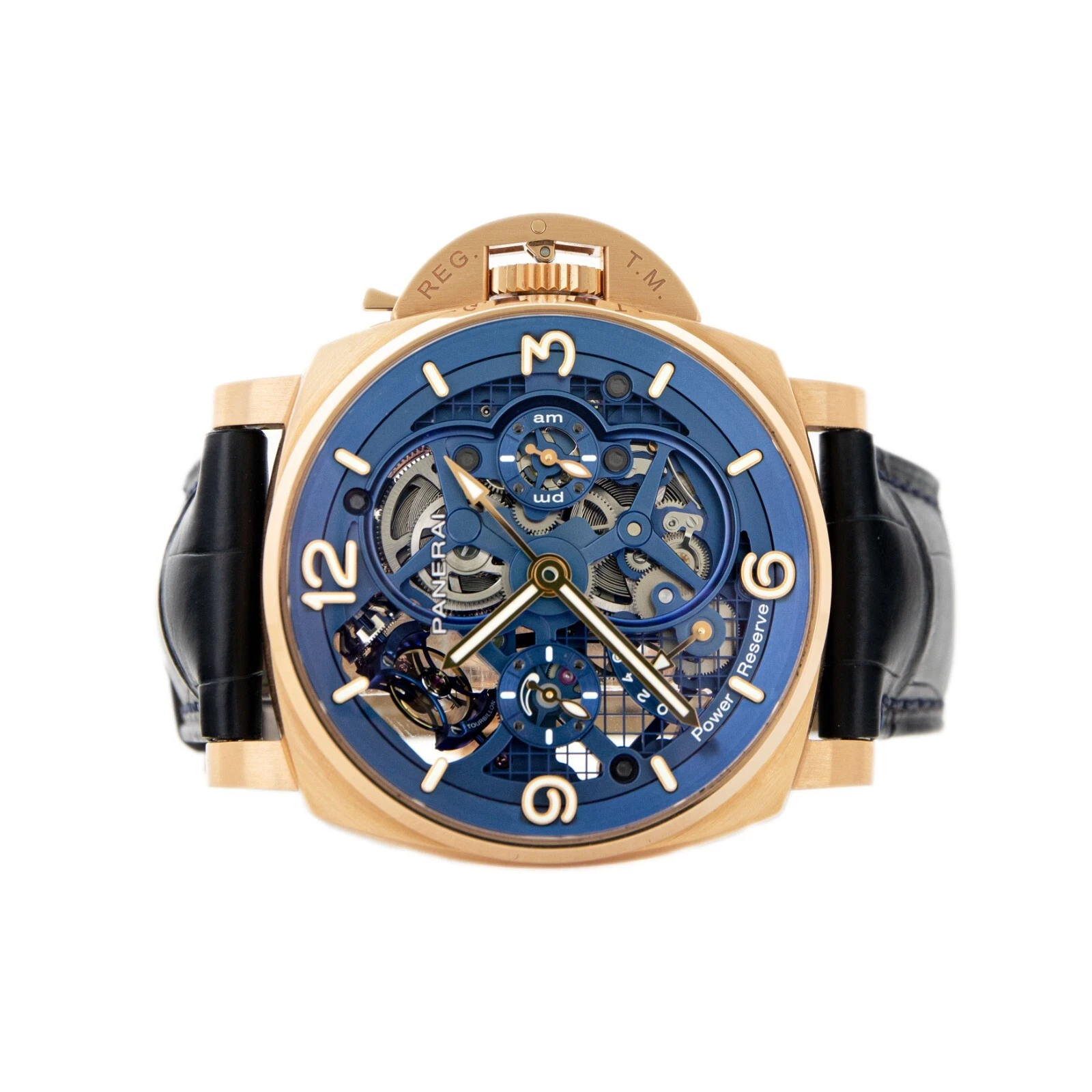 Panerai Luminor Tourbillon GMT Rose Gold Skeleton Dial 47mm PAM01060 Full Set