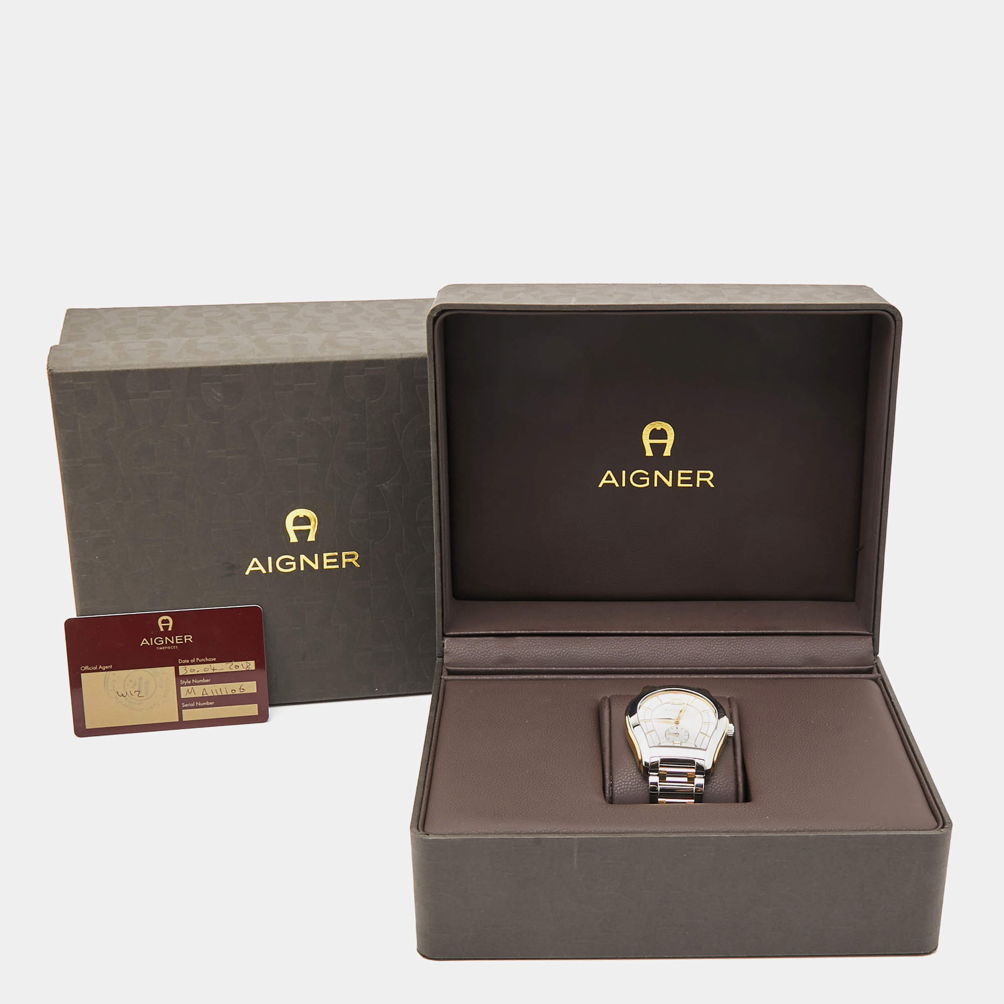 Aigner Silver Two Tone Stainless Steel Vicenza A111100 Men's Wristwatch 39 mm