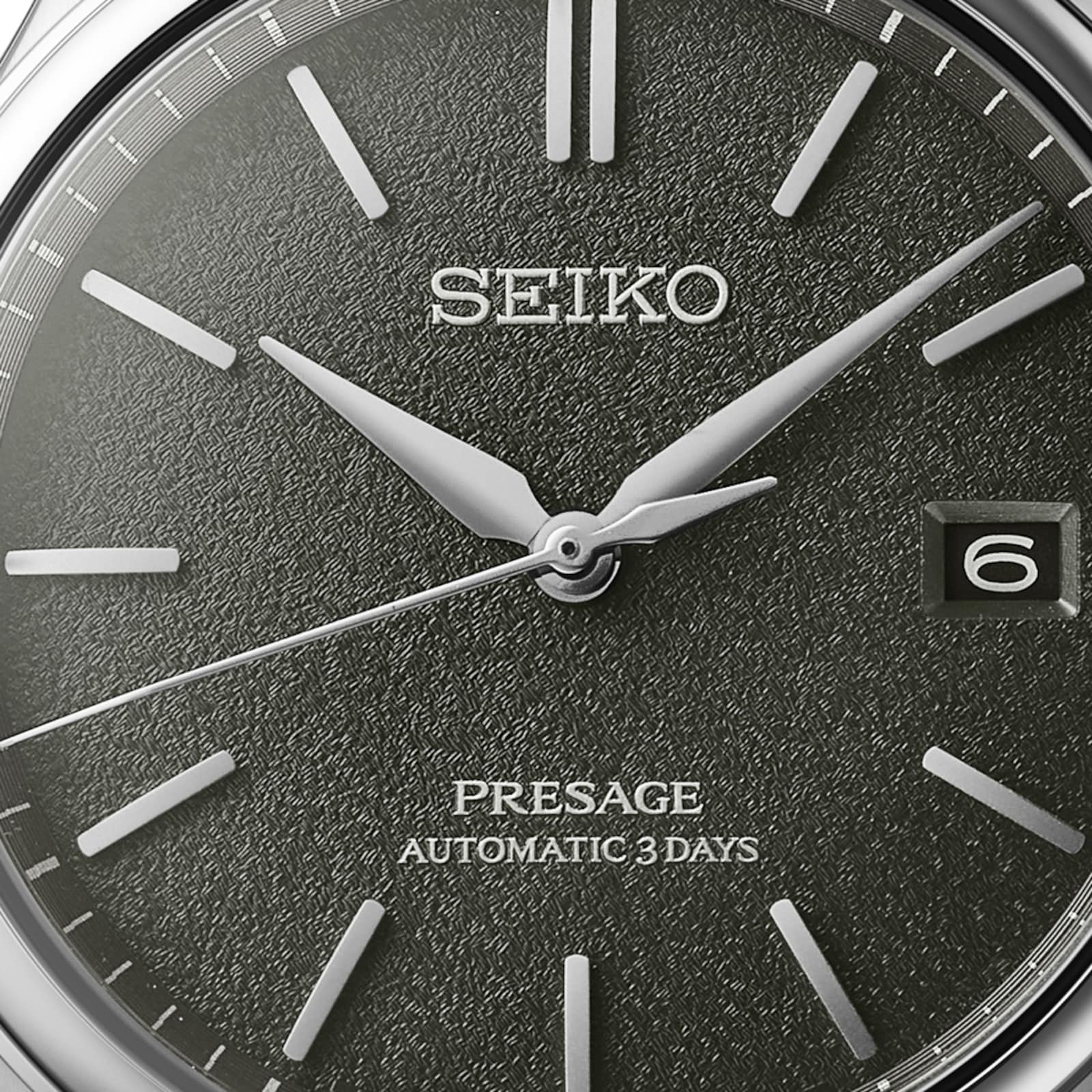 Introducing the Presage Classic Series – watches designed with inherent Japanese elegance. Named ‘Sensaicha’ meaning grey green for the colour of its dial, the dial texture is inspired by soft Japanese silk – a material which has long featured in Japan’s history since ancient times in home décor and clothing. Under sapphire glass, the curved dial with curved hands and indices evoke vintage style and are specifically designed to maximise light reflections. The seven-piece multi-row bracelet has been developed and inspired by 1970s retro-style metal watch bracelets. Not only are these designed for style and to reflect the light, each piece is short at only 6mm long, allowing for maximum movement and comfort. This Classic Series timepiece is powered by an in-house built 6R55 calibre with a date function at 3 o’clock, accurate to -15/+25 seconds per day, with a three-day 72-hour power reserve. Seiko Presage: Timeless looks, precise mechanical timekeeping. Minimalistic watch designs with a distinctly Japanese aesthetic.