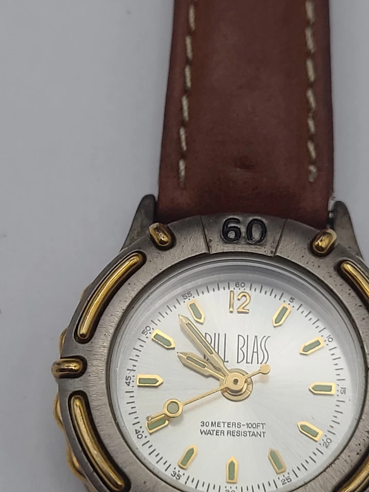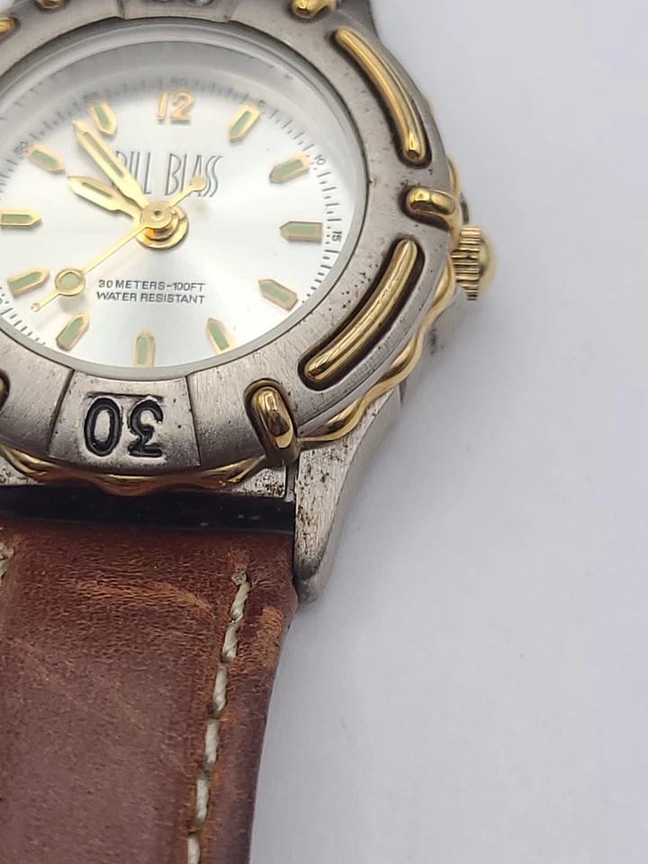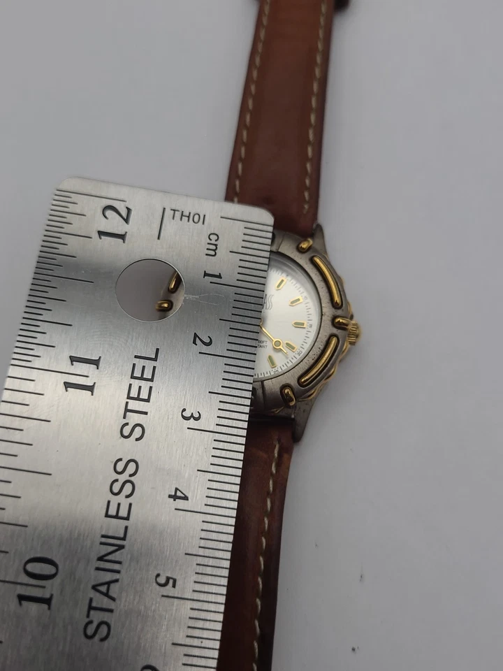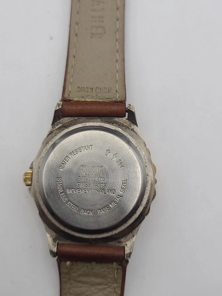 Bill Blass Watch Women Silver Dial Swiss Parts Brown Leather Band New Battery