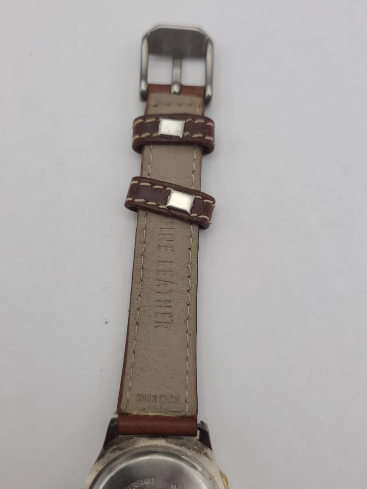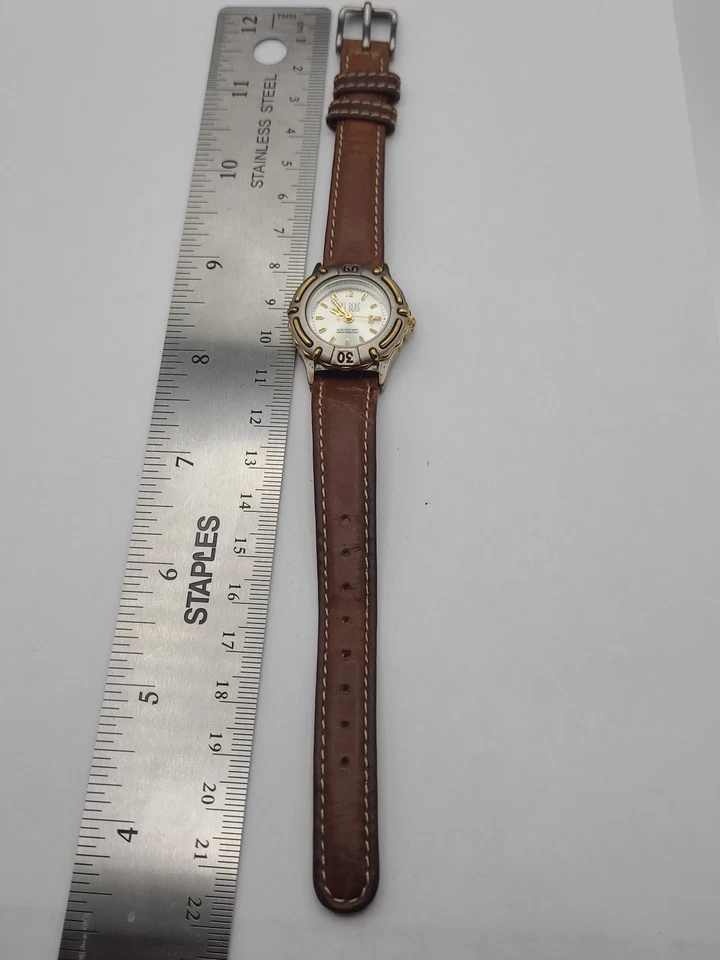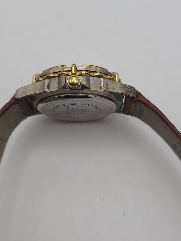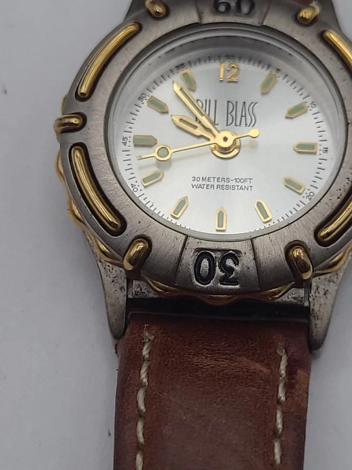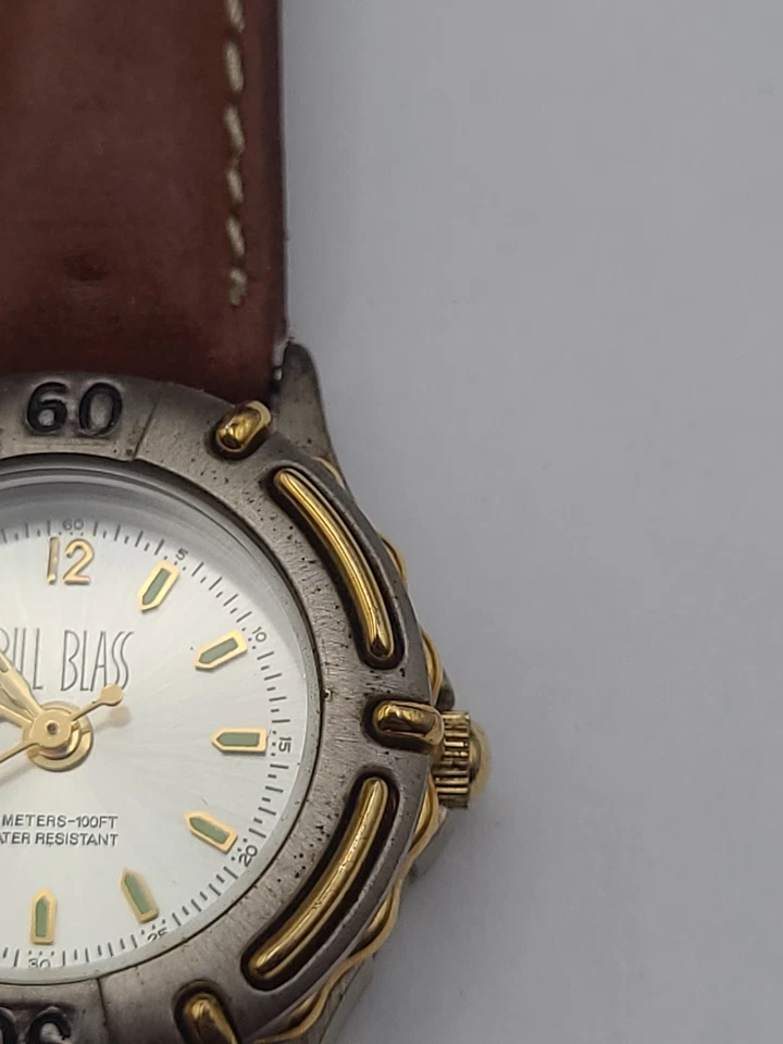Bill Blass Watch Women Silver Dial Swiss Parts Brown Leather Band New Battery