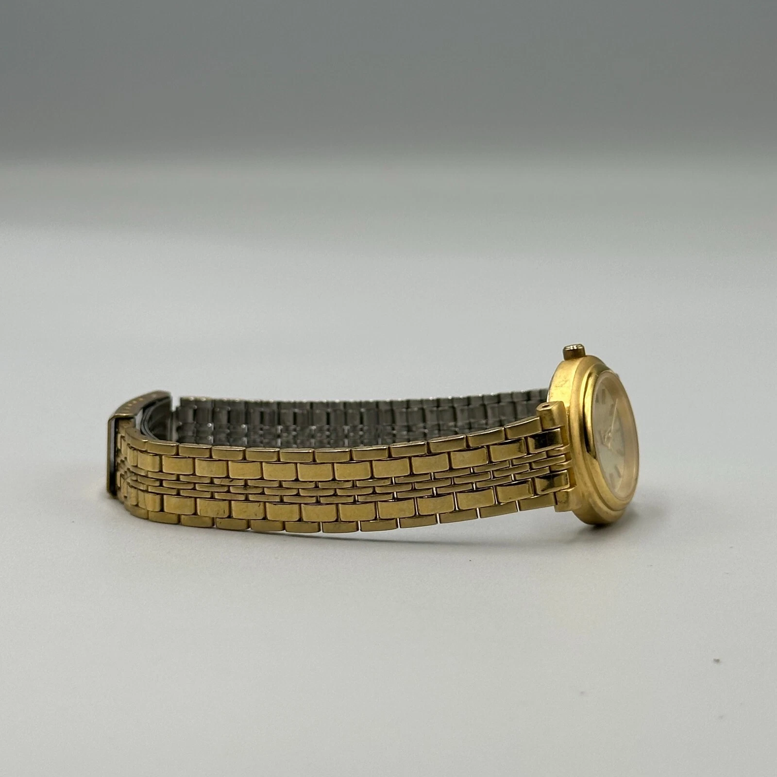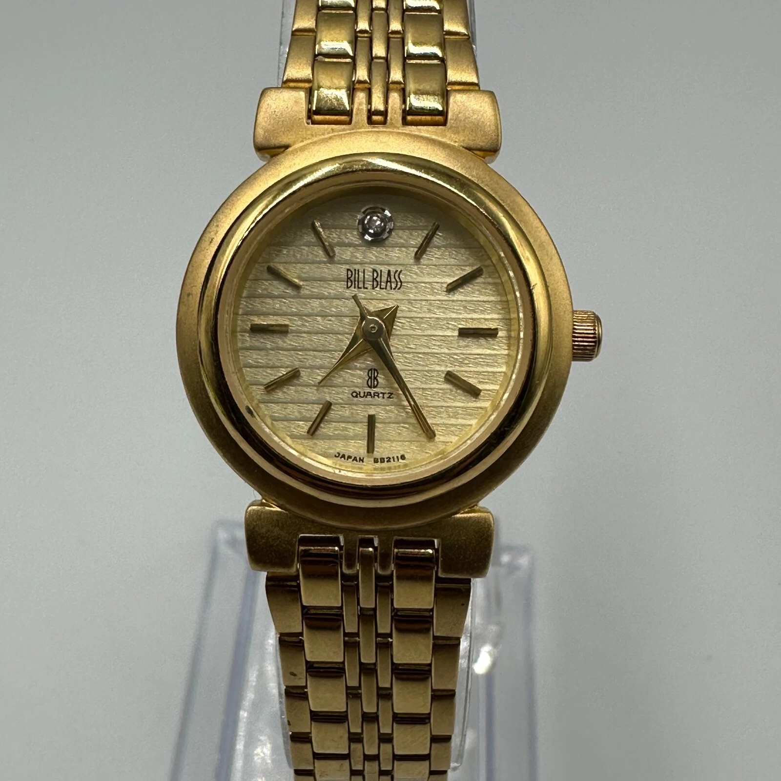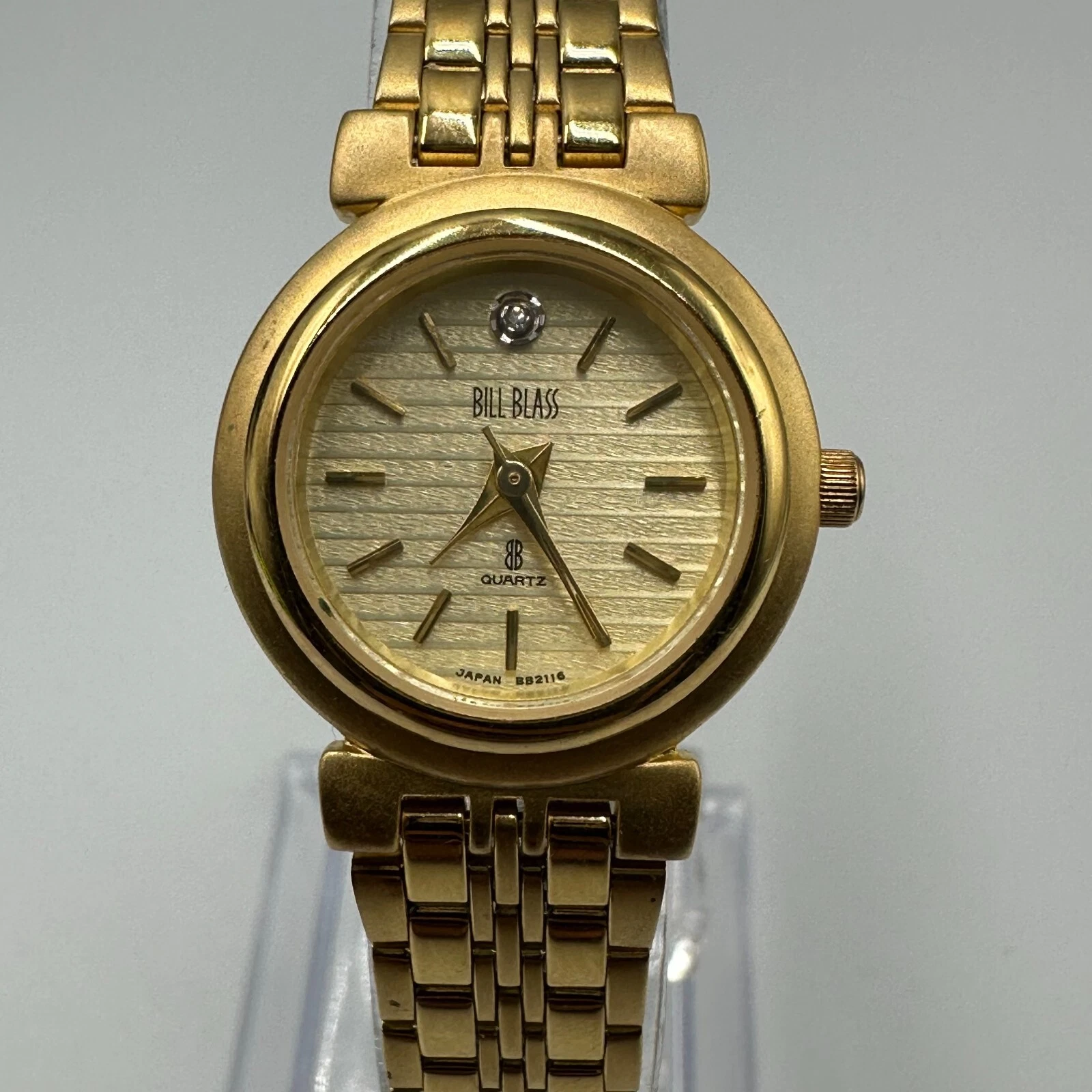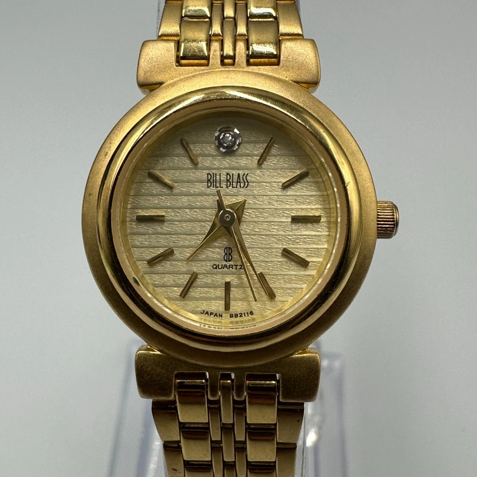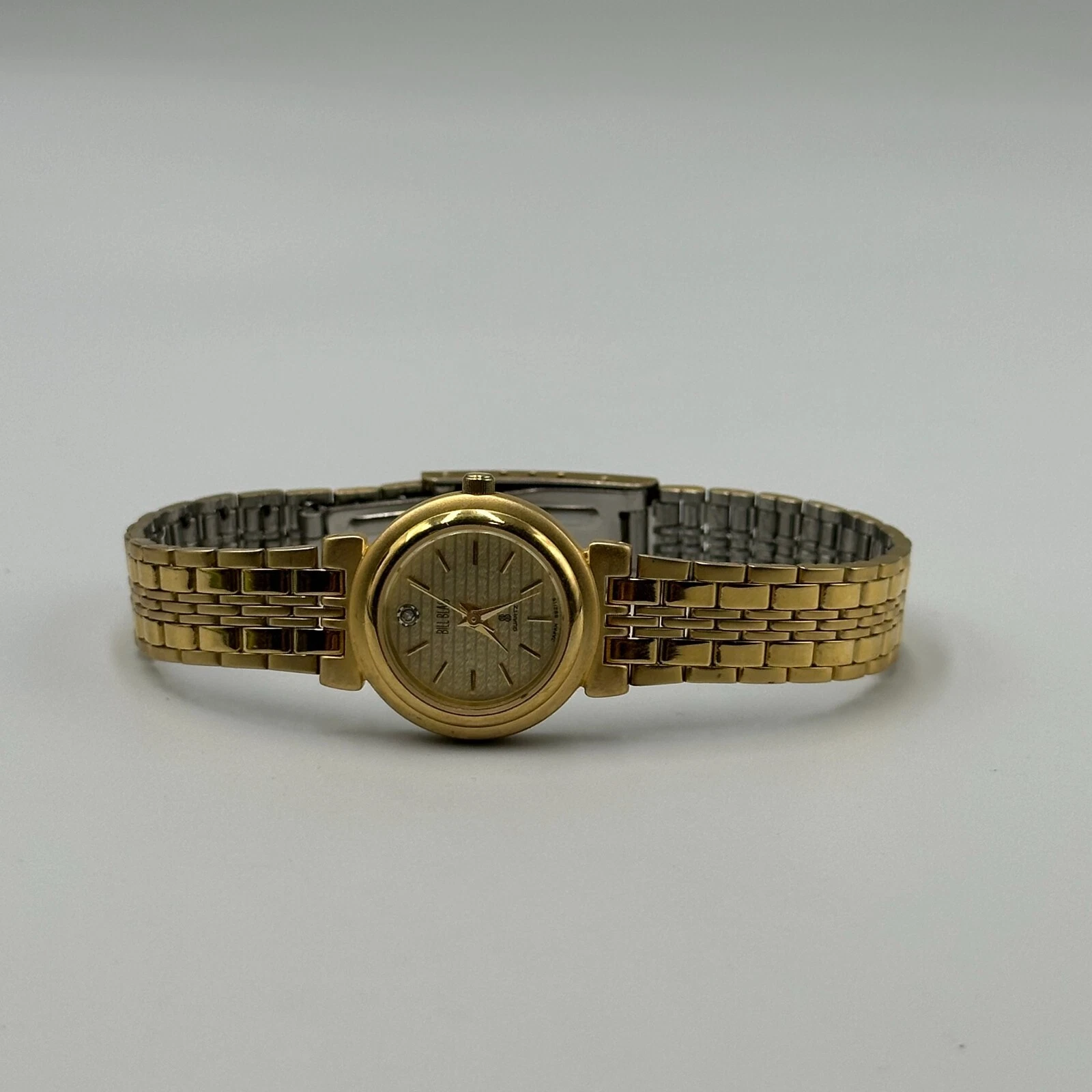Vintage Bill Blass Watch Women Gold Tone Diamond Accent New Battery 7.5 Inch