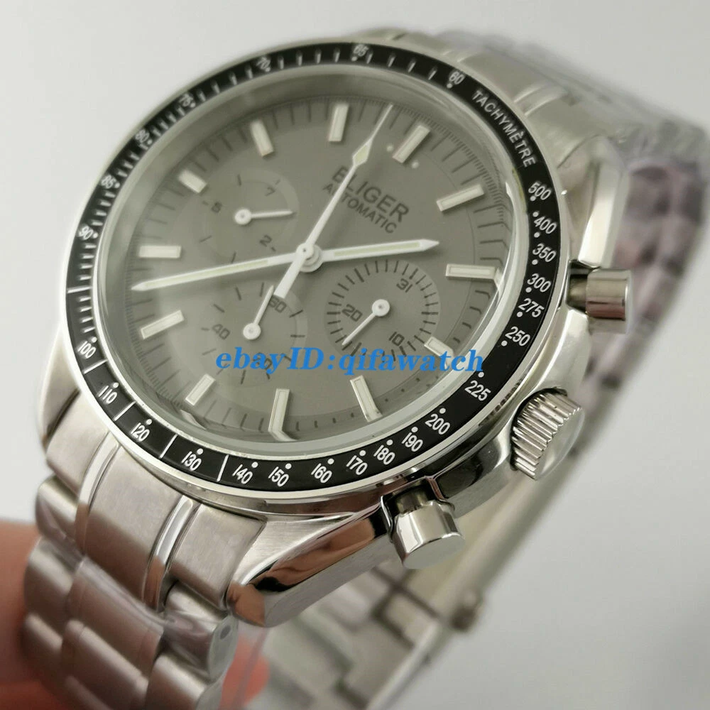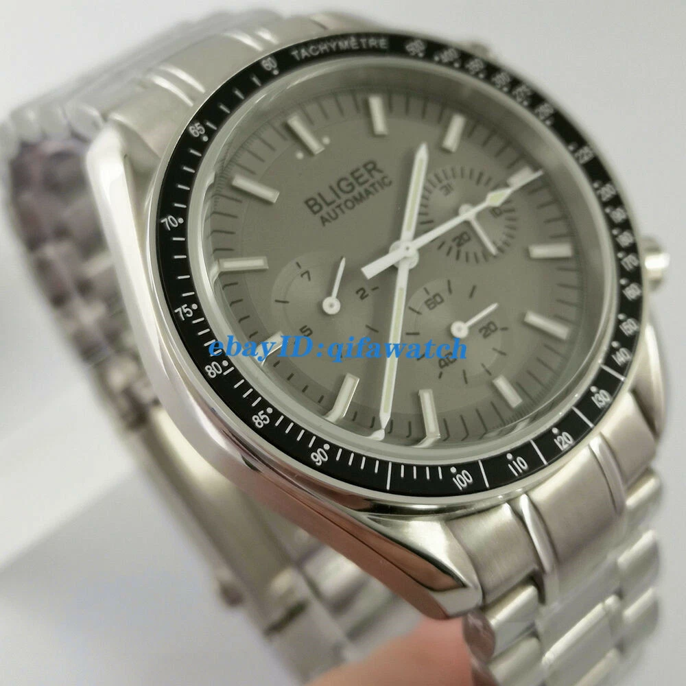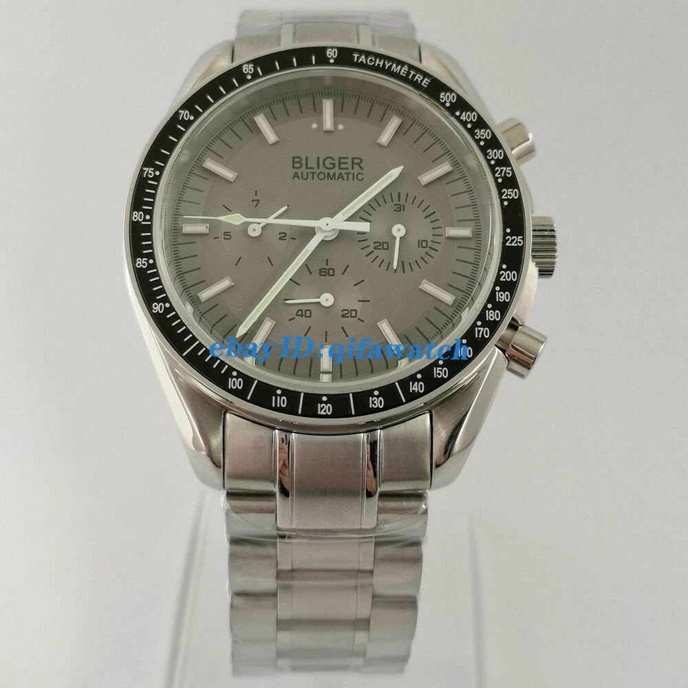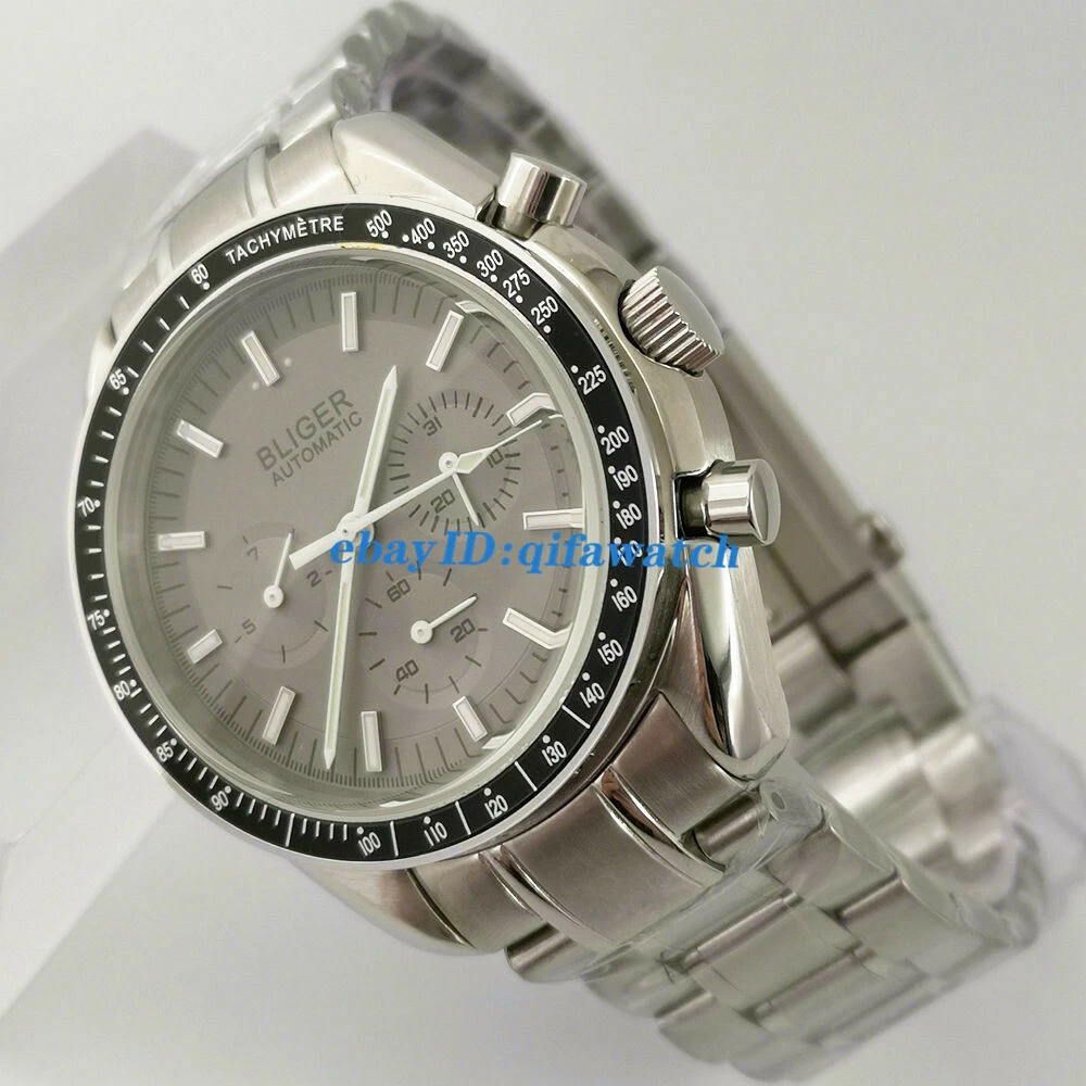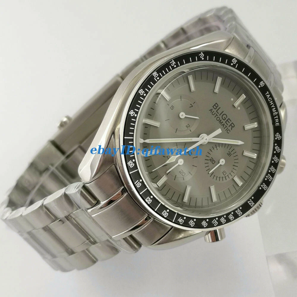 BLIGER Gray 40mm Automatic Men Watch Date Day Indicator steel Band bracelet