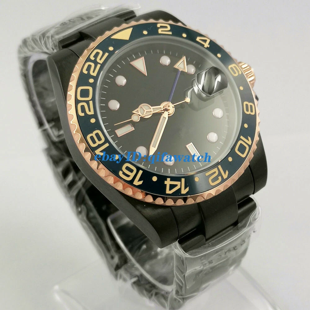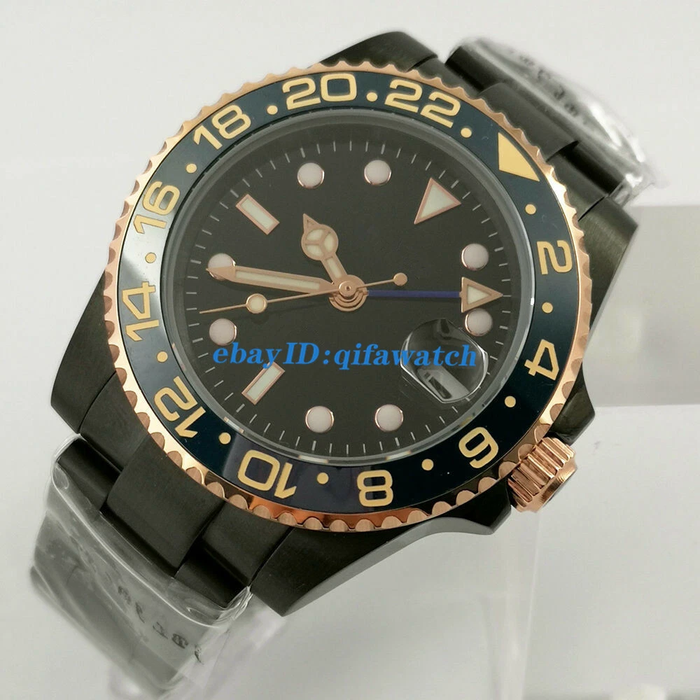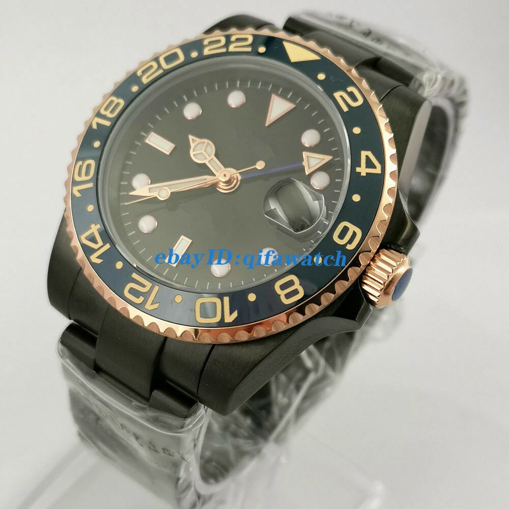 40mm sterile black PVD GMT automatic sapphire watch date gift mens wristwatch