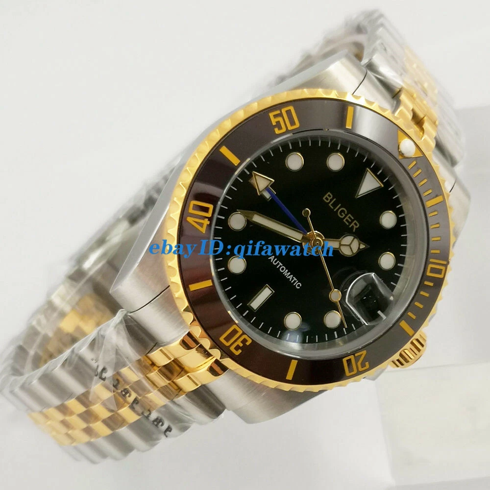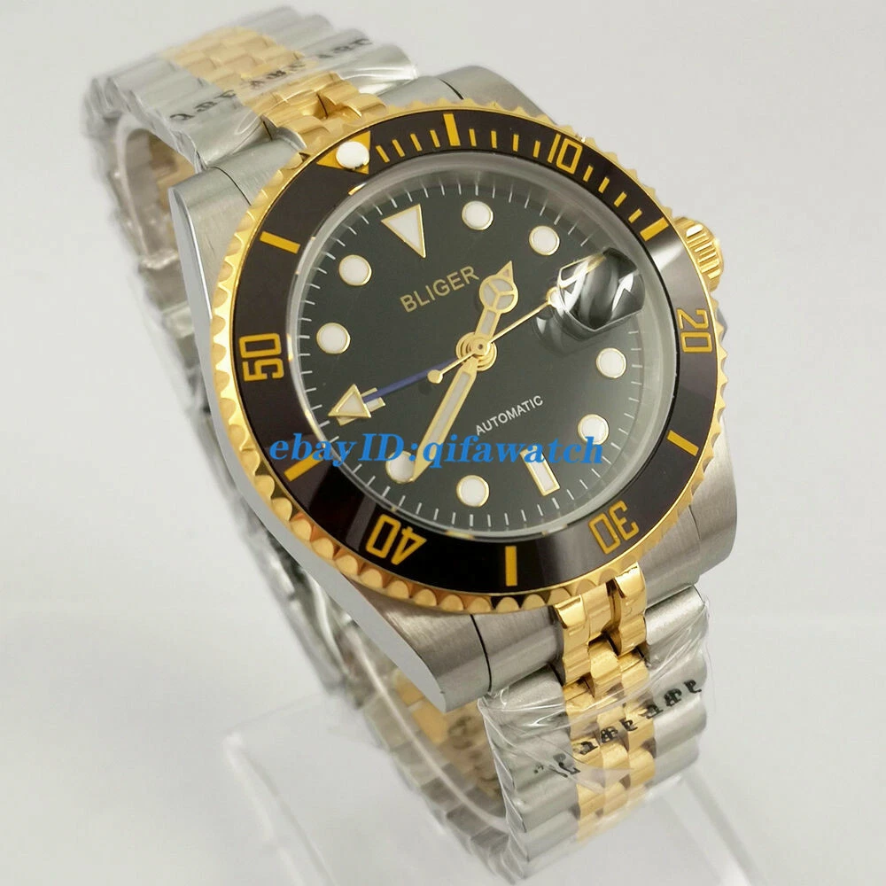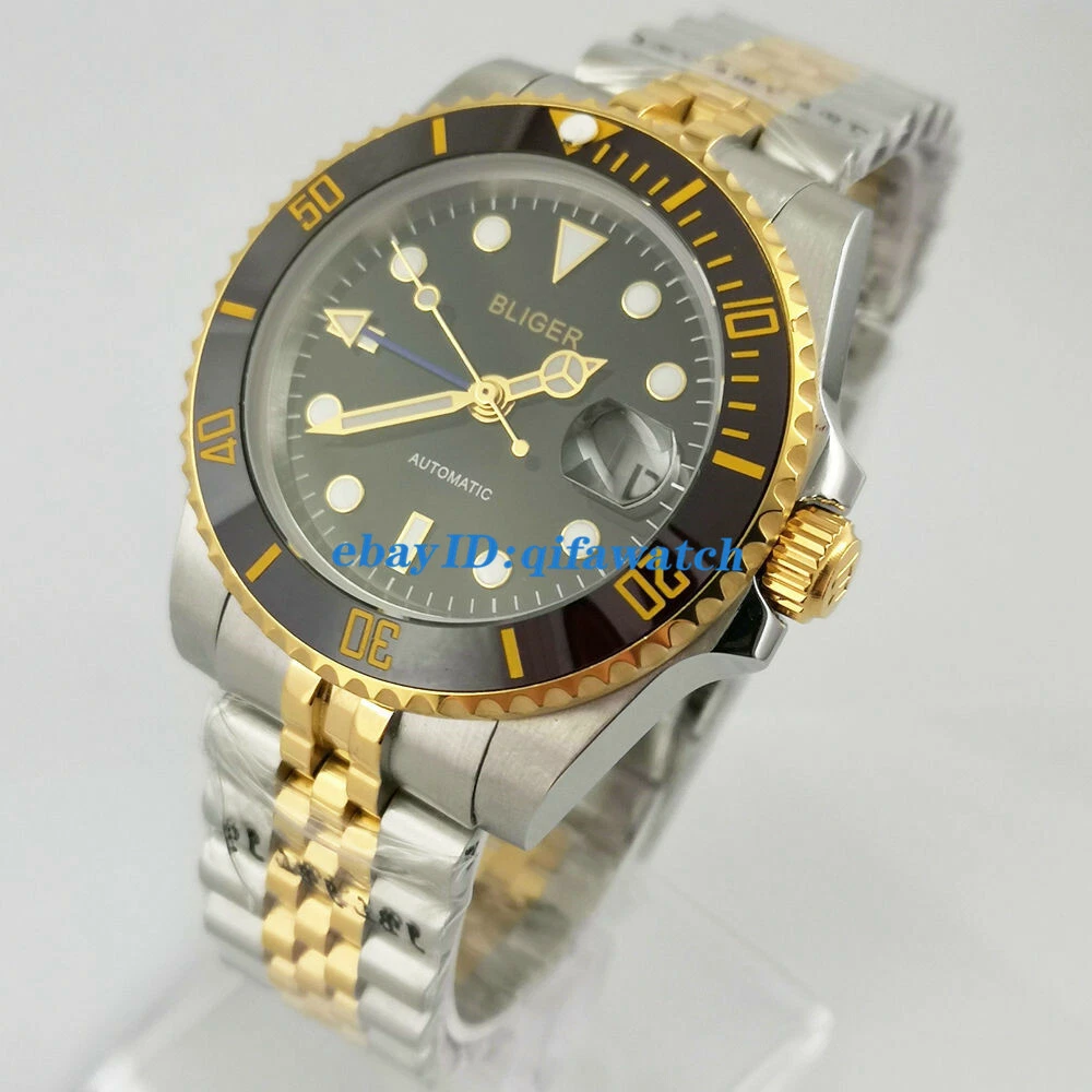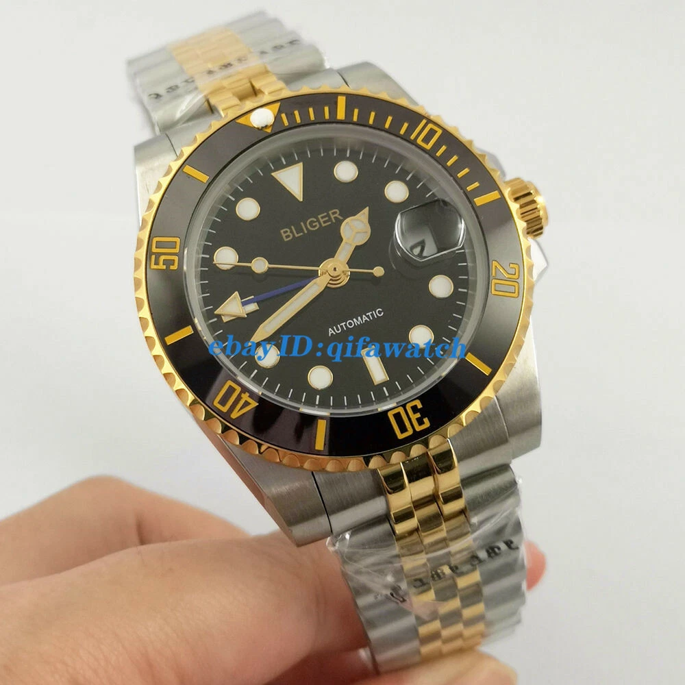 40mm Bliger black dial GMT automatic mens watch sapphire crystal date gift watch