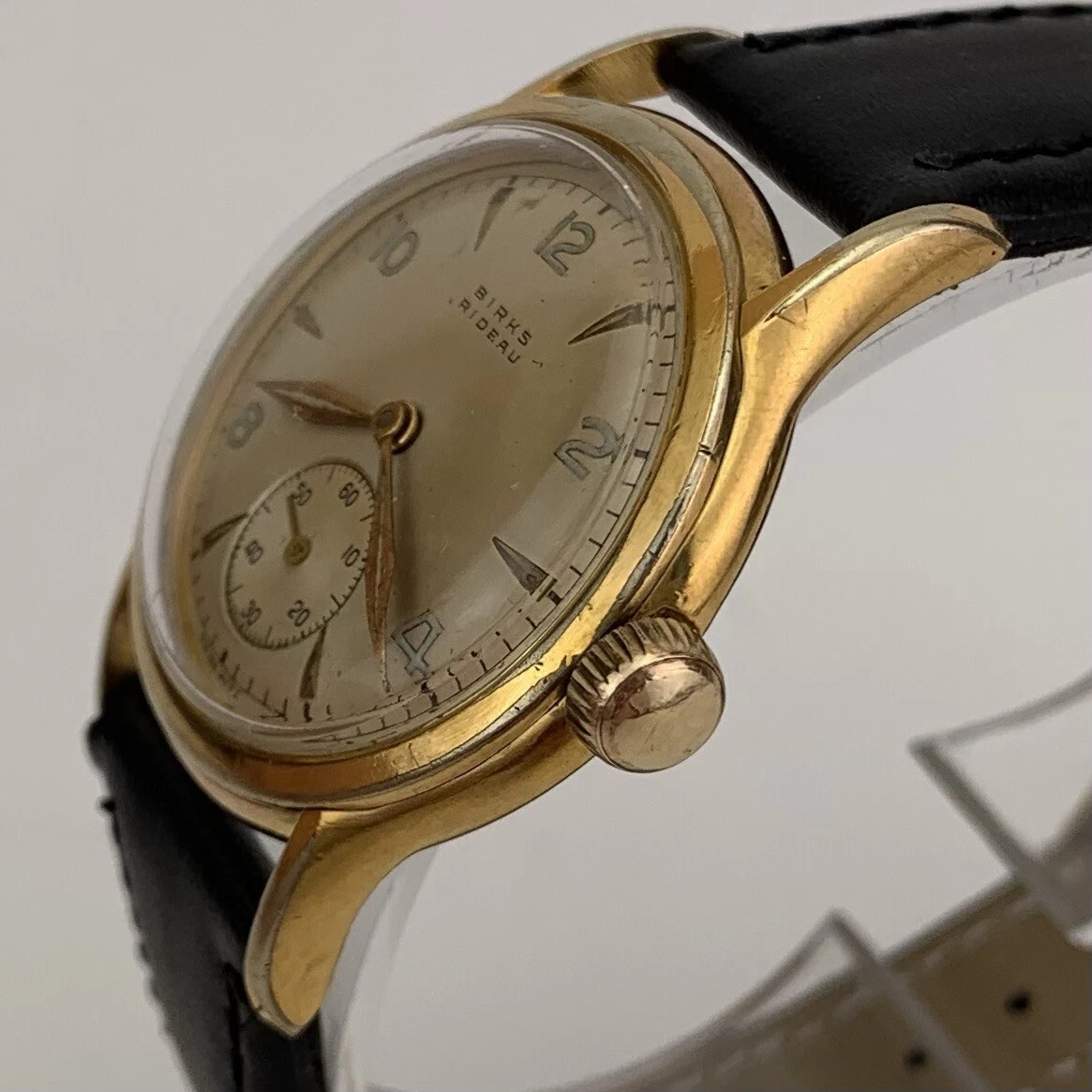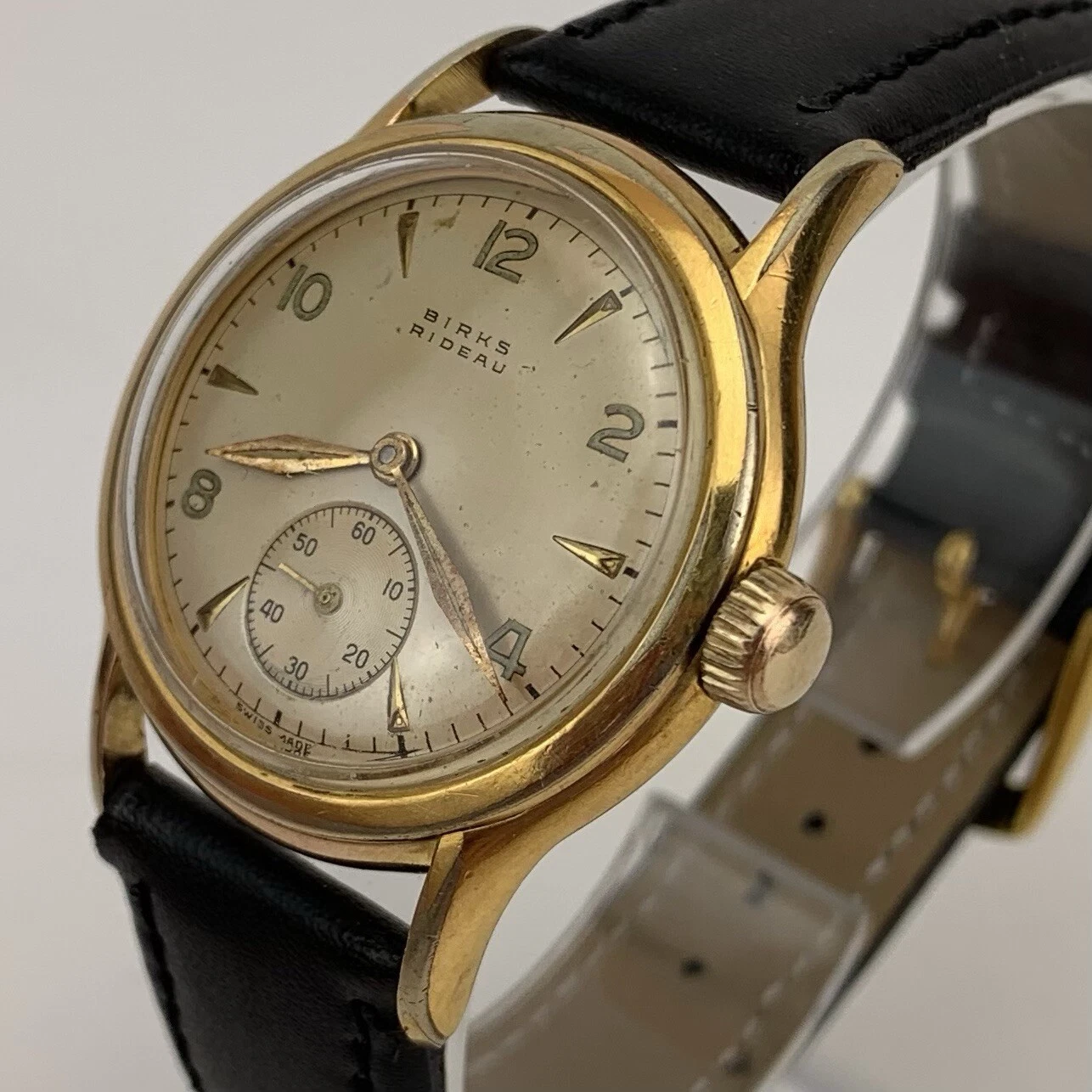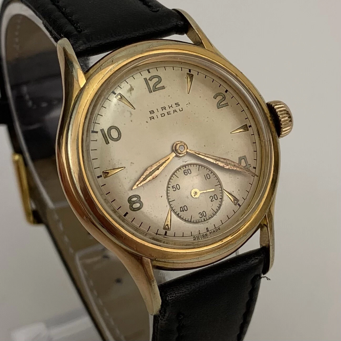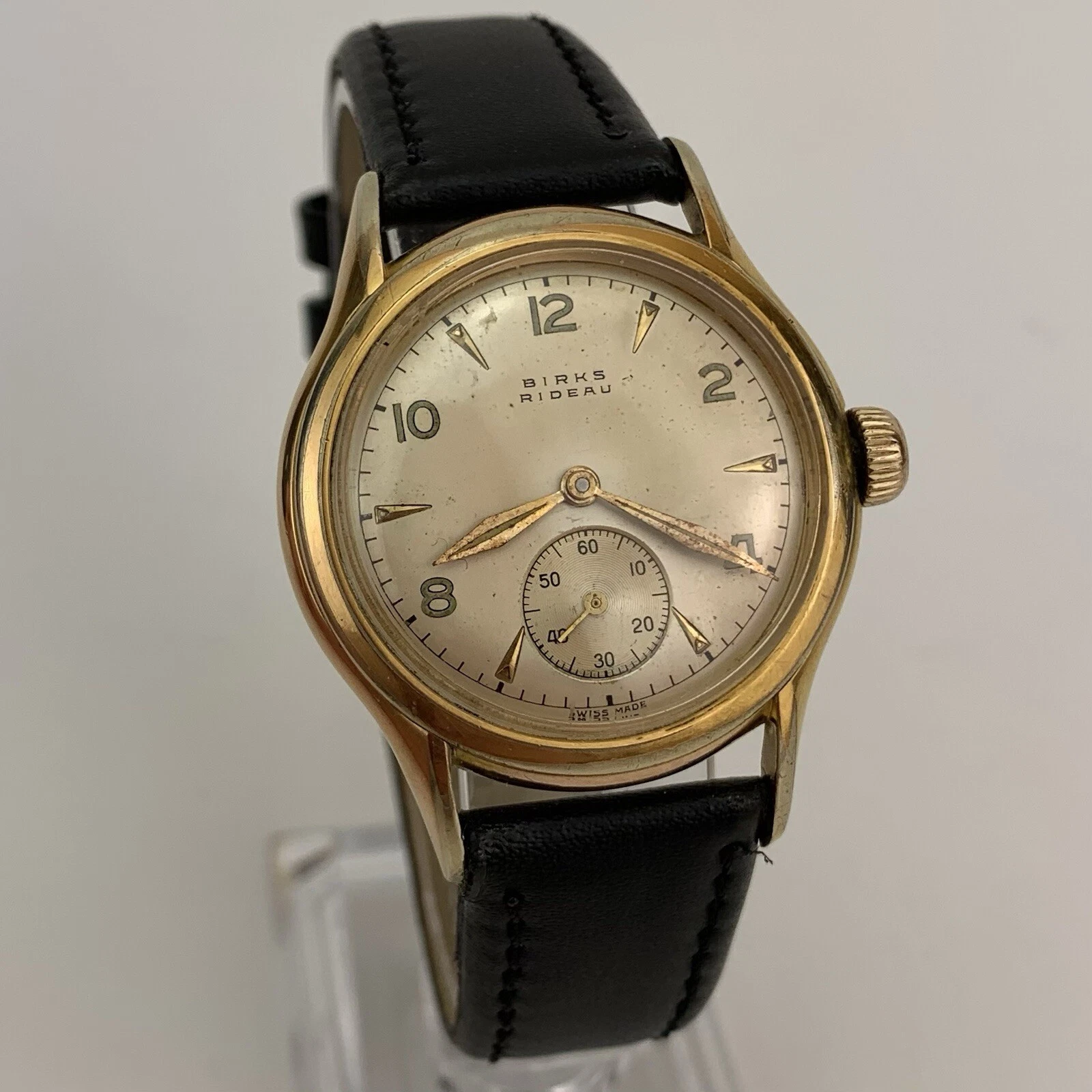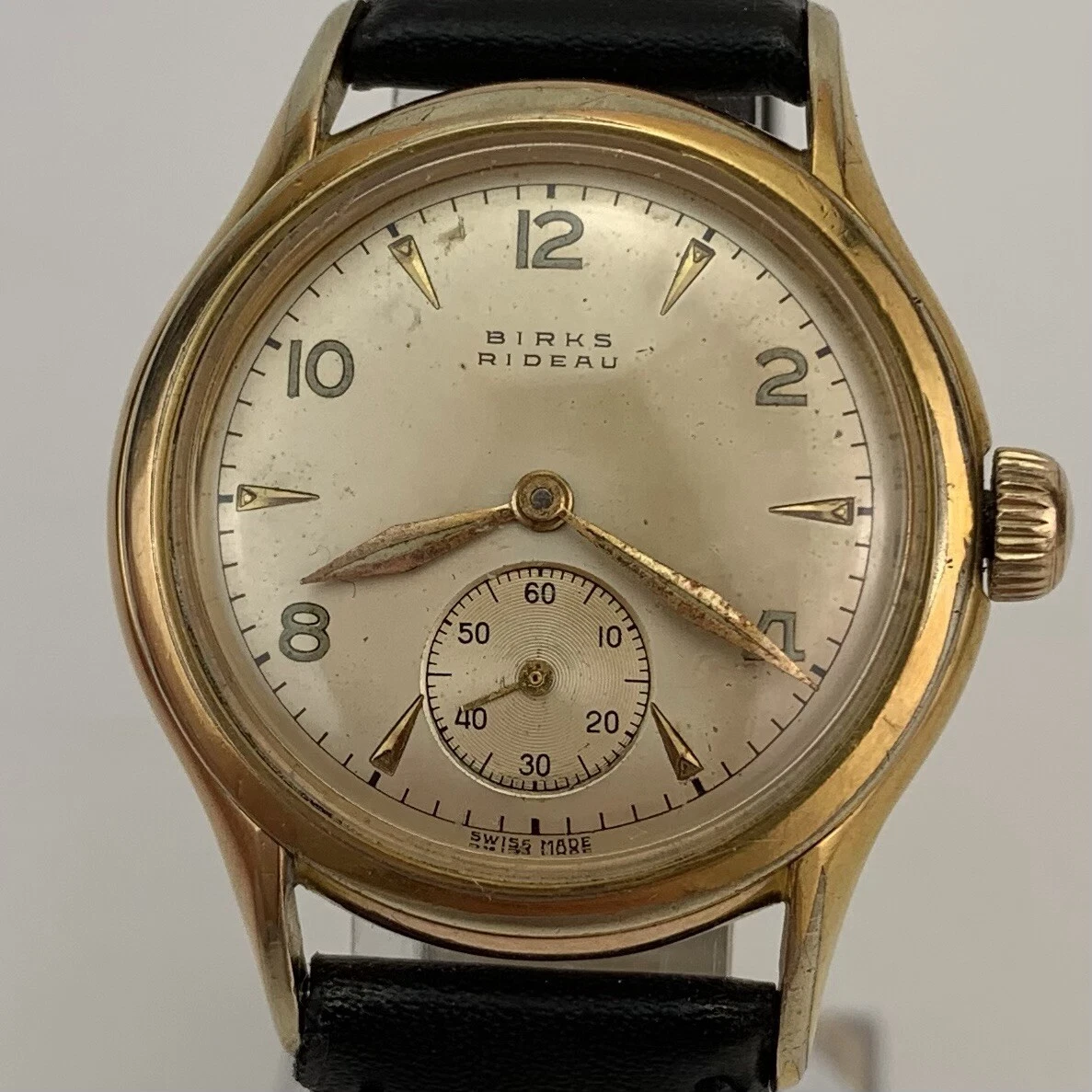 VTG Birks Rideau Mens Watch Early 1950’s Swiss Gold Filled Sub Second New Strap