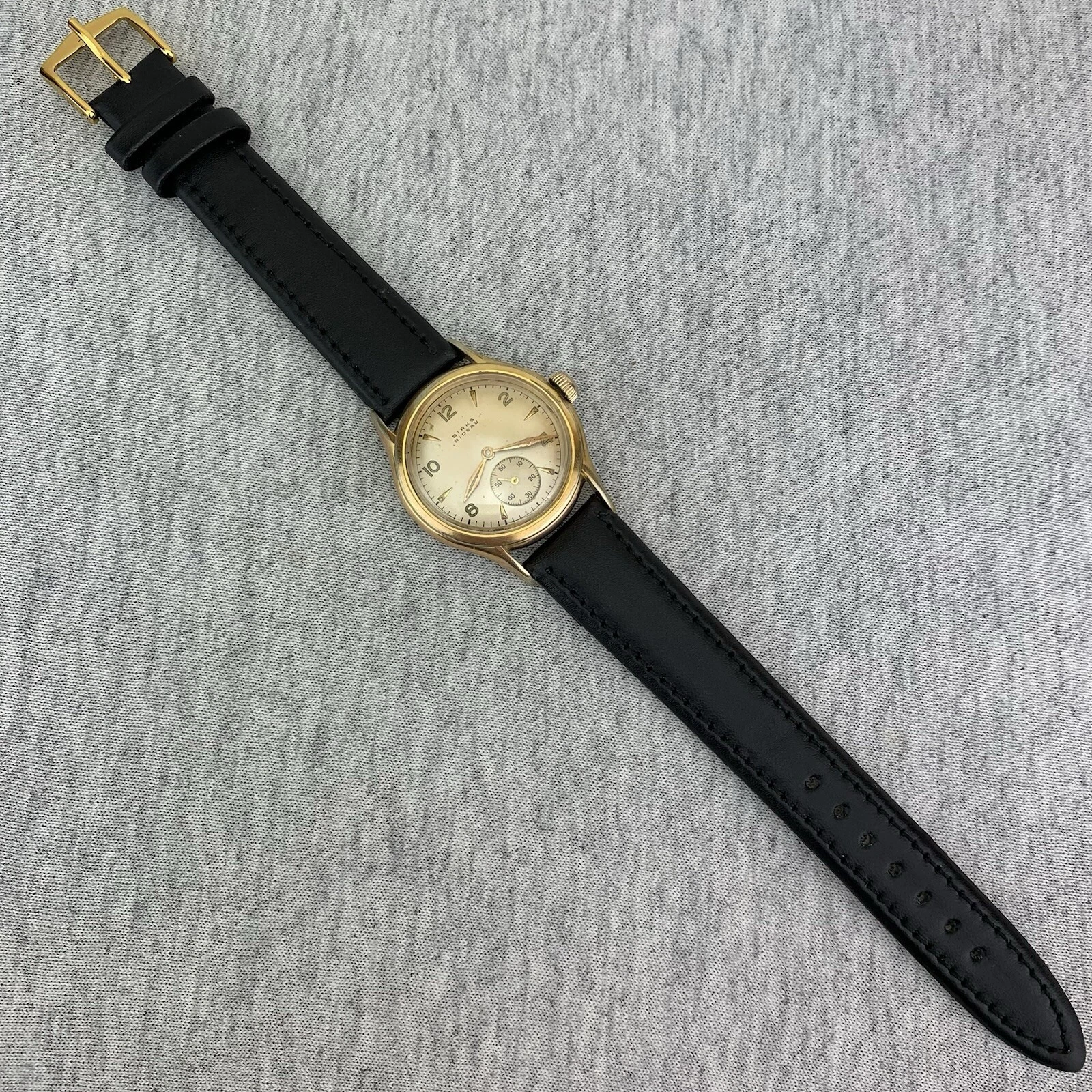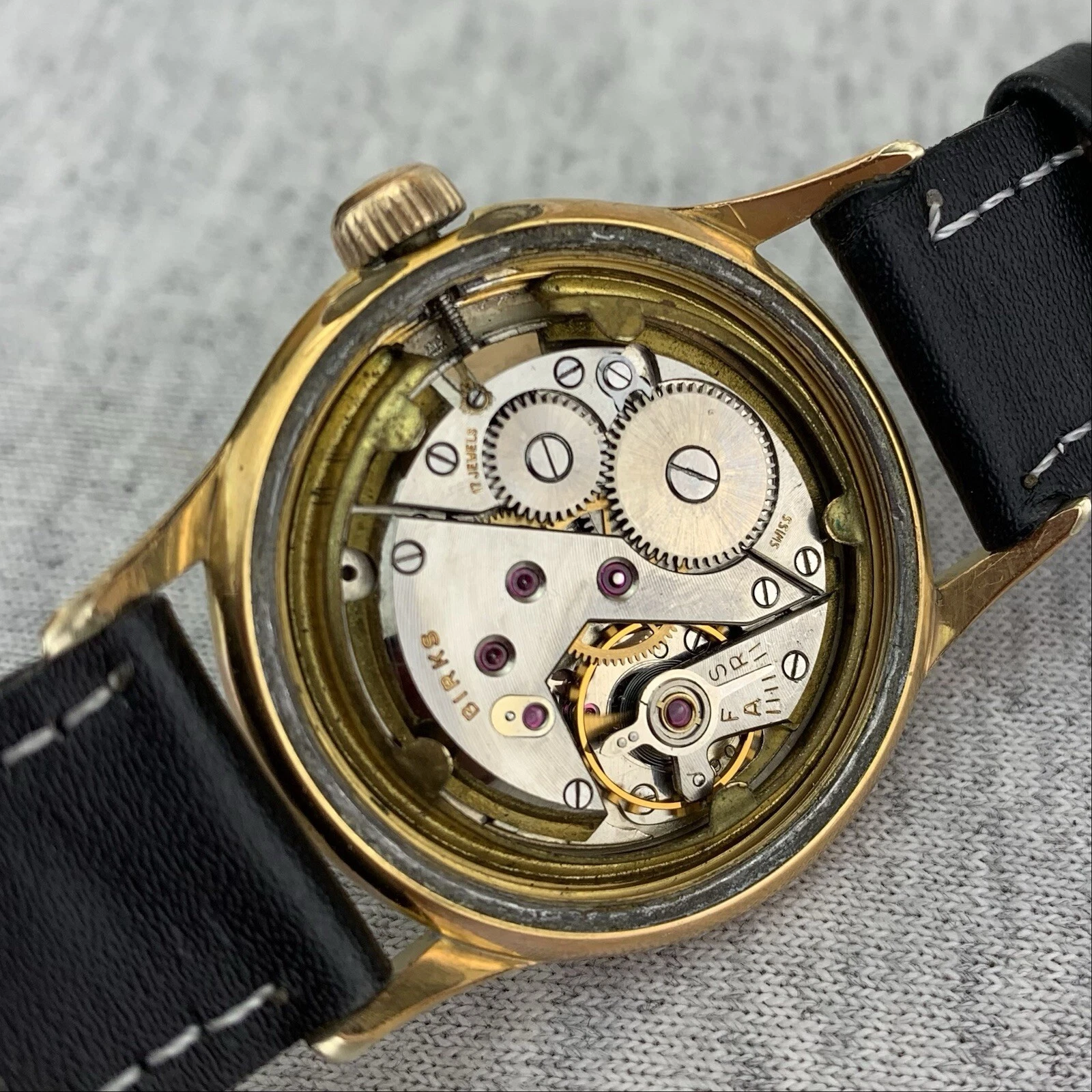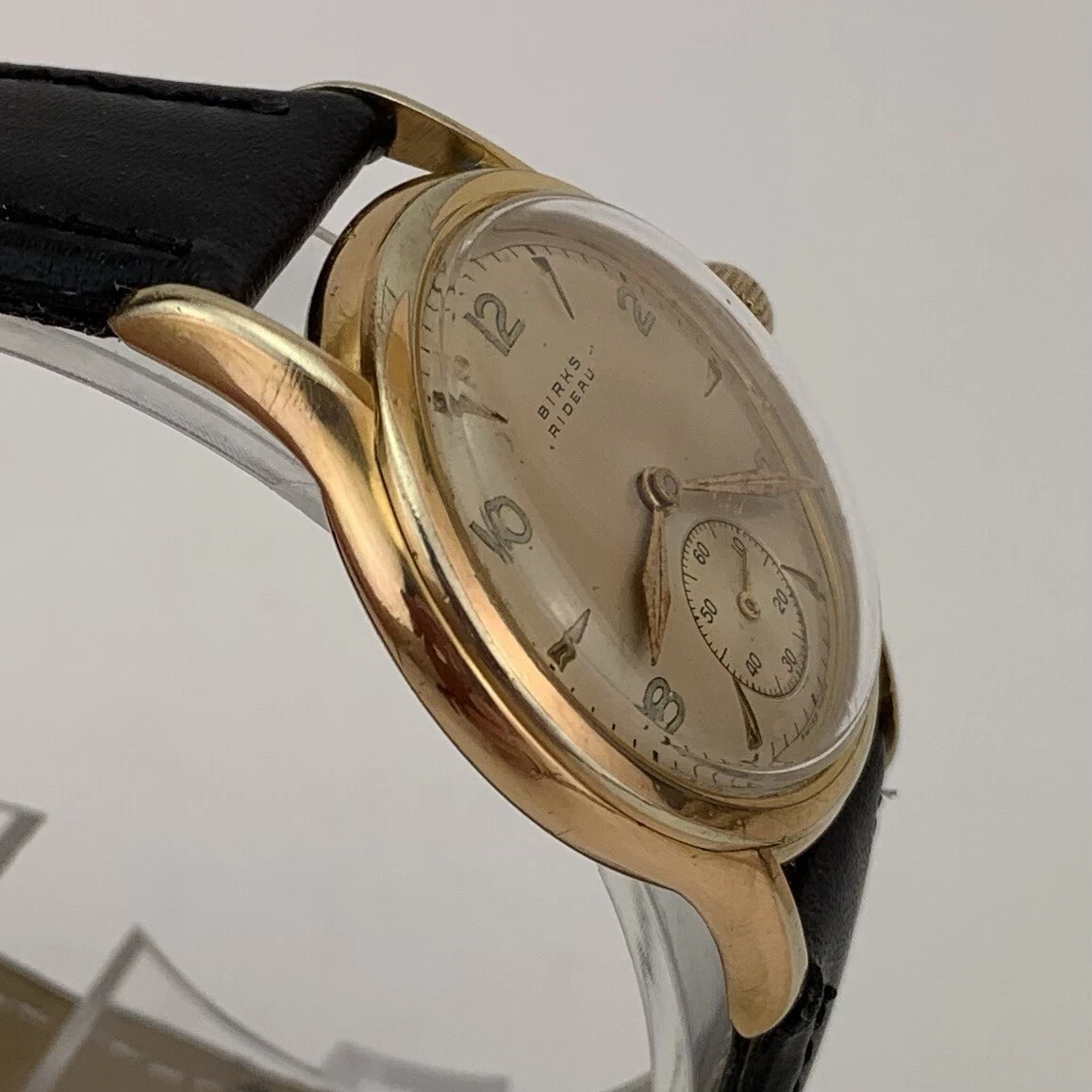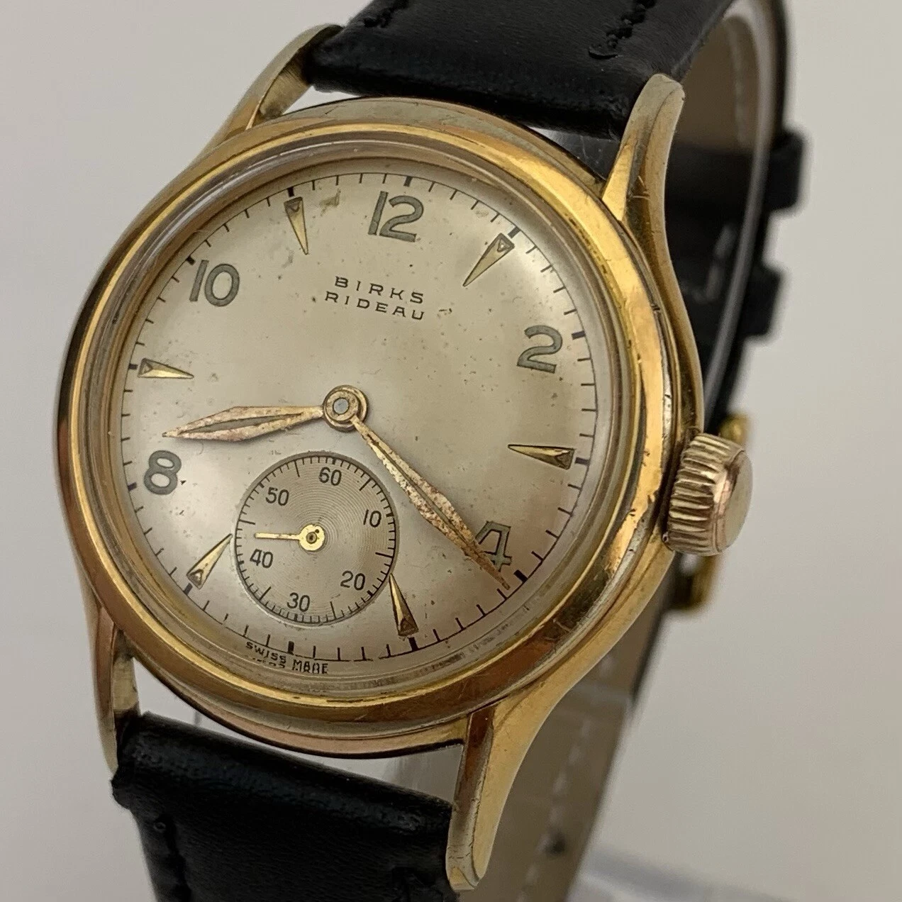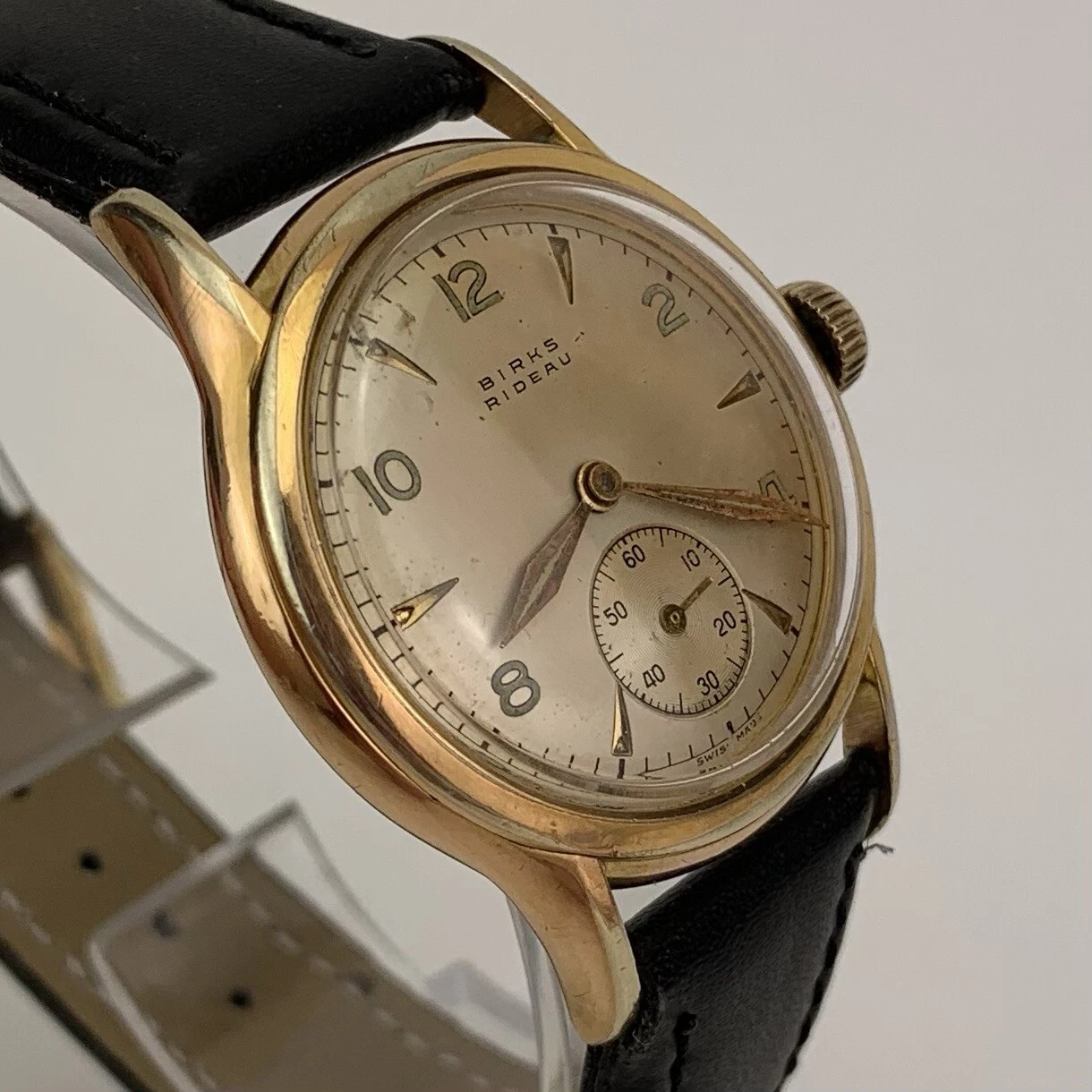 VTG Birks Rideau Mens Watch Early 1950’s Swiss Gold Filled Sub Second New Strap