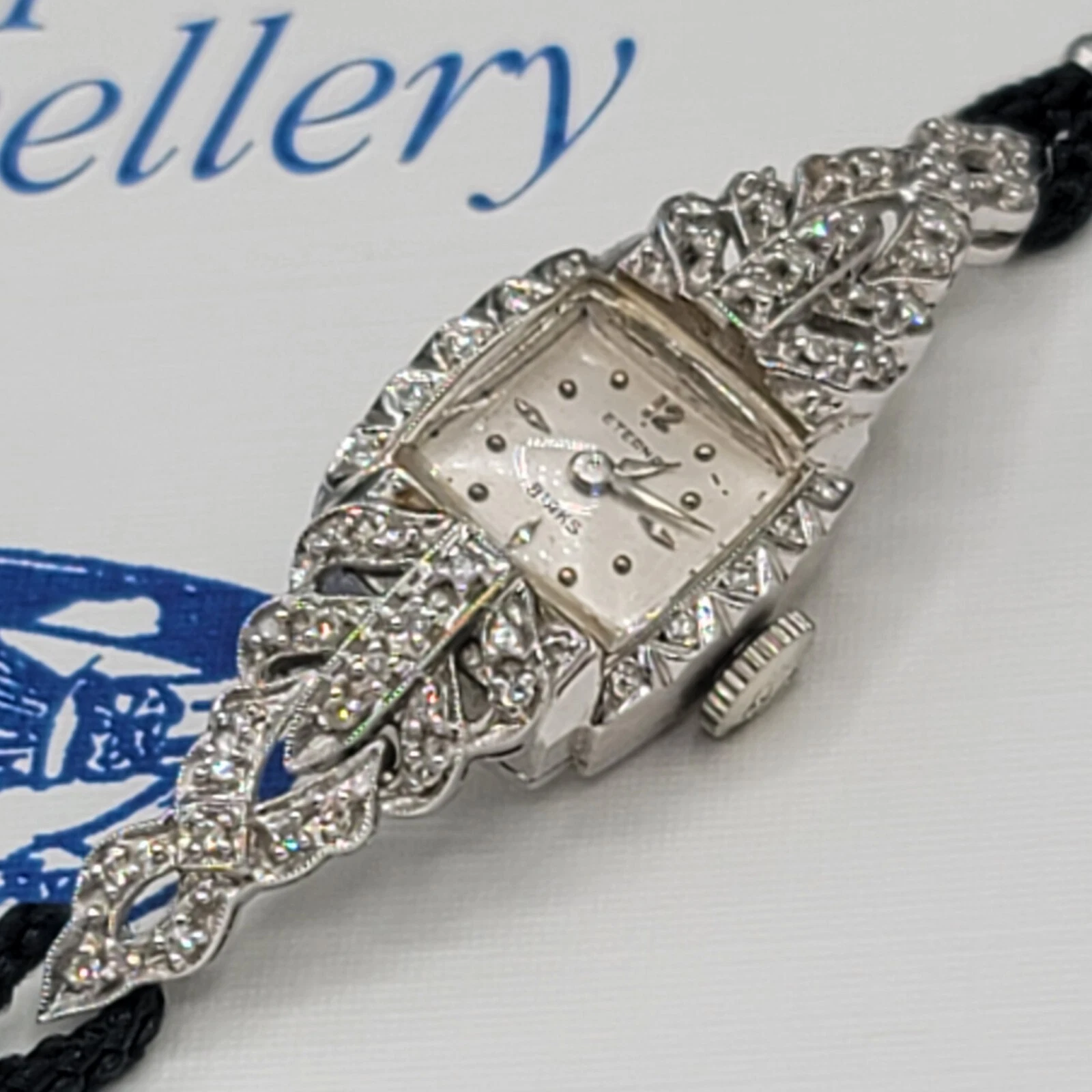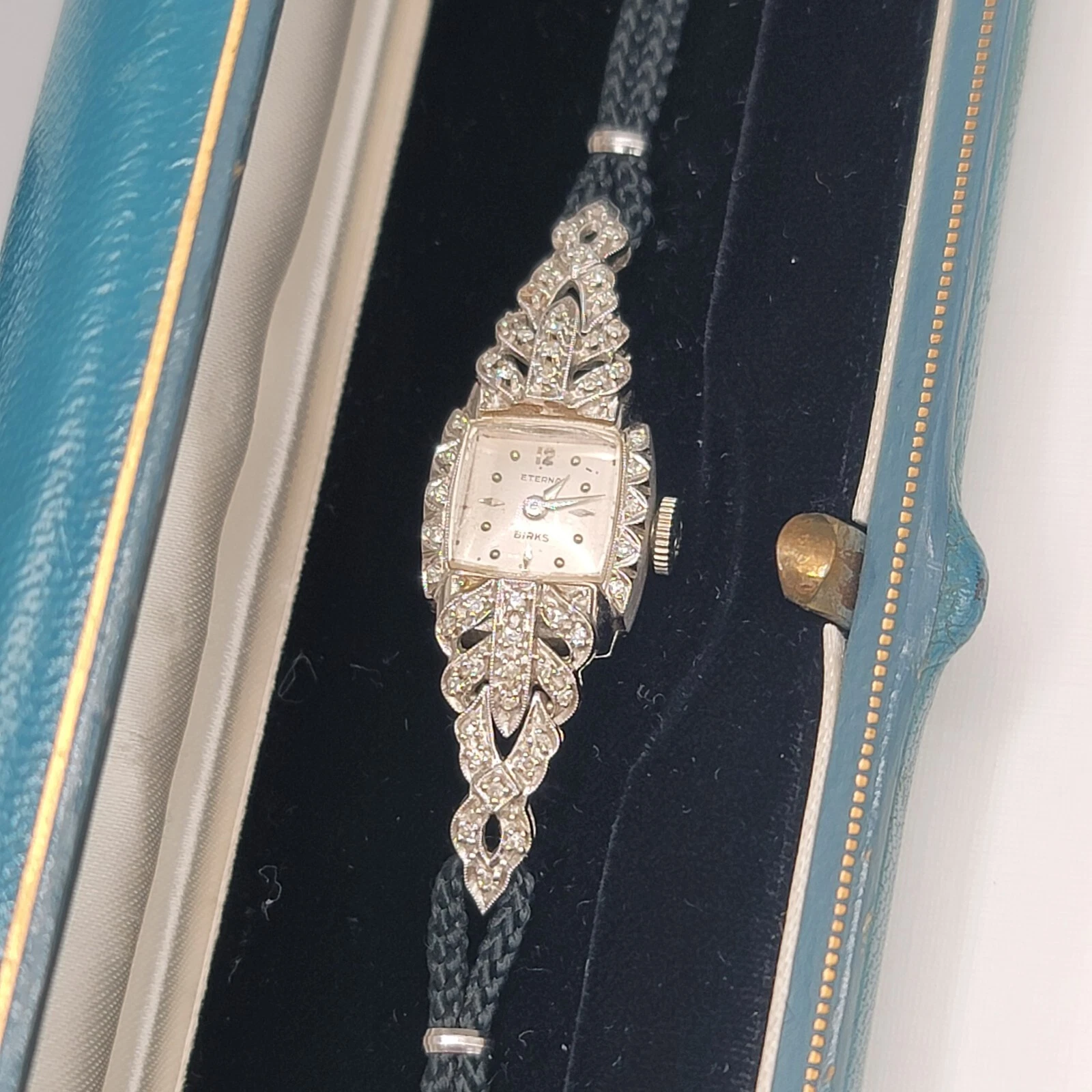 Estate ETERNA BIRKS Watch 14k White Gold GEMEX Made in USA Fifty Diamonds