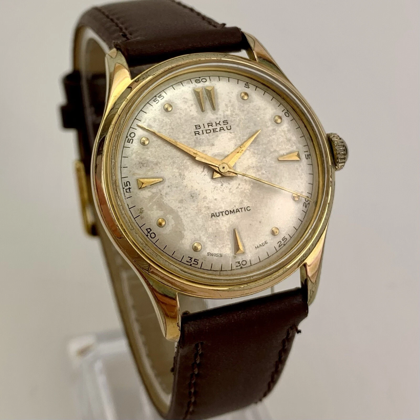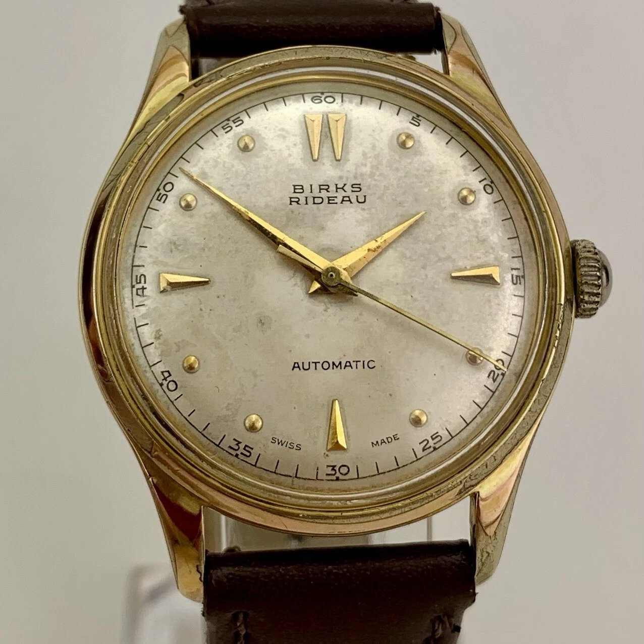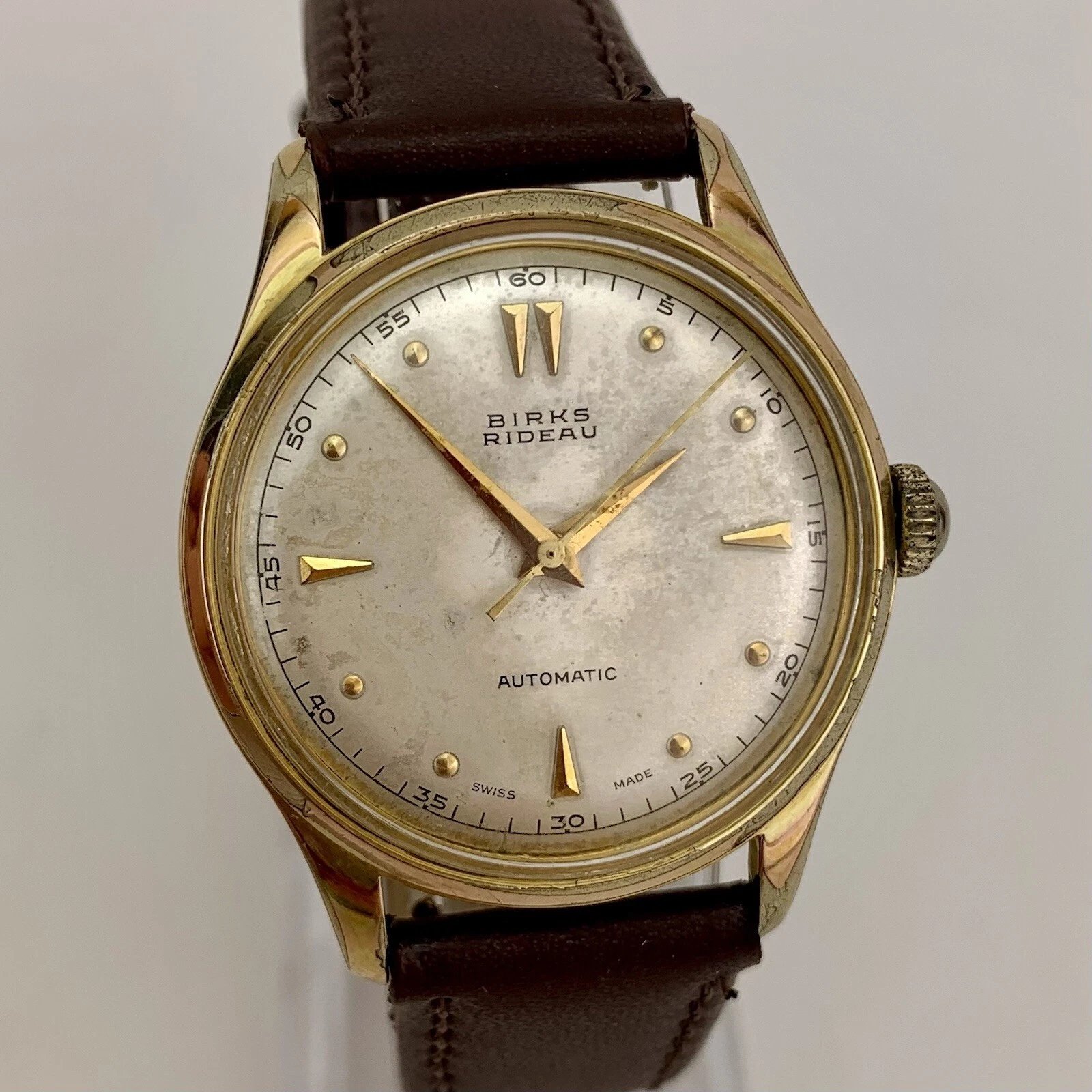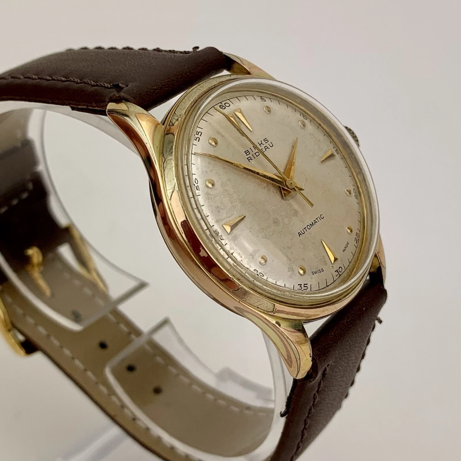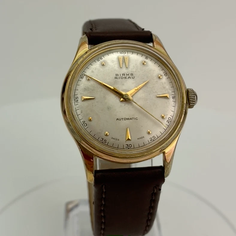 VTG Birks Rideau Mens Watch Early 1950’s Swiss Gold Filled Patina Dial New Strap