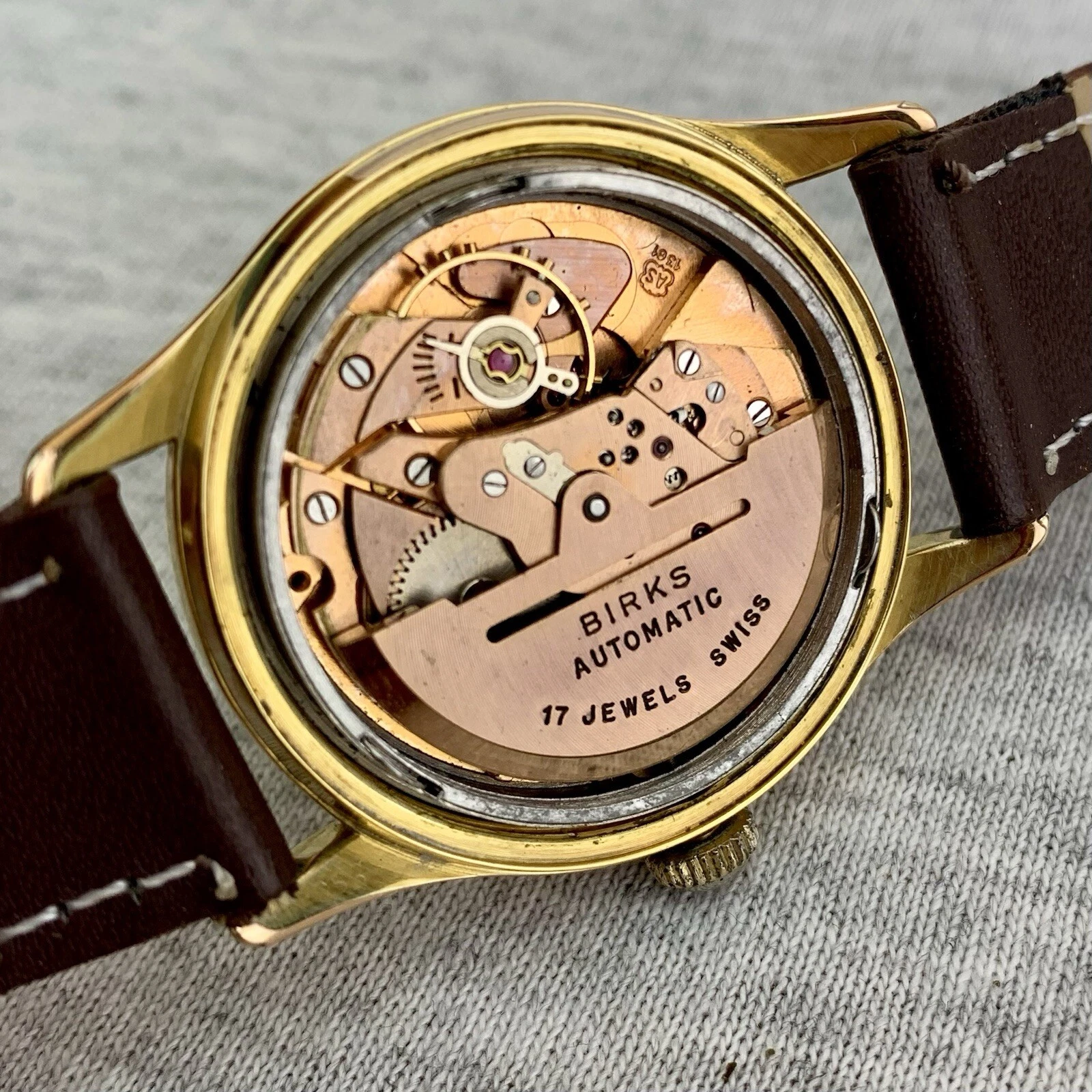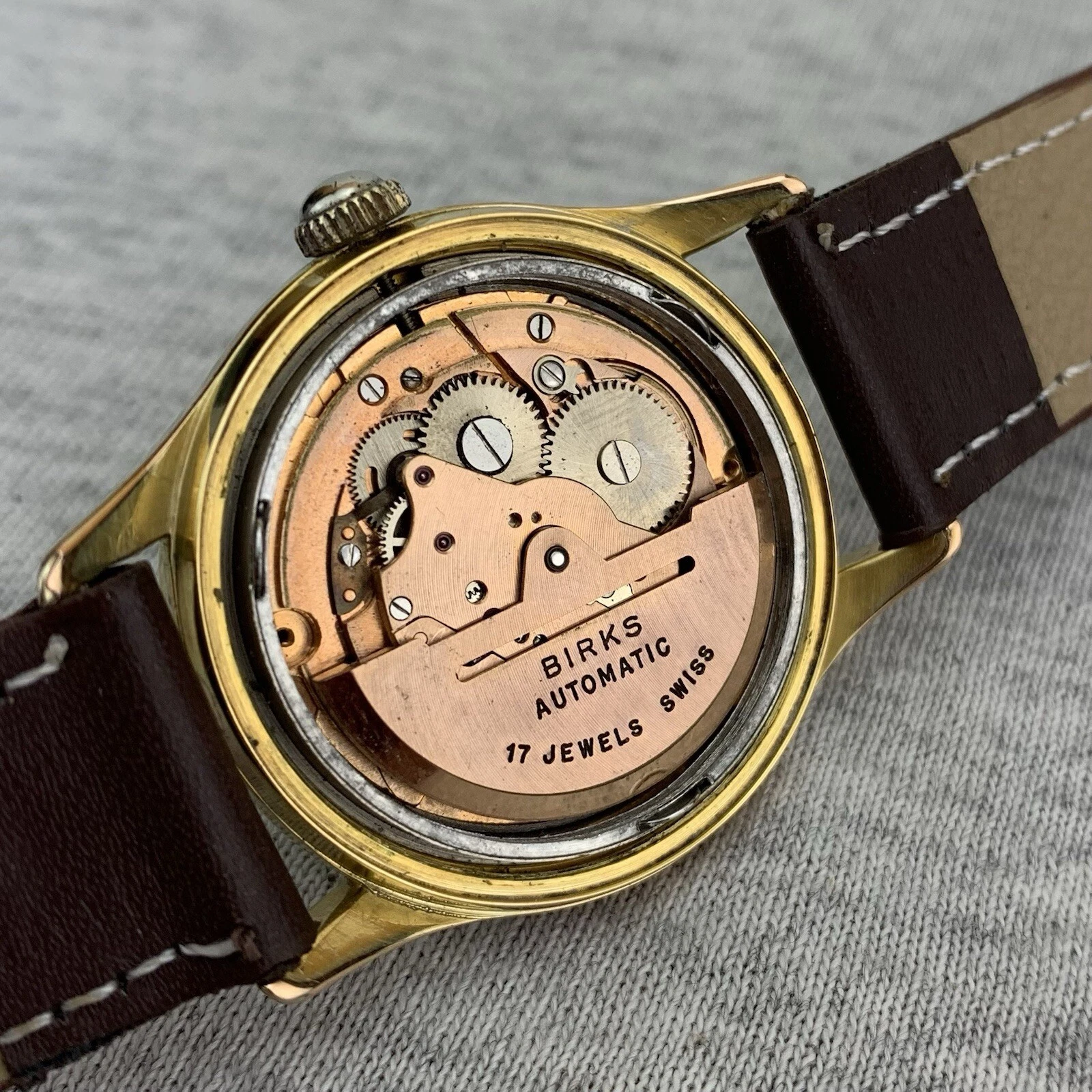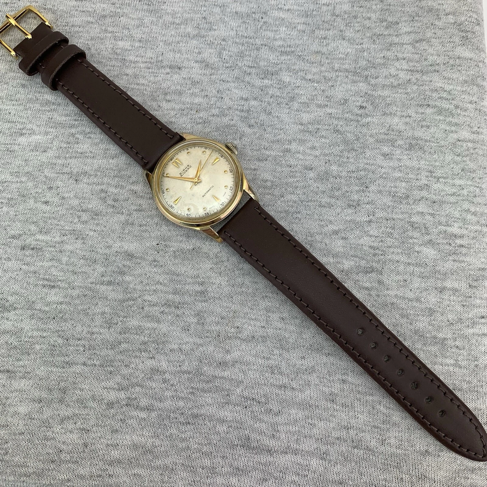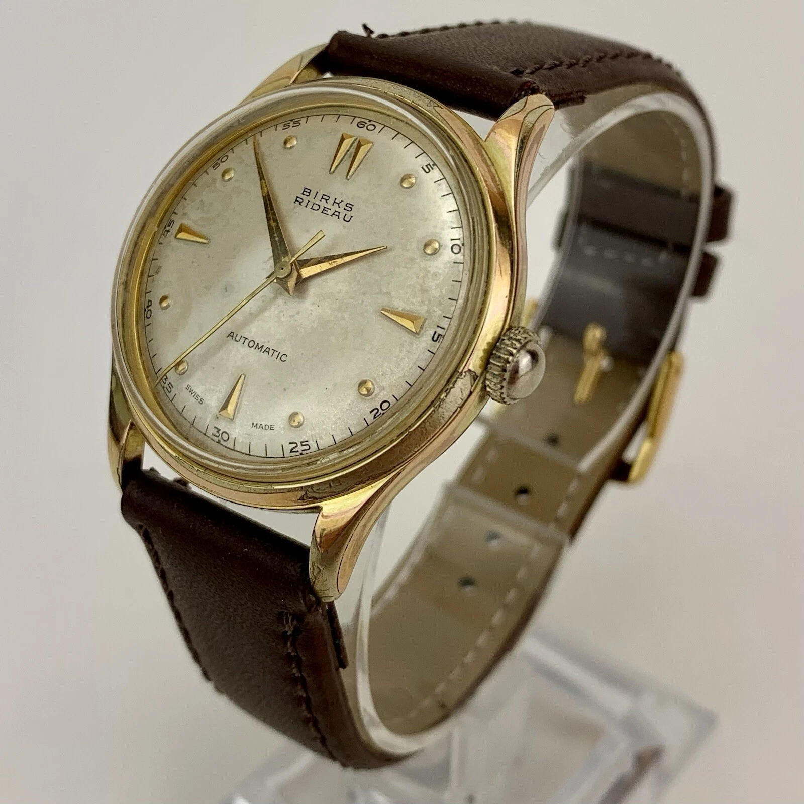 VTG Birks Rideau Mens Watch Early 1950’s Swiss Gold Filled Patina Dial New Strap