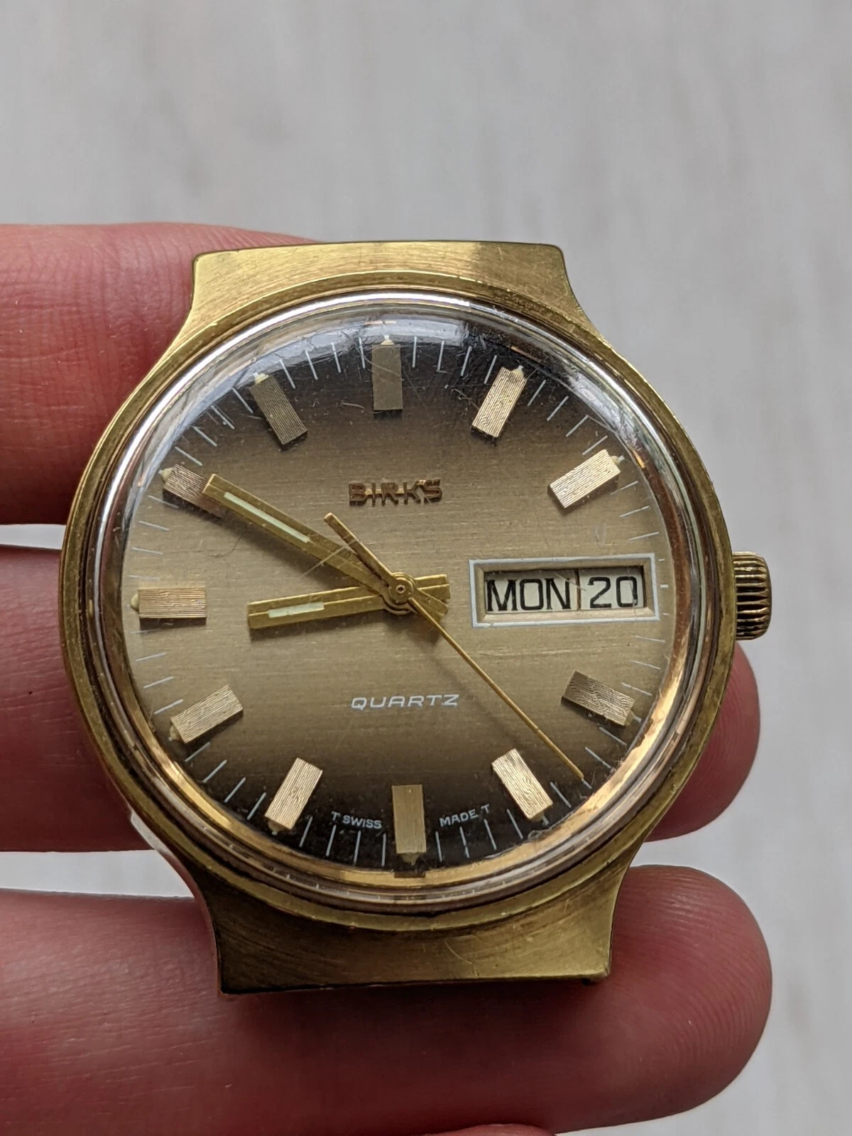 Vintage mens watch Birks Quartz Swiss made PARTS NOT Working