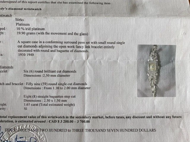 Birks Lady Wristwatch in Platinium with 1.65 Carats diamonds, 20grs..$3200