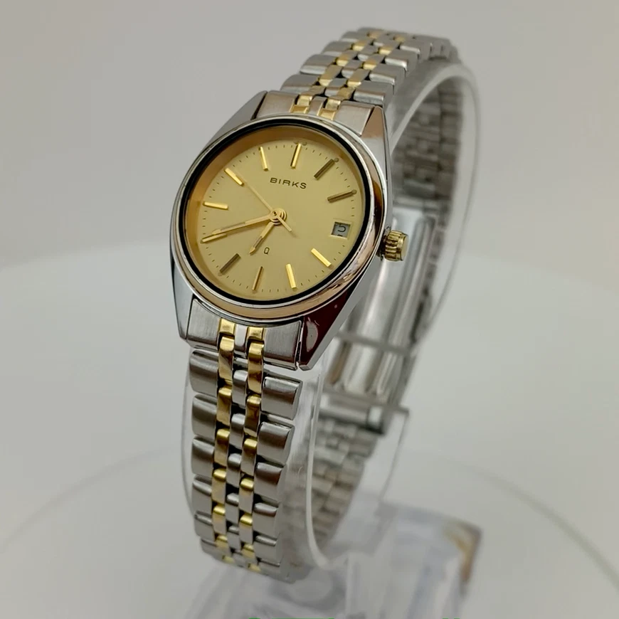 Vintage Birks Ladies Watch Quartz Dual Tone Silver Gold Bracelet W. Germany EUC