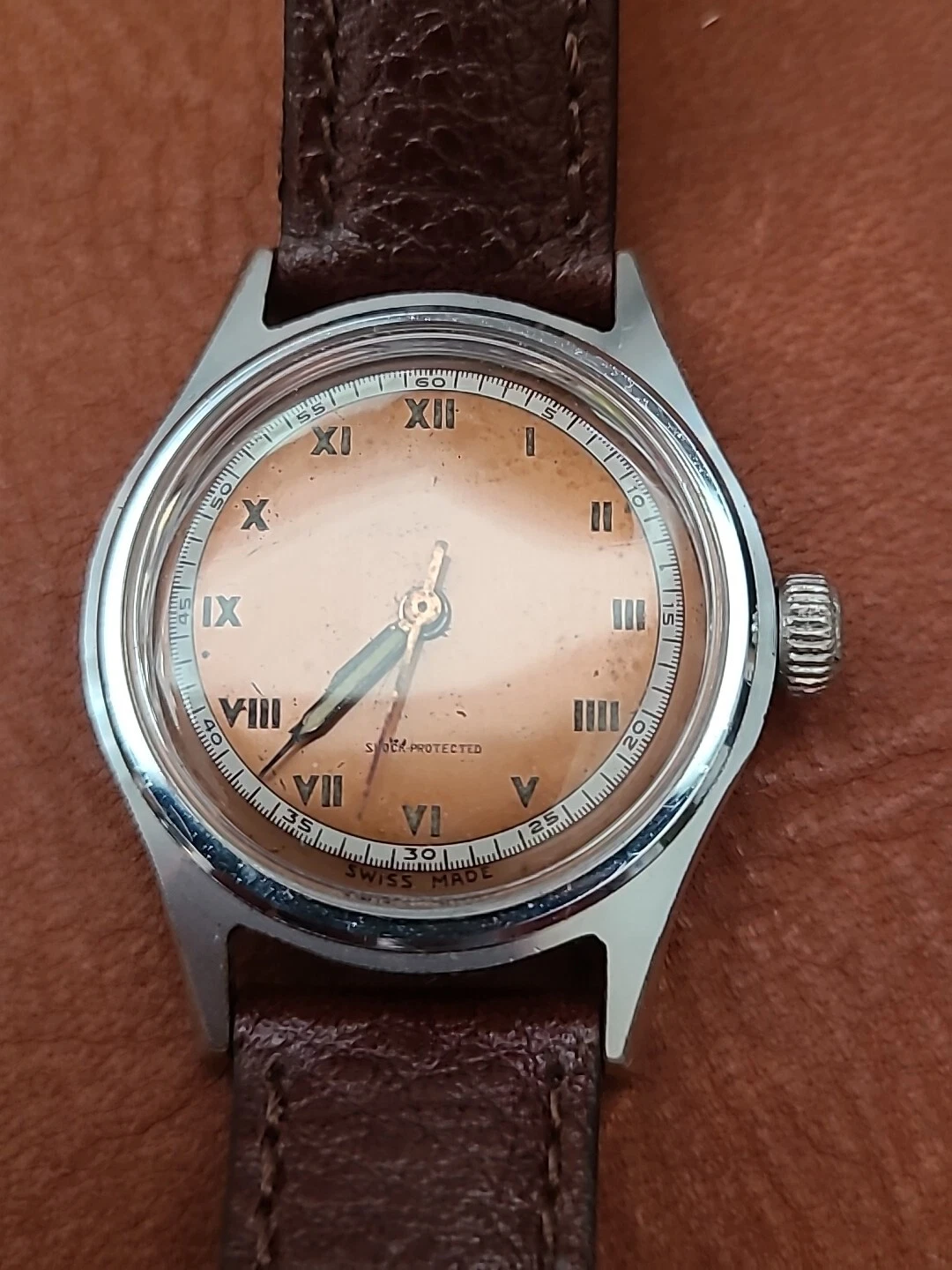 Vintage Veteran WW2 Military Men's Watch,Salmon Dial,rare Collector Watch, Works