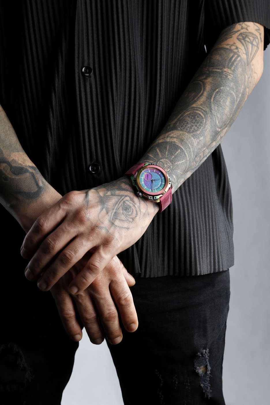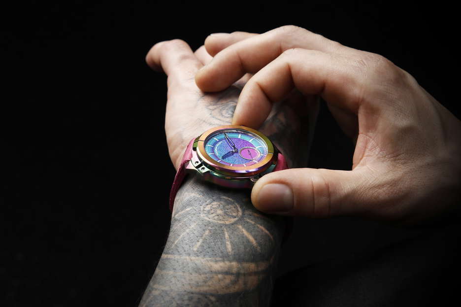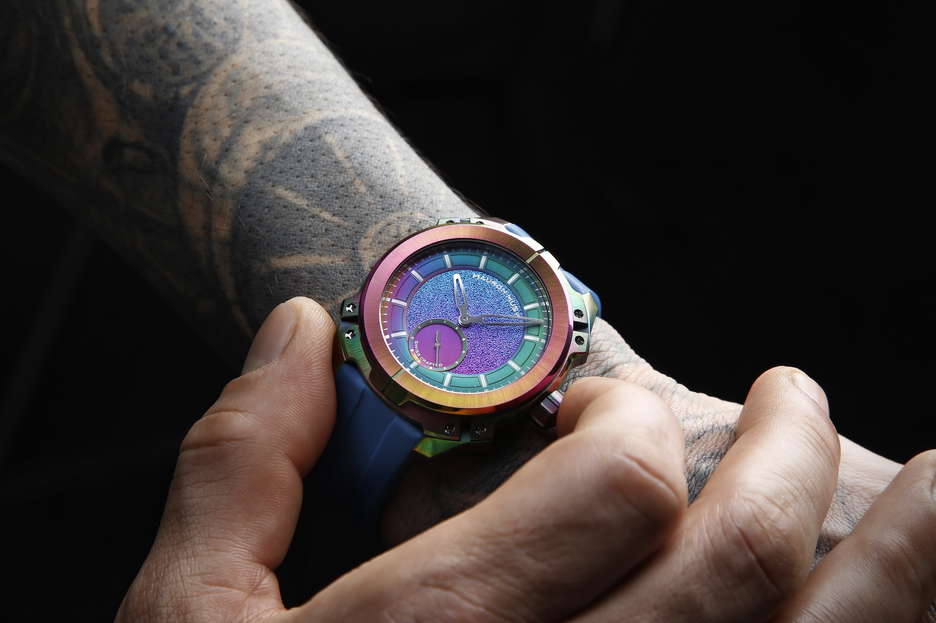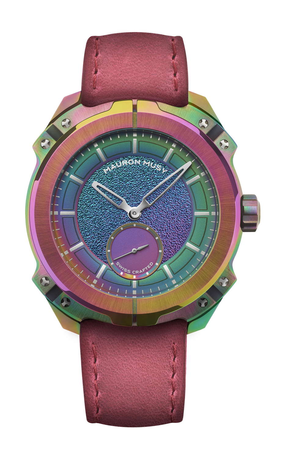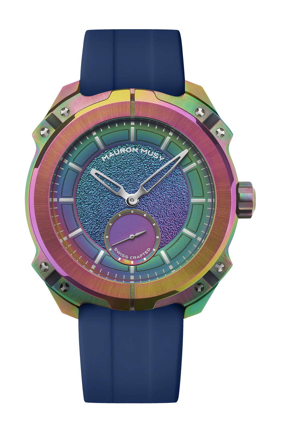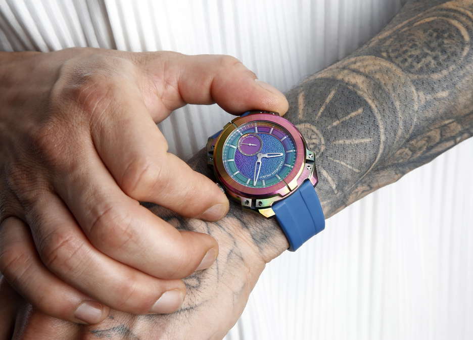 The MU06 Mayura from MAURON MUSY is a bold leap forward in independent Swiss watchmaking—a limited edition of just 13 pieces that pushes the boundaries of both design and engineering. At its core lies a carbon-based coating developed for extreme environments like aerospace and motorsport. Now adapted for haute horlogerie, this advanced treatment protects the case and dial from scratches, oxidation, and wear, while giving each watch an unpredictable iridescent finish. The result is a metal surface that feels alive—no two pieces are alike, each reacting uniquely during the coating process. Inside beats the MM02 calibre, MAURON MUSY’s first in-house micro-rotor movement. Christophe Musy approached the design like an architect, crafting a three-dimensional layout where structure, space, and light interact in perfect balance. The movement operates at 4 Hz with a 40-hour power reserve, featuring a tungsten micro-rotor for compact efficiency. It’s not just about performance—it’s about visual harmony, with bridges and openings that form a mechanical sculpture as much as a precision instrument. Equally impressive is the brand’s patented nO-Ring® technology. This world-first sealing system delivers 100 meters of water resistance without a single rubber gasket, relying instead on mechanical precision across 29 custom components. It eliminates the aging issues of traditional seals, reducing long-term maintenance while aligning perfectly with MAURON MUSY’s no-compromise philosophy. From the dial—coated before the indexes are applied with sub-millimeter accuracy—to the uniquely reactive case, every element of the MU06 Mayura has been thought through. A total redefinition of what a modern mechanical watch can be: robust, refined, and unapologetically different.