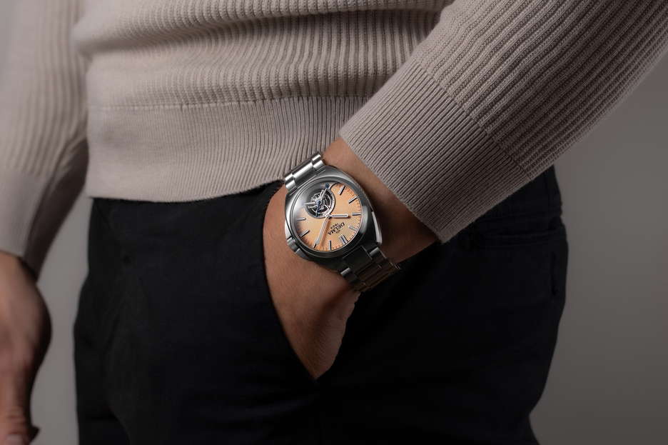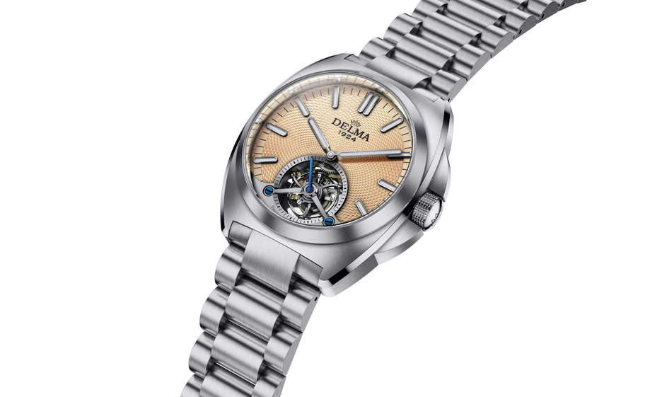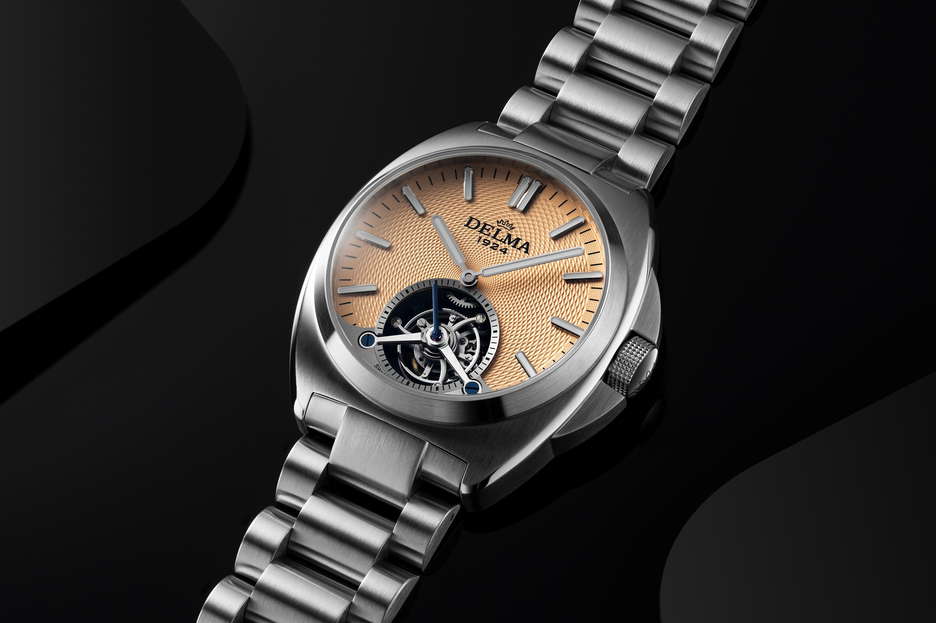DELMA introduces two stunning new iterations of the 1924 Tourbillon, featuring mesmerizing blue and salmon grains de riz guilloché dials. These fresh, intricate patterns elevate the elegance of this Swiss-made timepiece, reinforcing DELMA’s century-long commitment to horological excellence. With a proprietary Swiss movement at its core, this elite tourbillon is a testament to the brand’s dedication to precision. At the heart of the 1924 Tourbillon beats the Caliber DT100.01, a hand-wound movement with an impressive 105-hour power reserve. Unlike conventional timepieces, this model features a variable-inertia balance for superior accuracy, alongside shock protection up to 5000 G and anti-magnetic components capable of withstanding 2000 Gauss. The captivating 360° tourbillon rotation every 60 seconds highlights both mechanical know-how and design brilliance. Designed for connoisseurs of haute horology, the movement is decorated with traditional perlage, Côtes de Genève, and golden engravings, visible through the exhibition case back. A ruthenium-treated dark gray finish enhances the modern appeal, while blue screws add a refined touch. Encased in a 41mm 316L stainless steel body with a mix of brushed and polished surfaces, this timepiece offers both robustness and sophistication. The DELMA 1924 Tourbillon comes with a stainless-steel bracelet featuring a deployant clasp, alongside a hand-crafted Italian leather strap with a folding clasp for versatility. With only 25 pieces available per dial color, this limited-edition masterpiece is a true collector’s item.