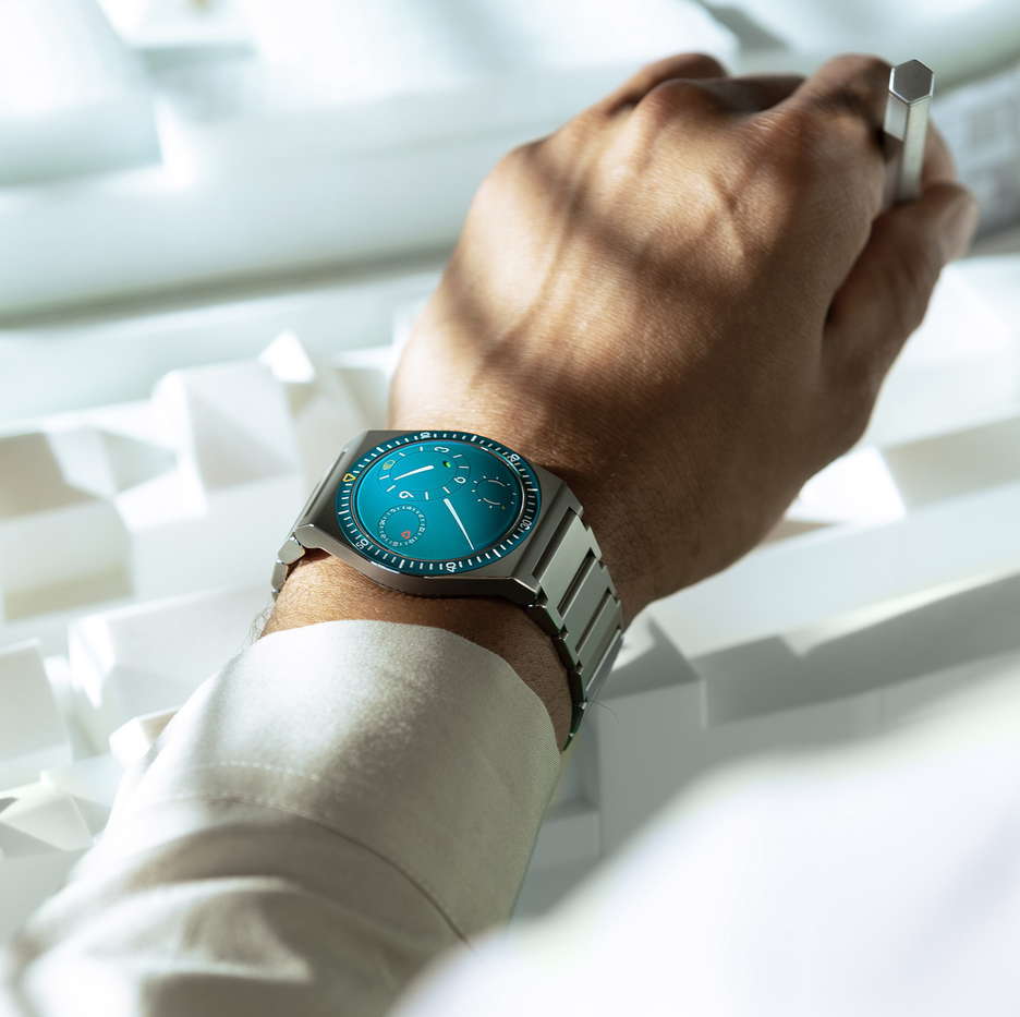 The Ressence TYPE 7 is a dynamic expression of time itself. Built with Grade 5 titanium and featuring the brand’s signature oil-filled dial, it offers an optical illusion of time floating directly on the sapphire crystal. The result? Unparalleled legibility and an immersive experience. Designed for those who move with the world, the TYPE 7 is rugged yet refined, technical yet intuitive, and the most advanced tool watch Ressence has ever created. Available in two striking editions—Night Blue and the 15th-anniversary TYPE 7 XV Aquamarine limited edition—it embodies the brand’s philosophy of “Simplification,” removing the unnecessary to reveal pure horological essence. The TYPE 7 is built for life on the go. Whether navigating city streets or crossing time zones, its lightweight titanium case and ergonomically integrated bracelet ensure all-day comfort. For the first time, Ressence introduces a GMT function incorporated into the orbital display, allowing wearers to track a second time zone with effortless precision. Underneath, the patented ROCS 7 movement operates via a magnetic transmission system, allowing the oil-filled upper chamber to function independently from the mechanical base calibre—ensuring smooth, uninterrupted motion. Durability meets innovation with Ressence’s Compression Lock System (RCLS), ensuring water resistance up to 50 meters. The XV Aquamarine features a lightweight aluminum bezel for a fresh, modern feel, while the Night Blue has a ceramic bezel for a deeper, more luxurious finish. Optical clarity is another hallmark, with oil eliminating refraction to create a dial that appears almost projected onto the crystal. Even in extreme conditions, a self-adjusting bellows system maintains precision, while Grade A Super-LumiNova ensures visibility in the darkest environments.