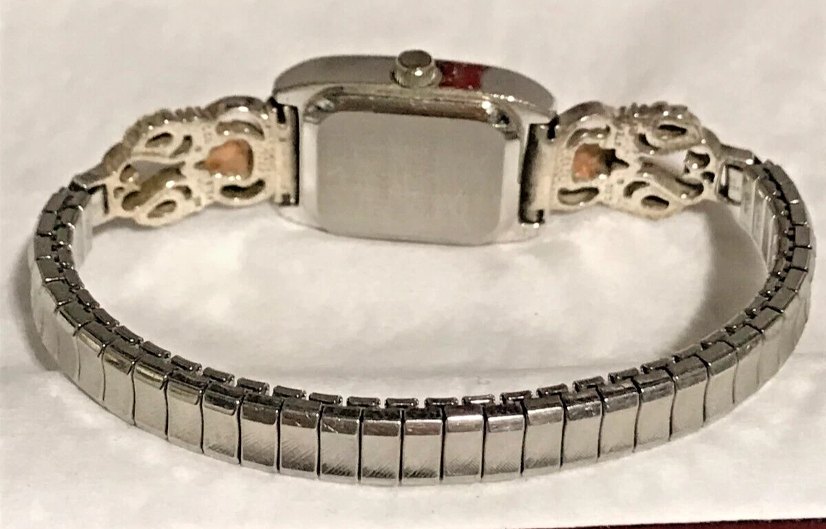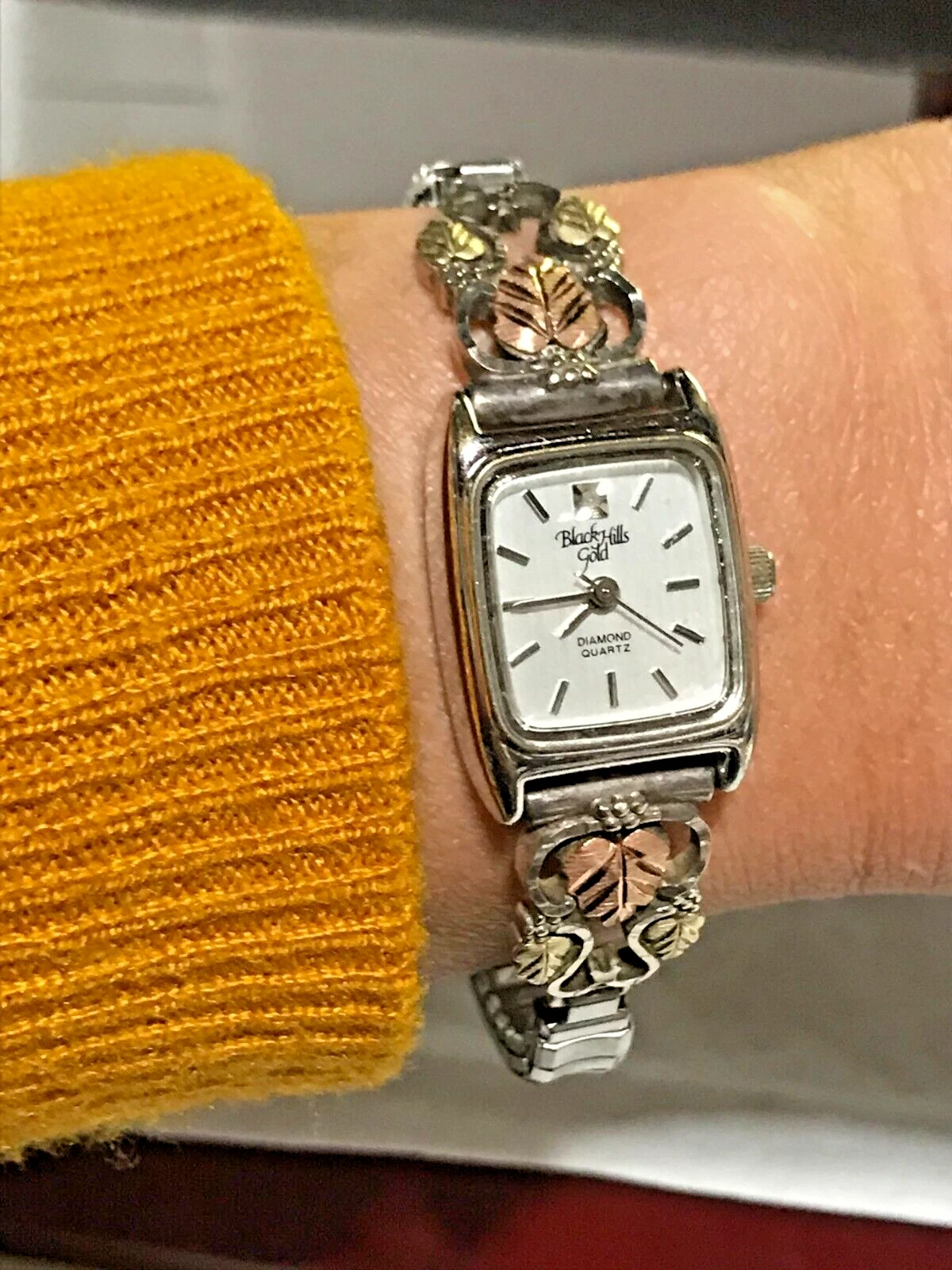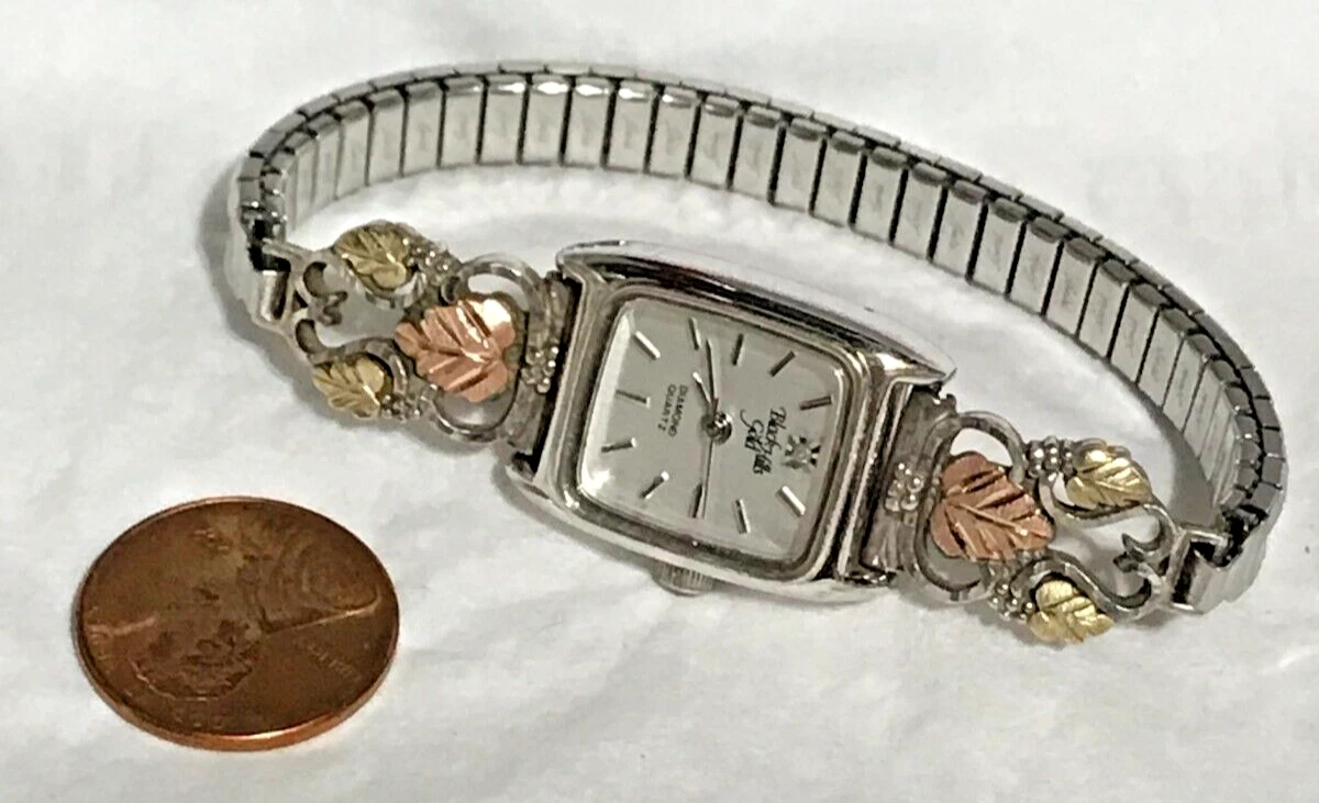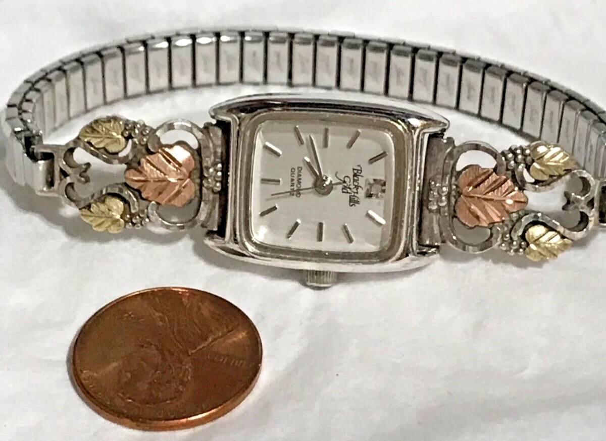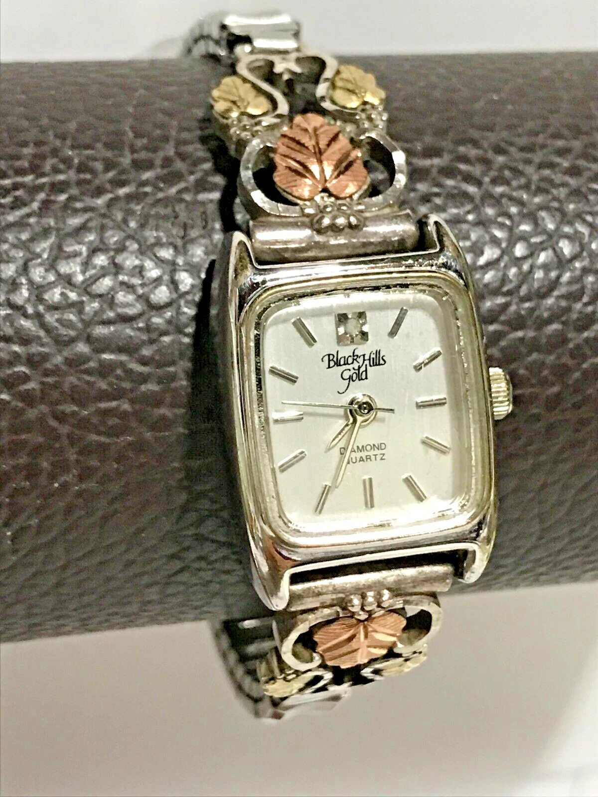 Vintage Black Hills Gold Diamond 12K Leaves Sterling Silver Ladies Watch Works