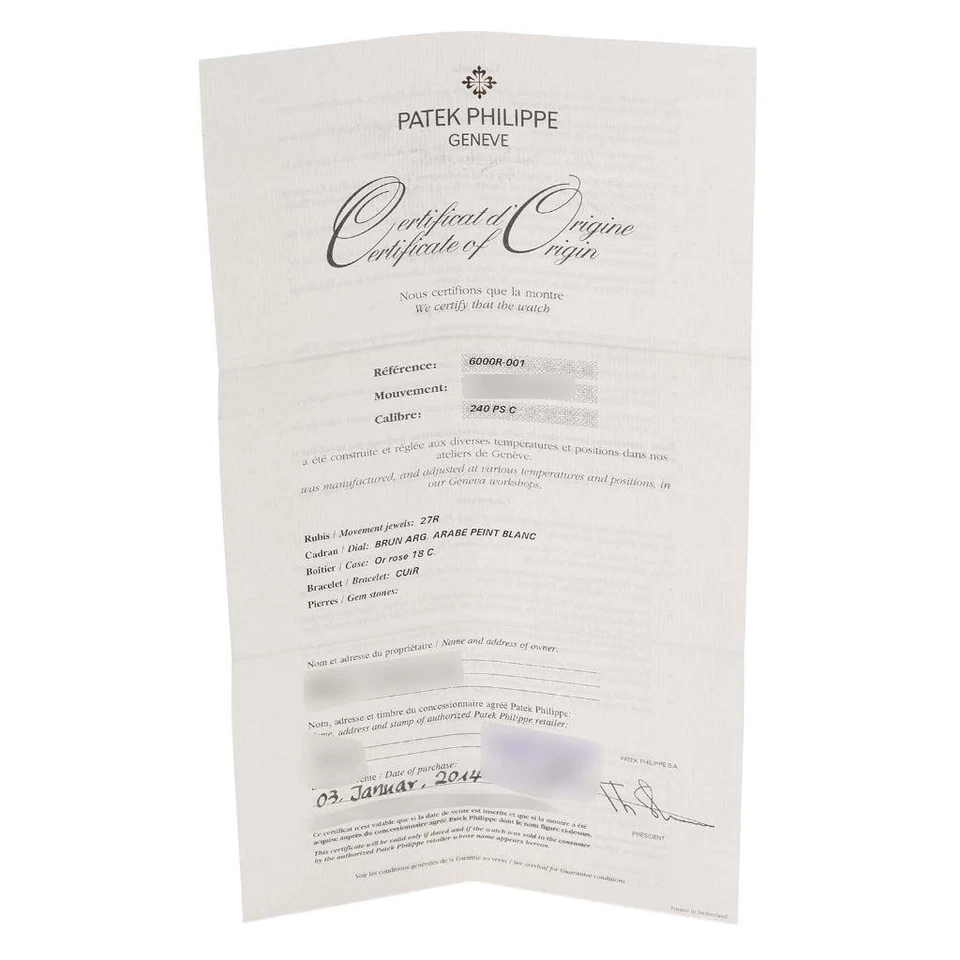 Patek Philippe Calatrava Rose Gold Brown Dial Mens Watch 6000R Box Papers