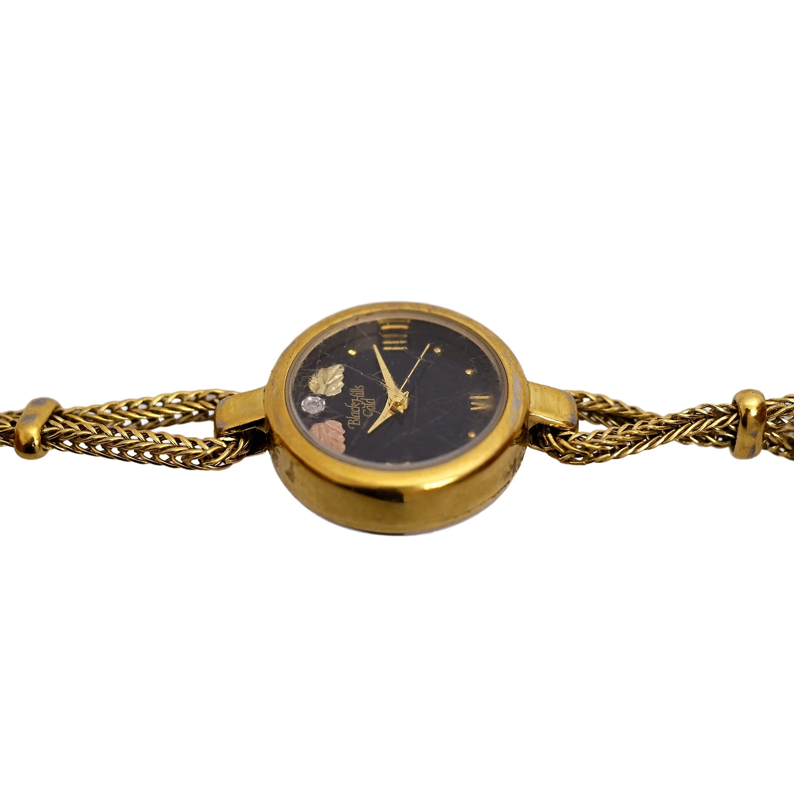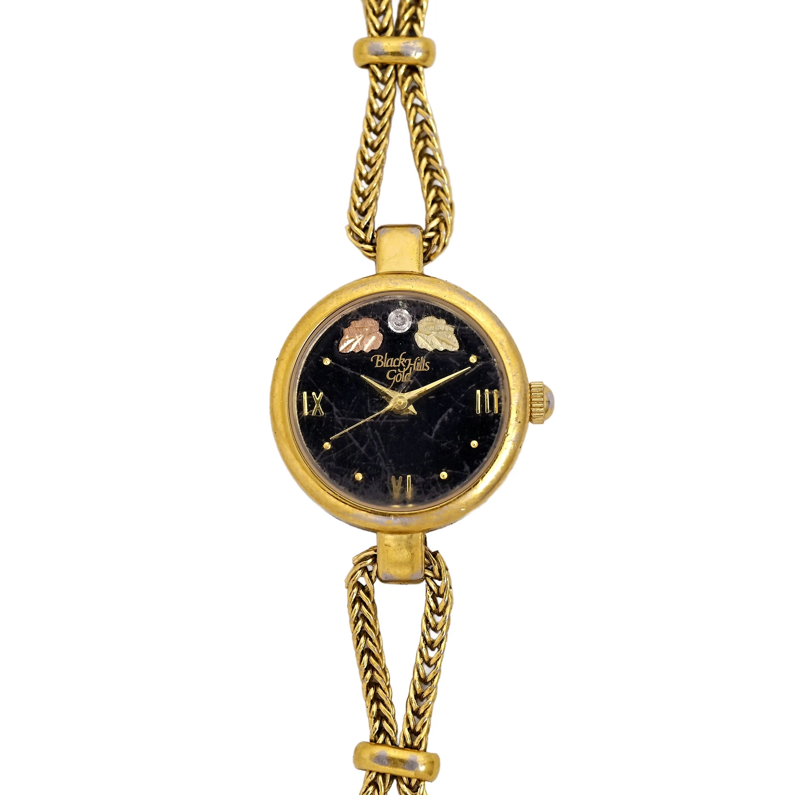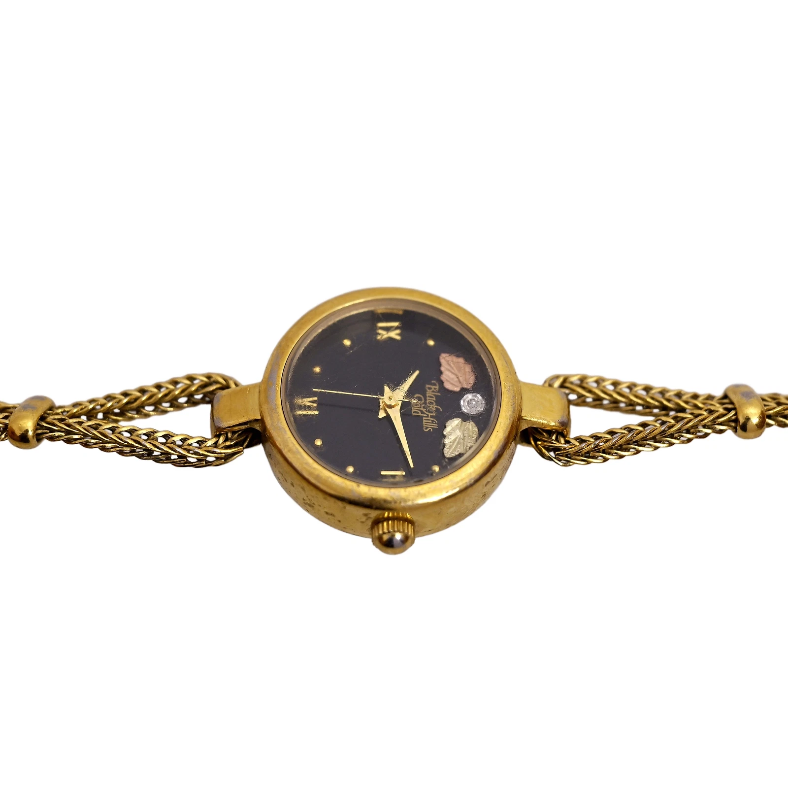 Black Hills 12k Gold Diamond Black Dial Ladies Dress Watch 22mm