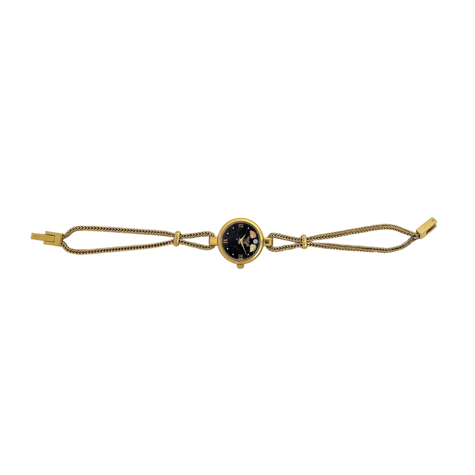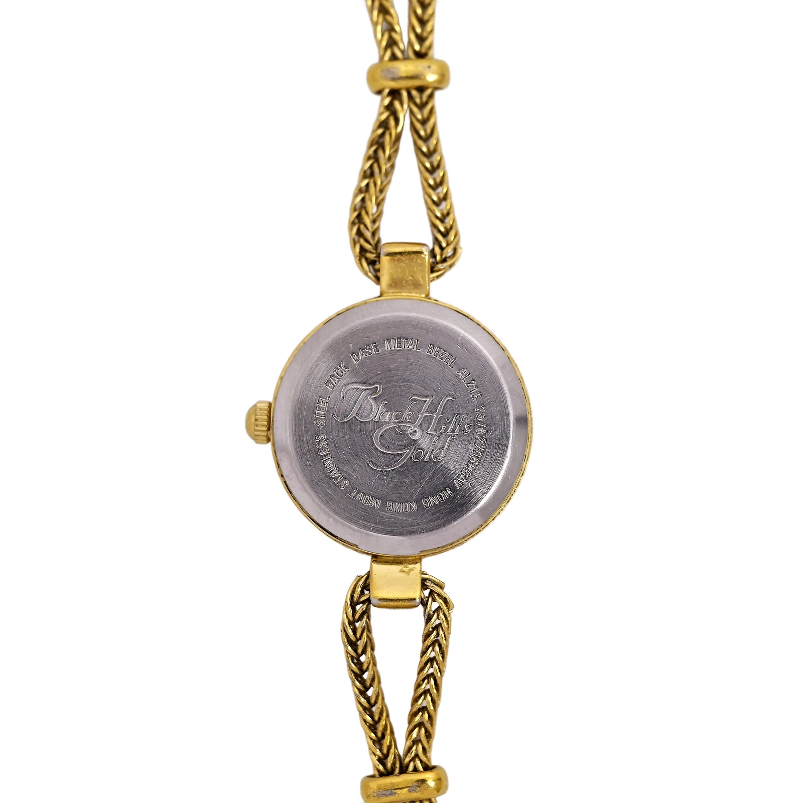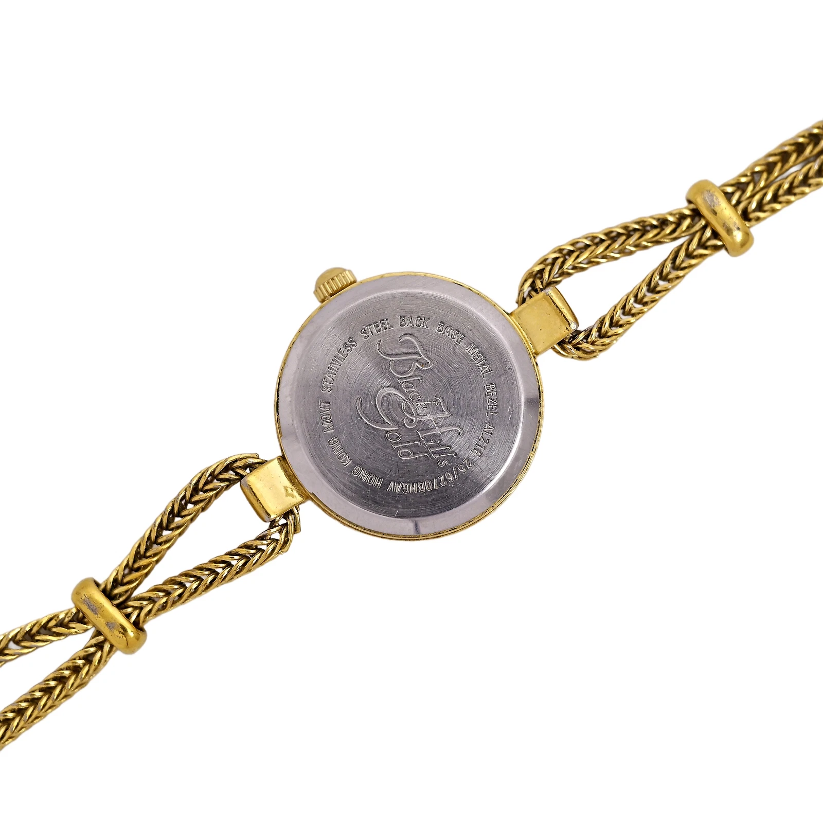Black Hills 12k Gold Diamond Black Dial Ladies Dress Watch 22mm