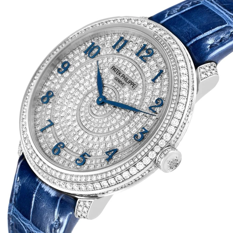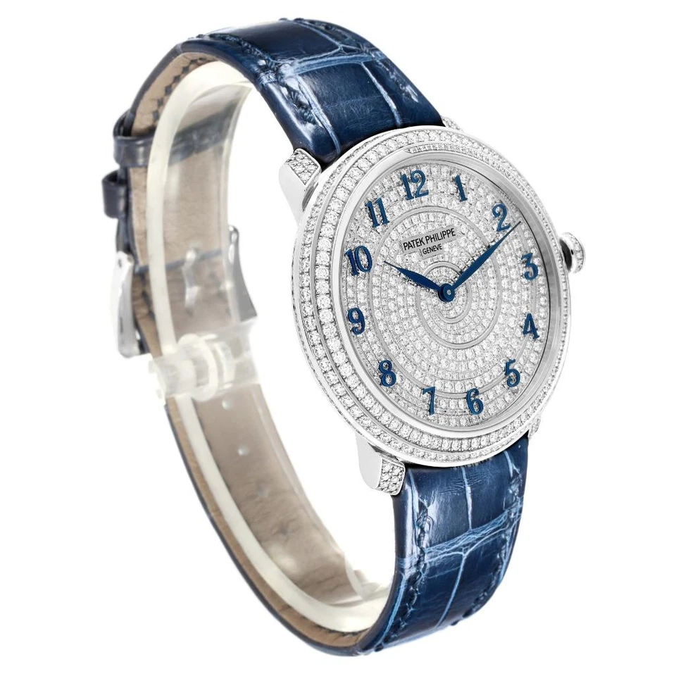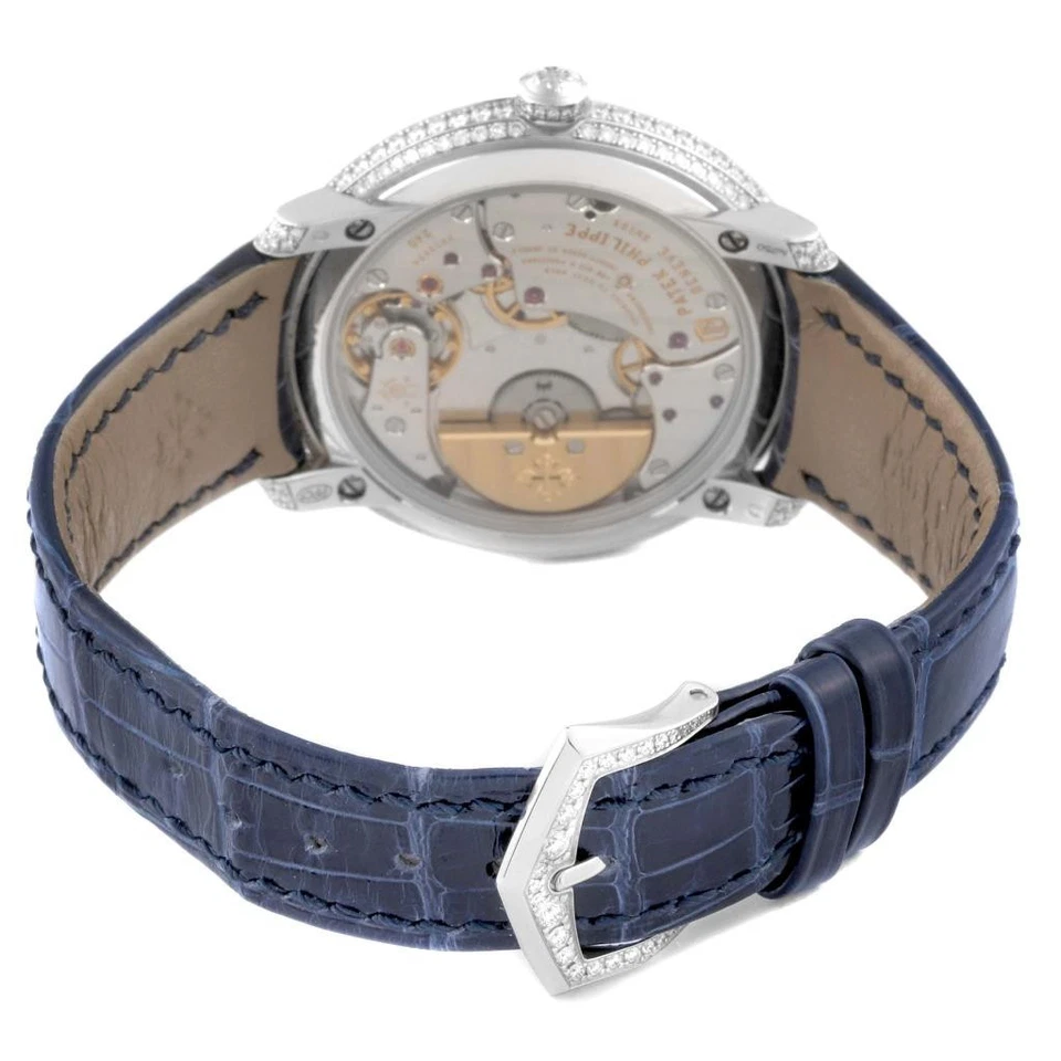 Patek Philippe Calatrava White Gold Blue Dial Diamond Ladies Watch 4978