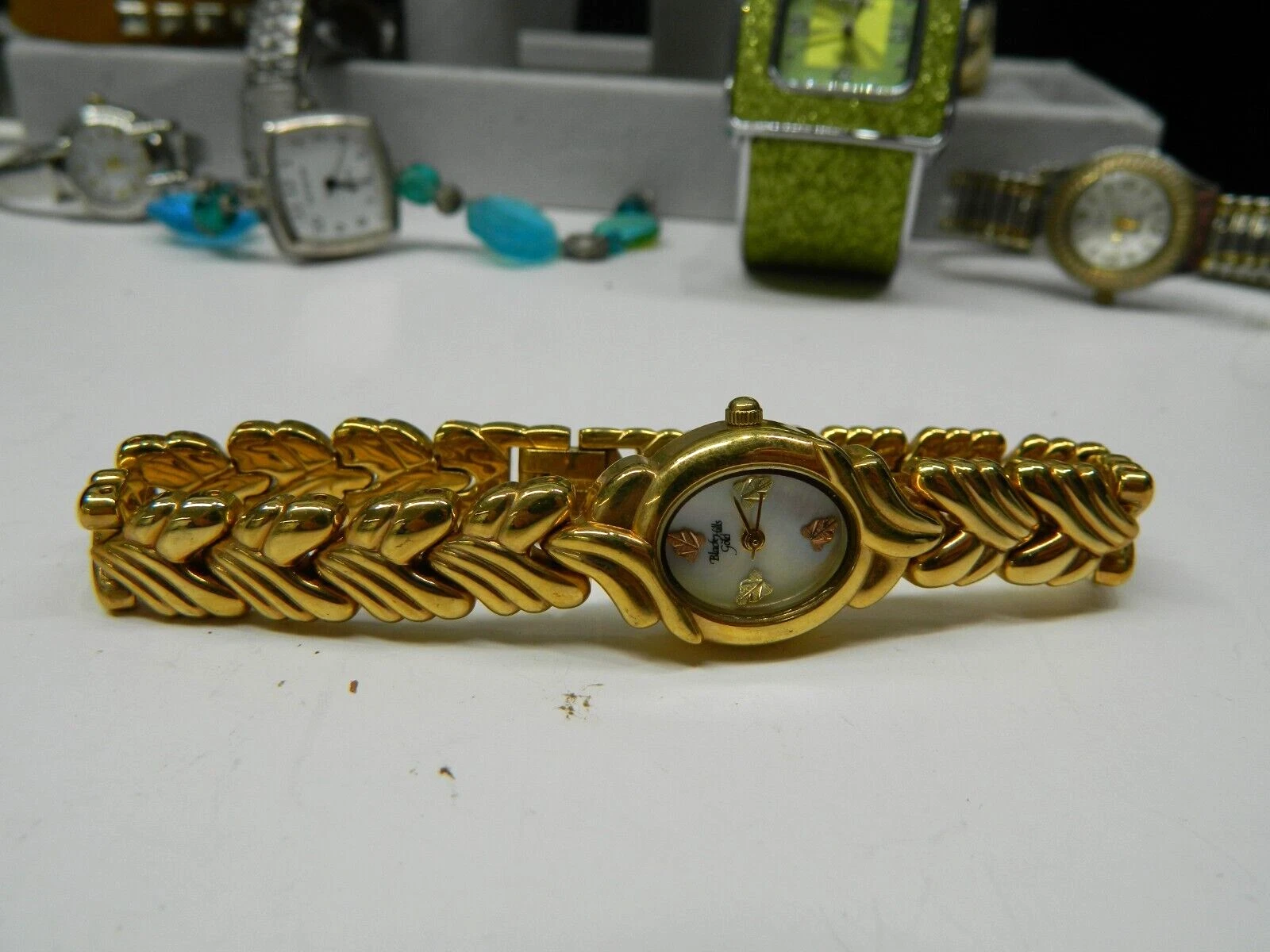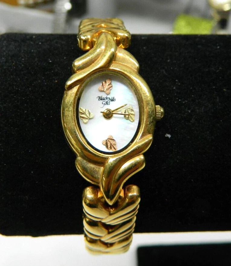 Beautiful BLACK HILLS GOLD 10k Plated MOP & Leaves face lady's watch/wristwatch