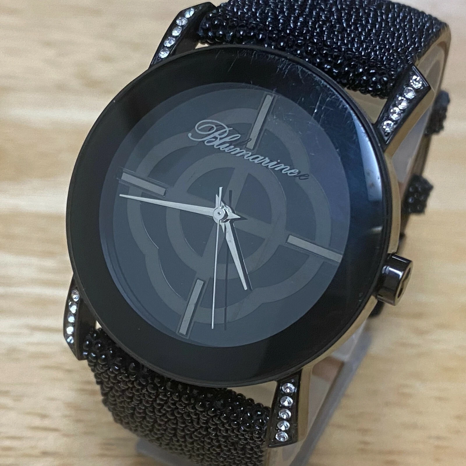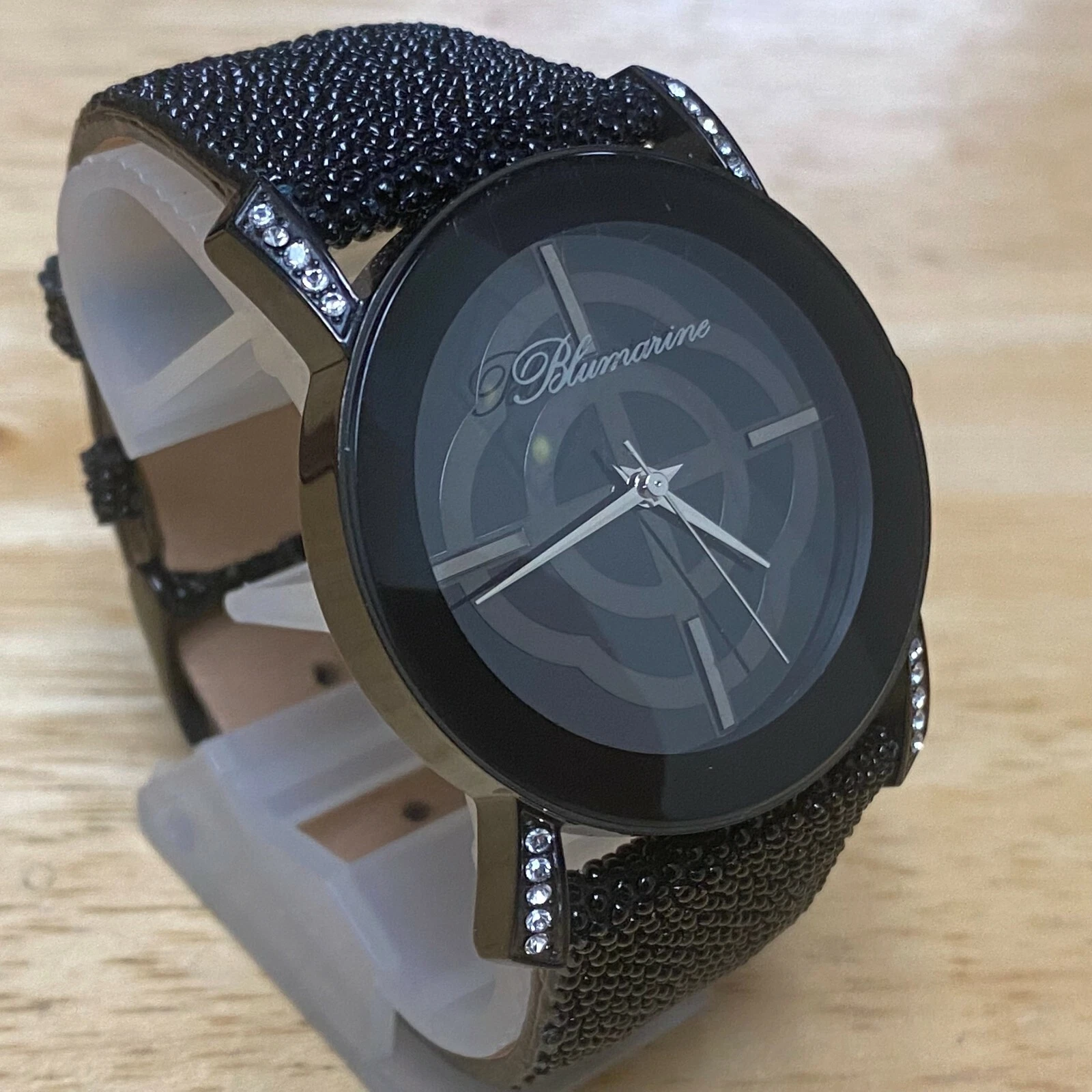 Blumarine Vera Pelle Leather 30m All Black Steel Analog Quartz Watch~New Battery