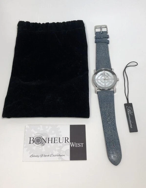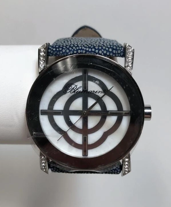 NEW Blumarine BM.3067L/30Z Women's Blue Textured Leather MOP Dial Crystal Watch