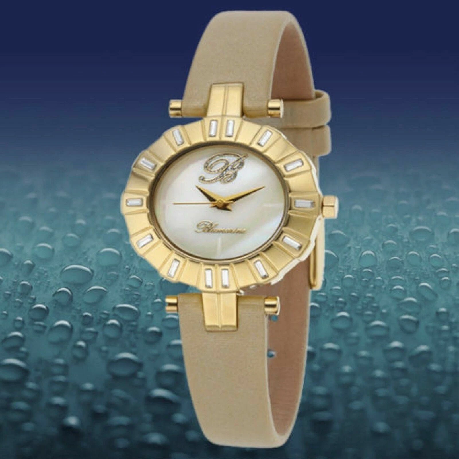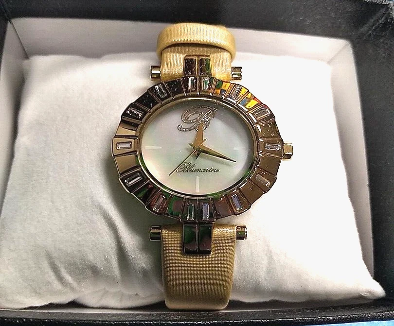 NEW Blumarine 3151LS/01 Women's Essence Crystal MOP Dial Beige Strap Gold Watch