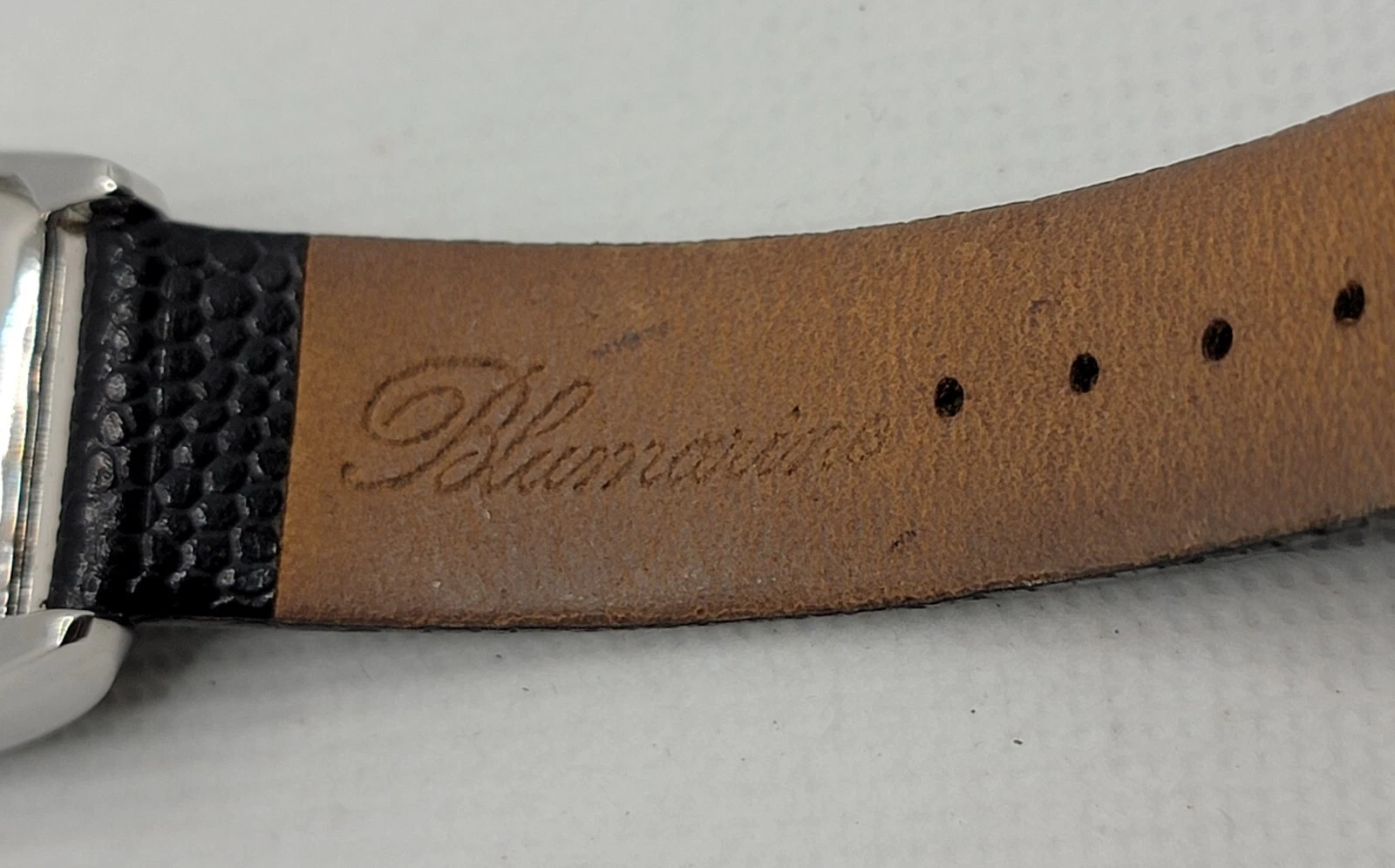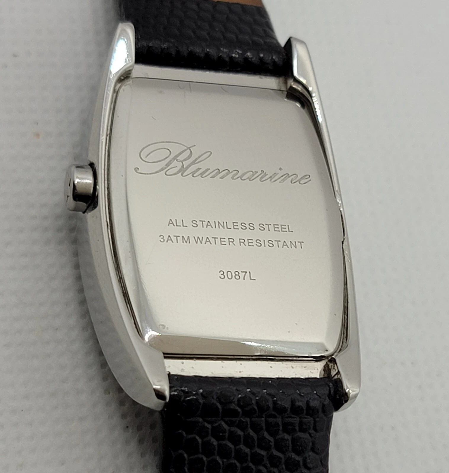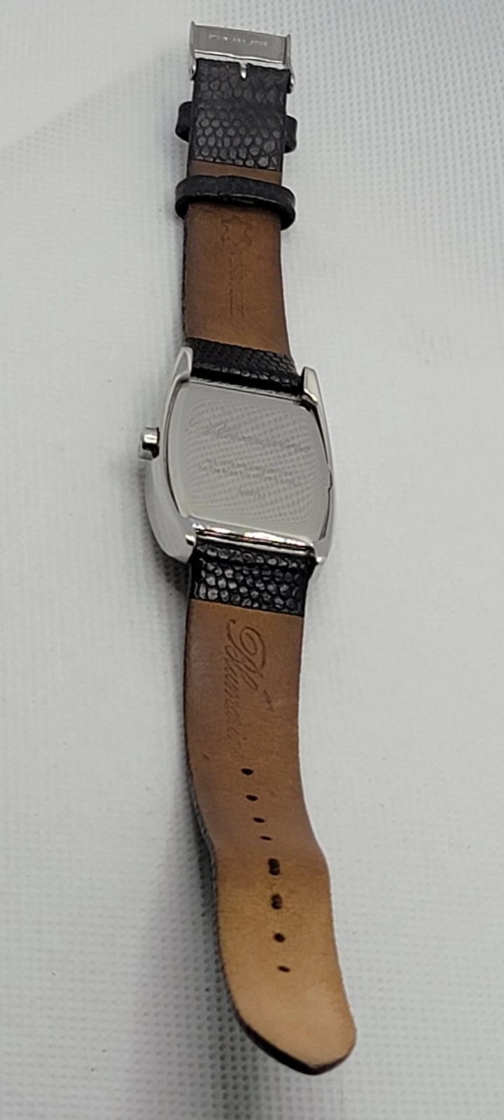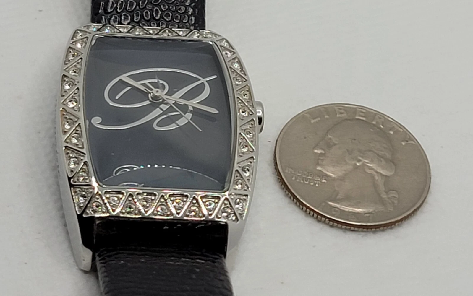 Ladies Blumarine Fancy Silver Tone Paved Bezel Black Dial Leather Band Watch J3