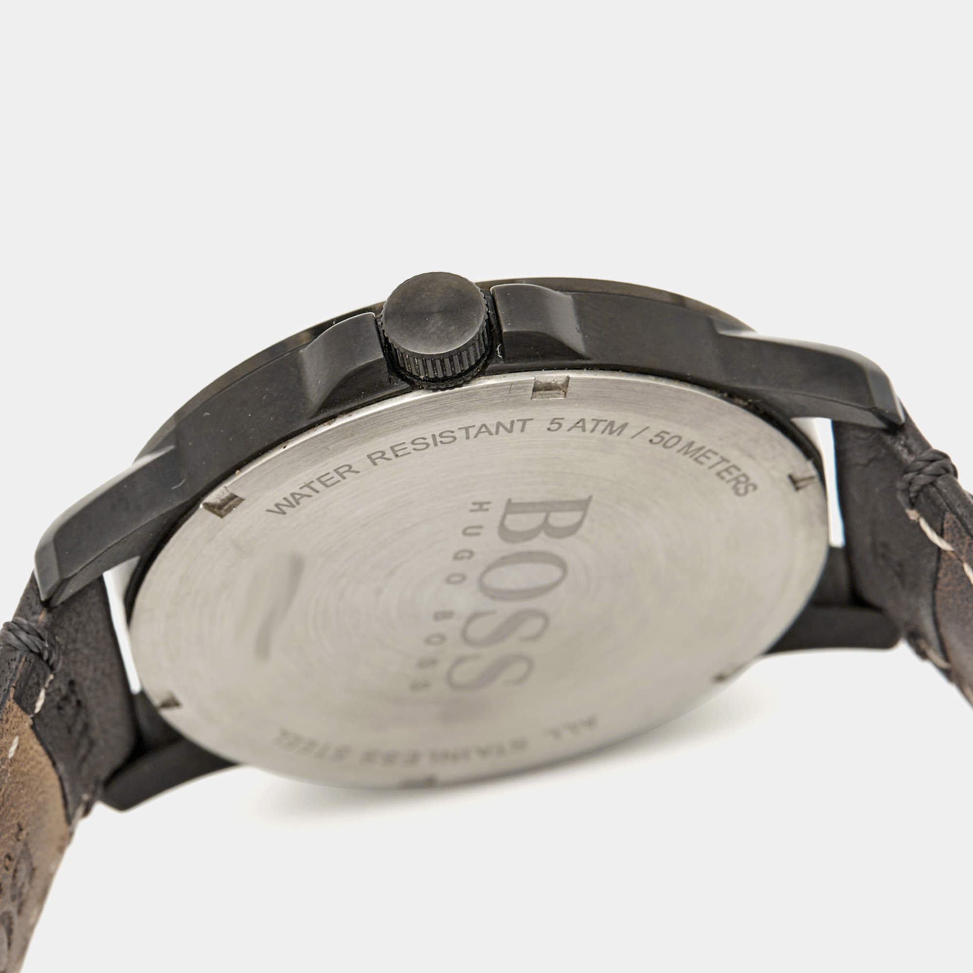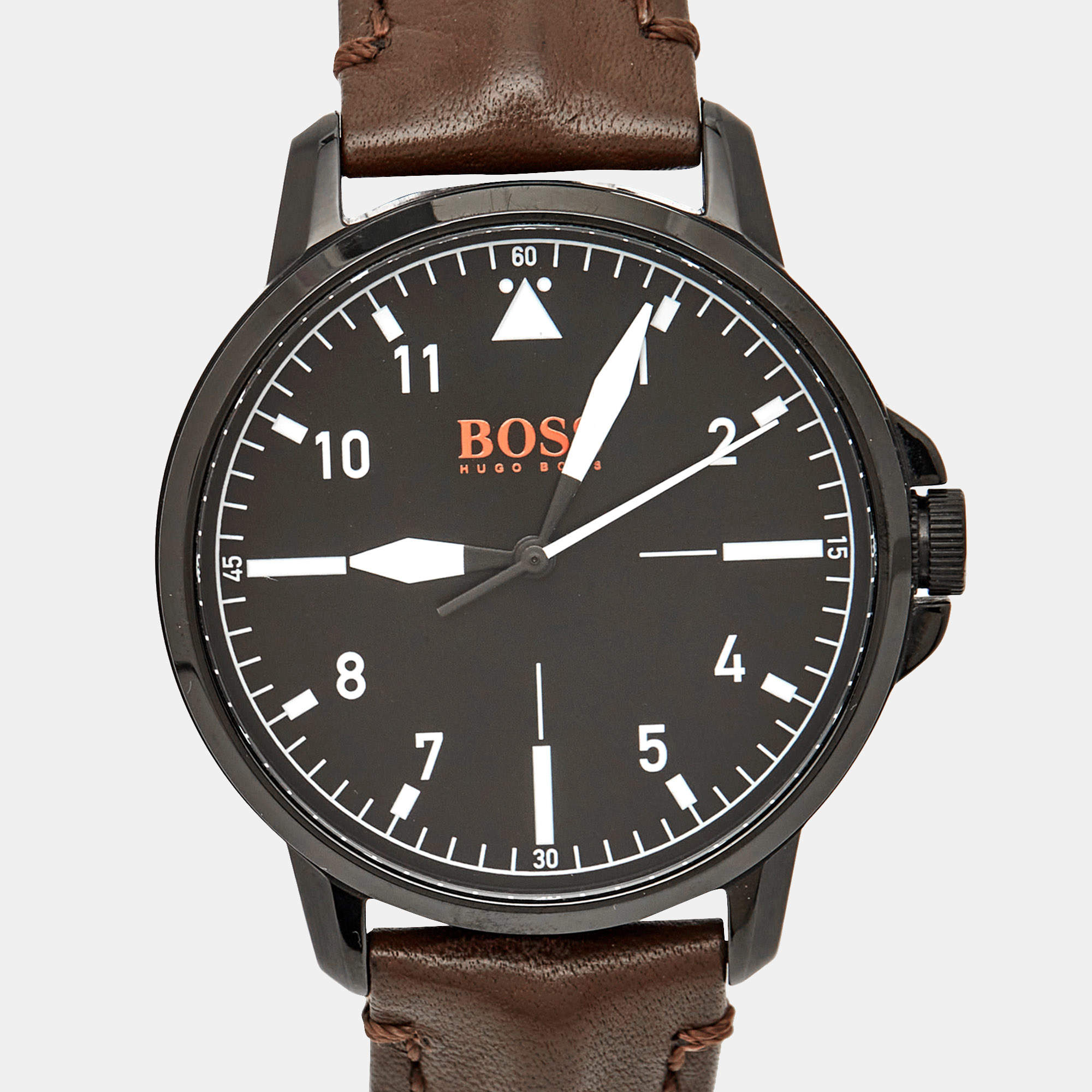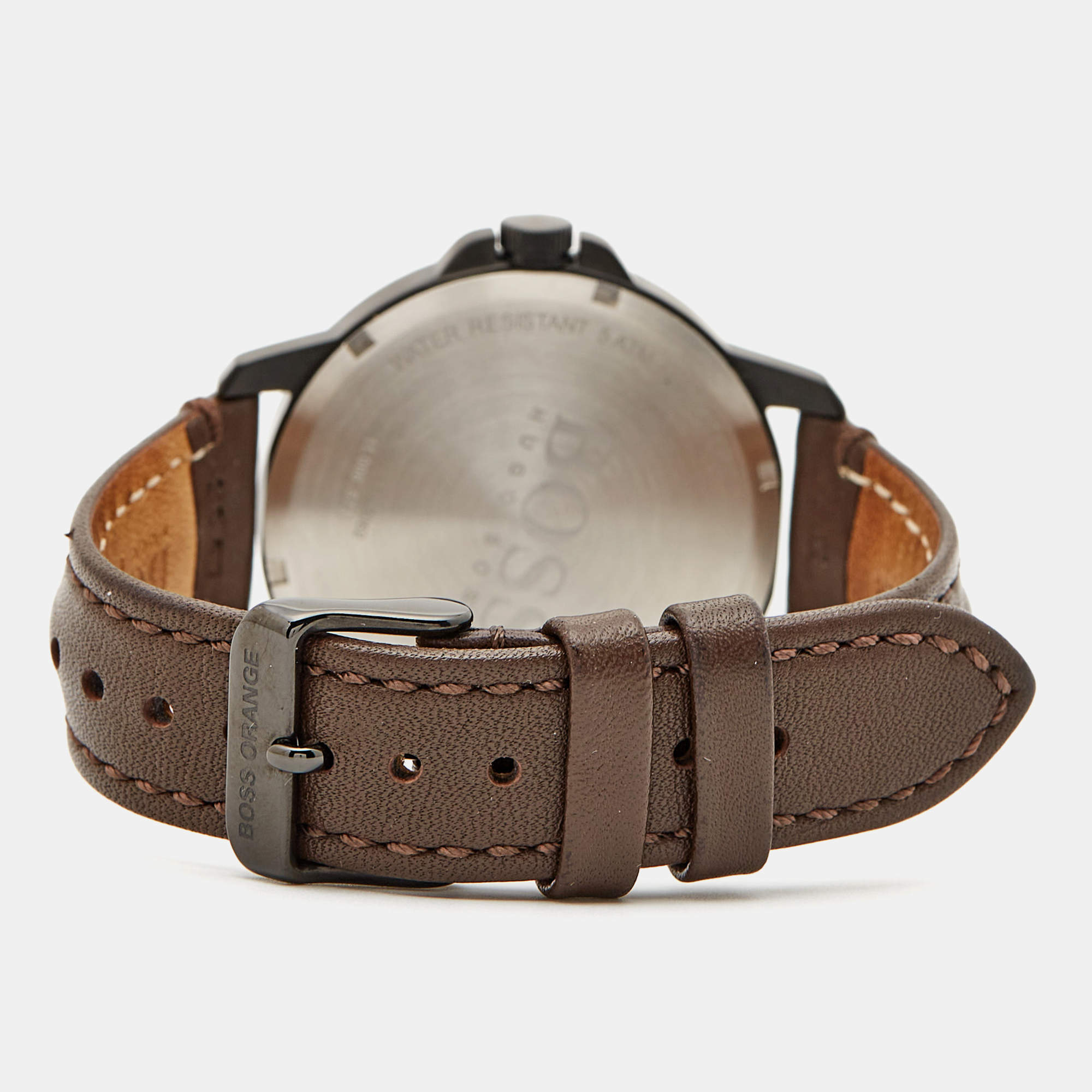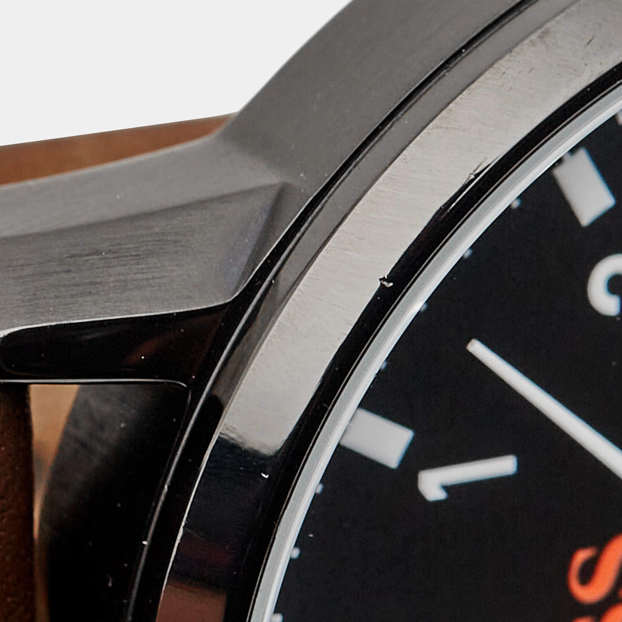 Boss By Hugo Boss Black Ion Plated Stainless Steel Leather Orange 1550062 Men's Wristwatch 42 mm