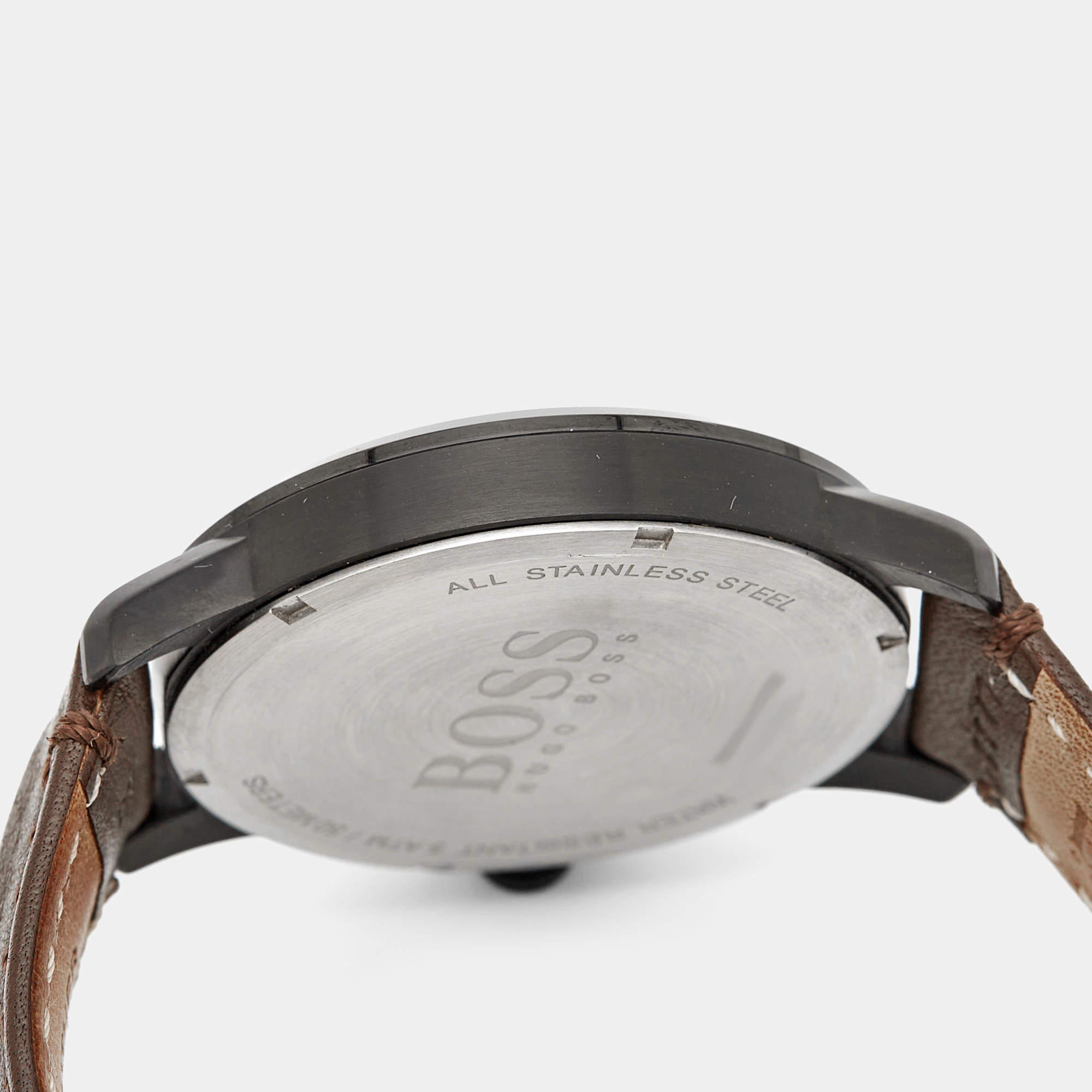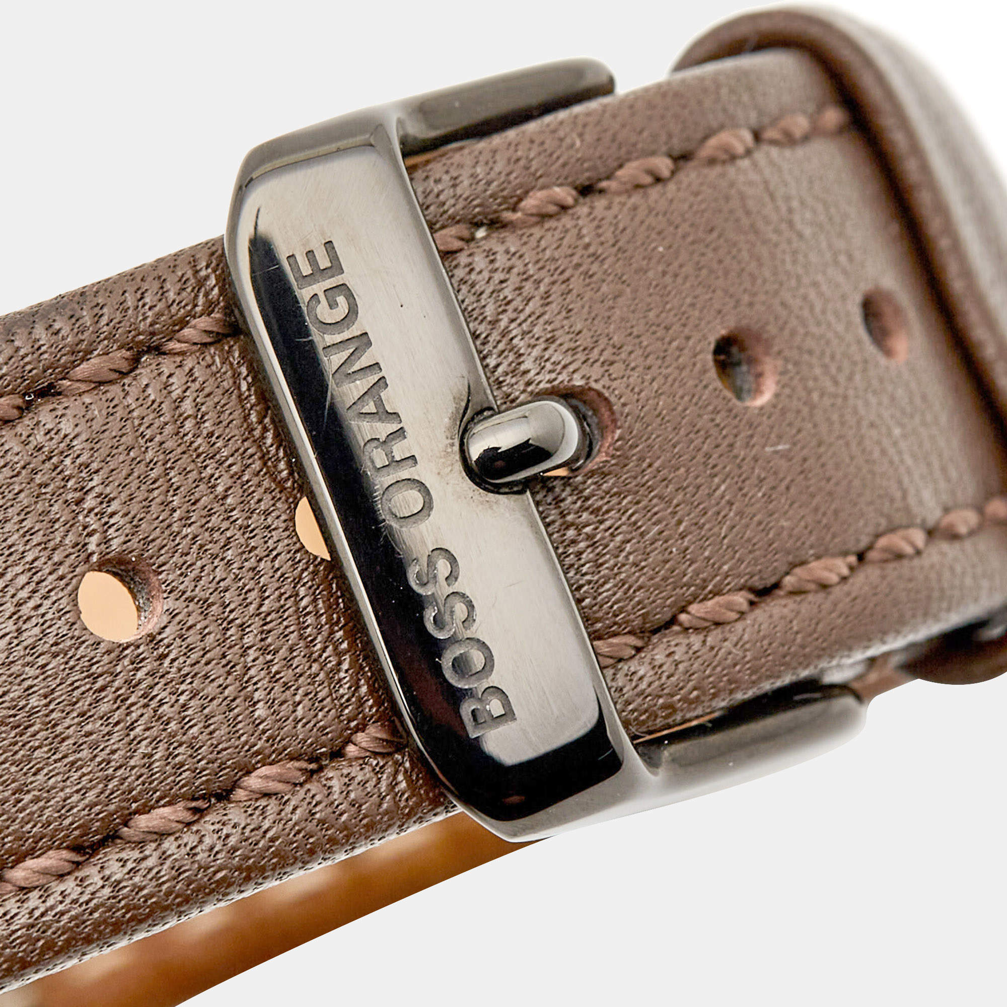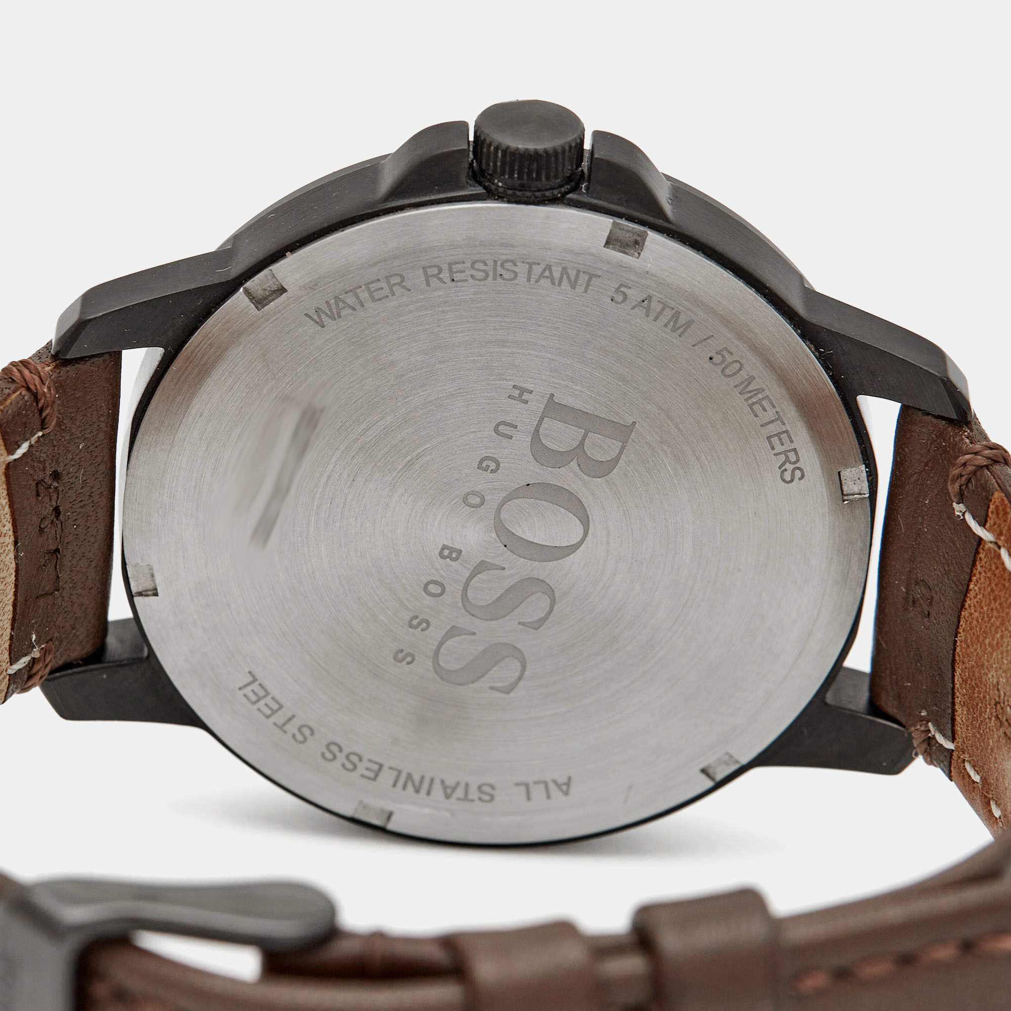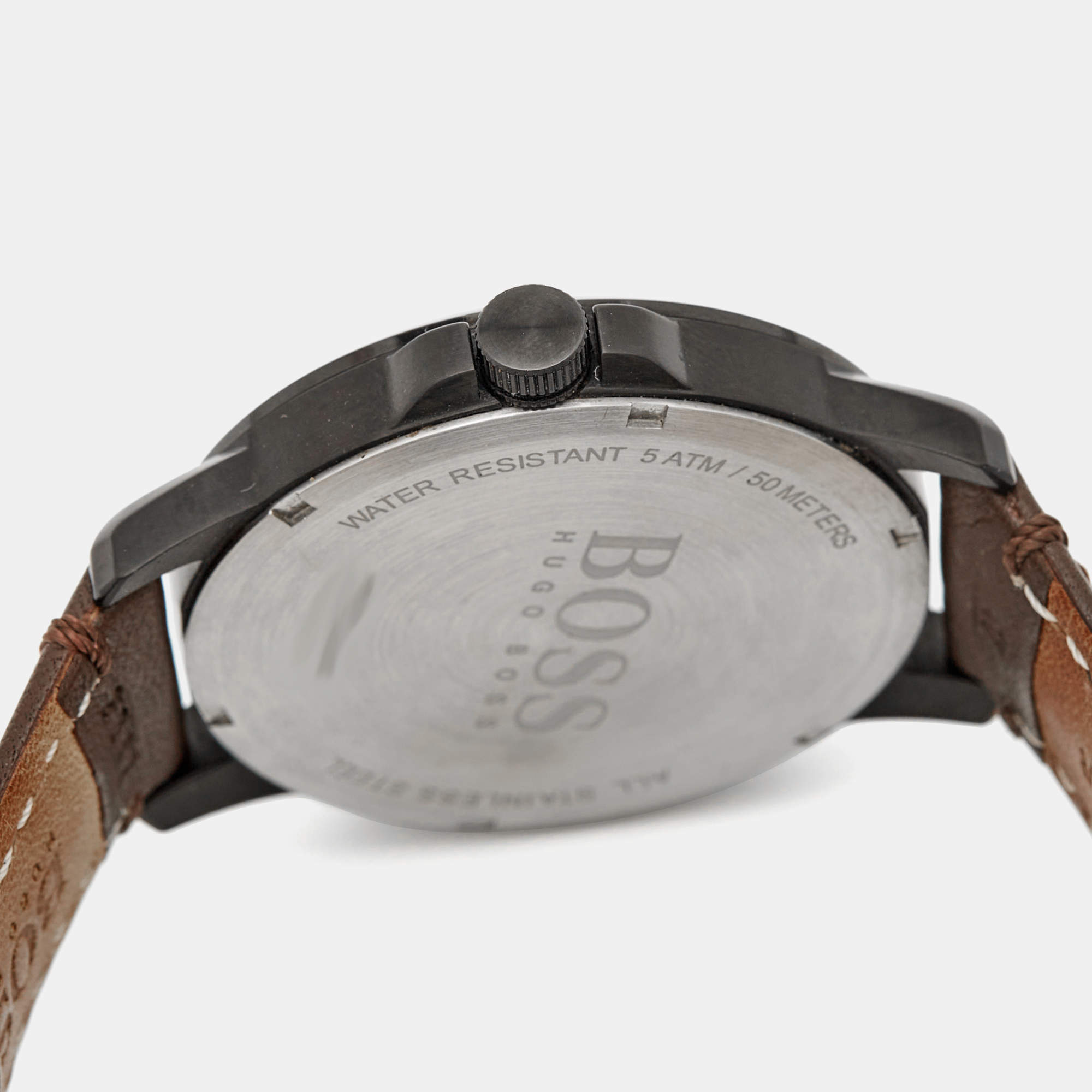 Boss By Hugo Boss Black Ion Plated Stainless Steel Leather Orange 1550062 Men's Wristwatch 42 mm