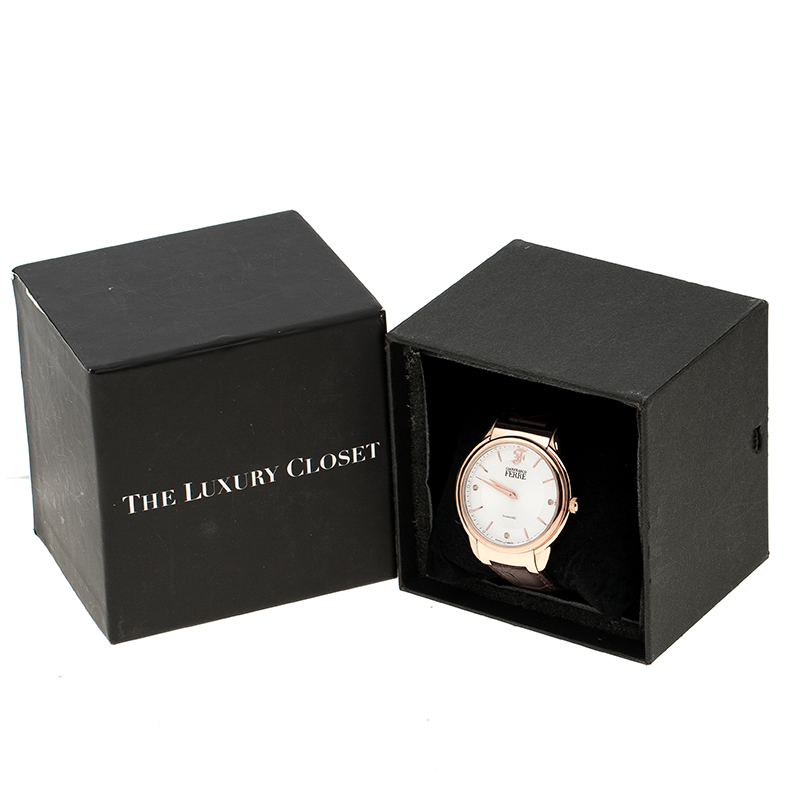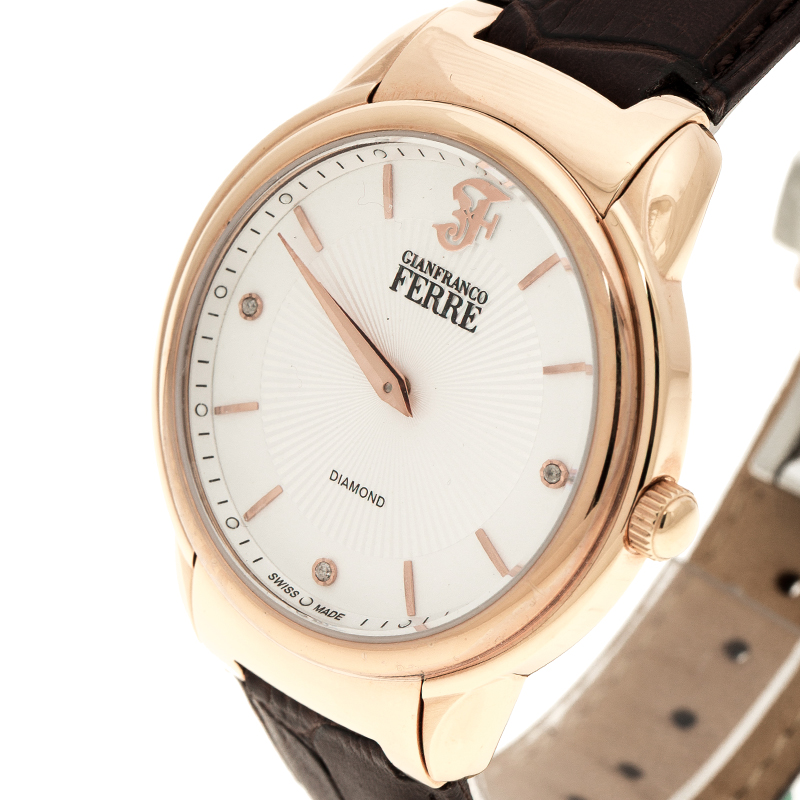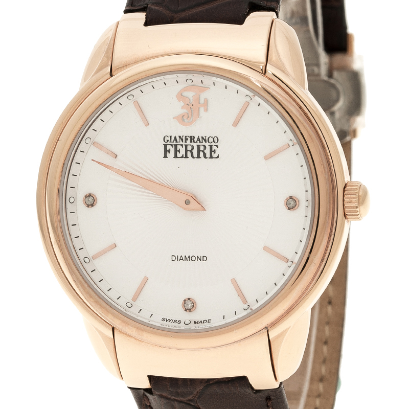 A stylish timepiece for those who take pride in their most important accessory. Crafted in the latest style, this watch by Gianfranco Ferre comes in a very stylish classical analog design. The leather straps are fitted for comfort while the gold-tone body shows off the glamour. The watch is embossed with the brand logo at the hour 12 position.