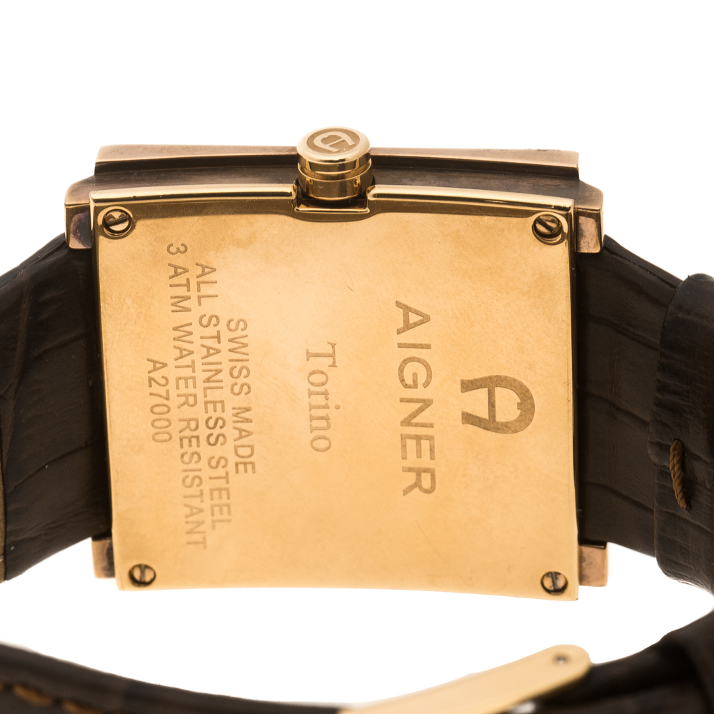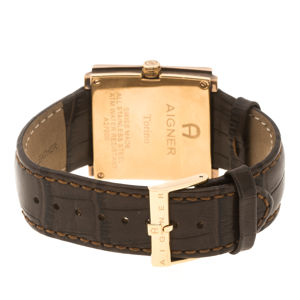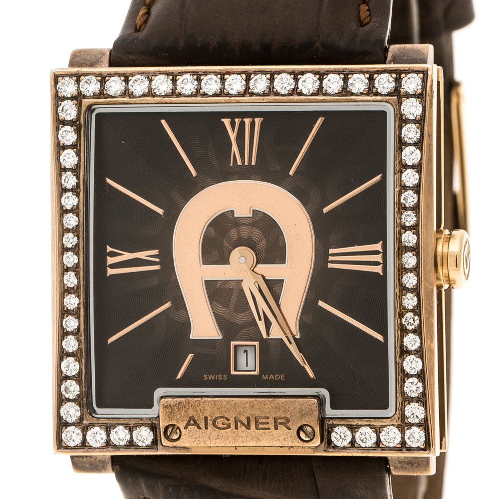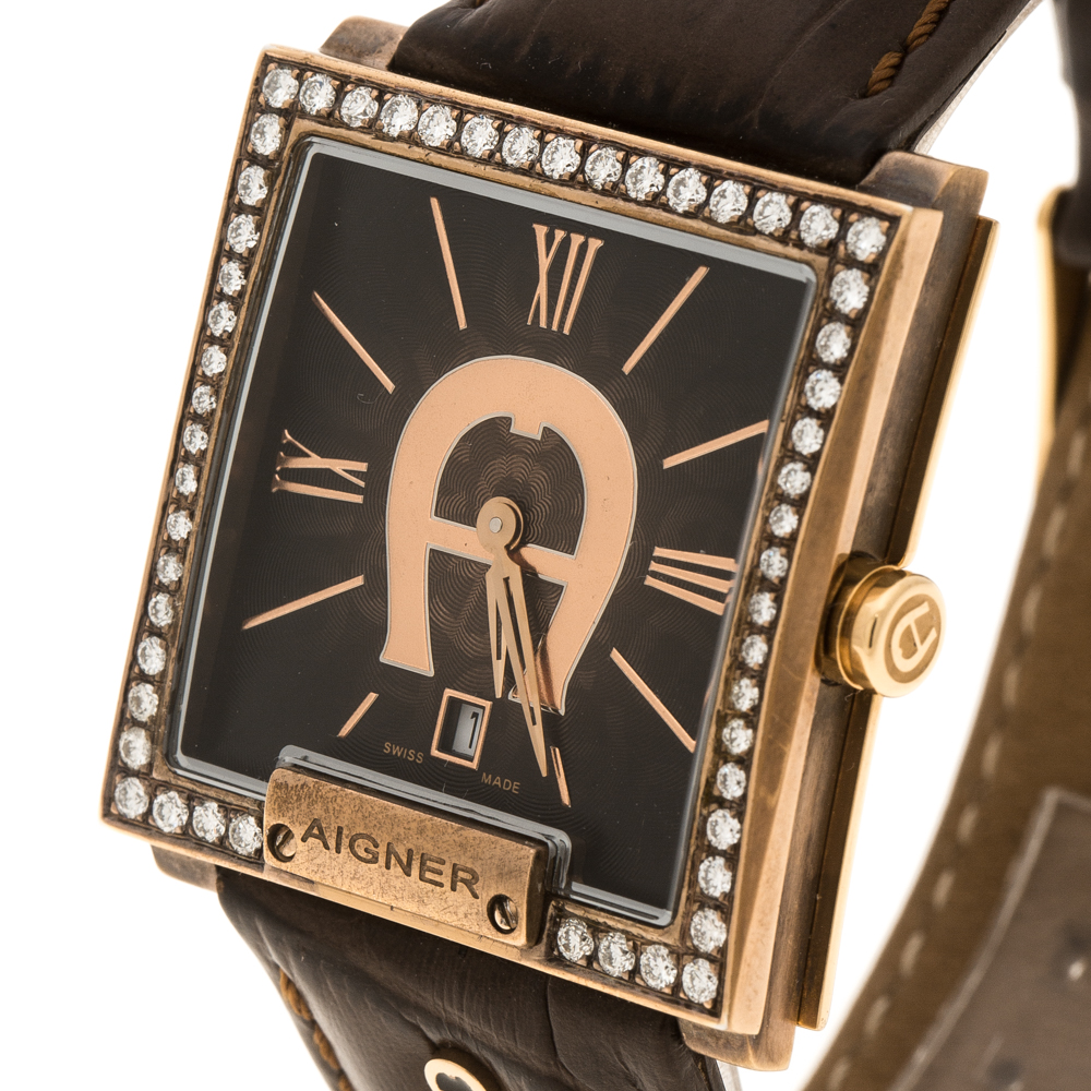 Experience luxury in a classic look with this timepiece by Aigner. Encrusted with tiny diamonds on the dial, this Torino style wristwatch is elegantly crafted to impart a look of pristine sophistication when paired with your evening ensemble. Let the exquisite charm of it's timeless design bring about a dapper transformation to your look.