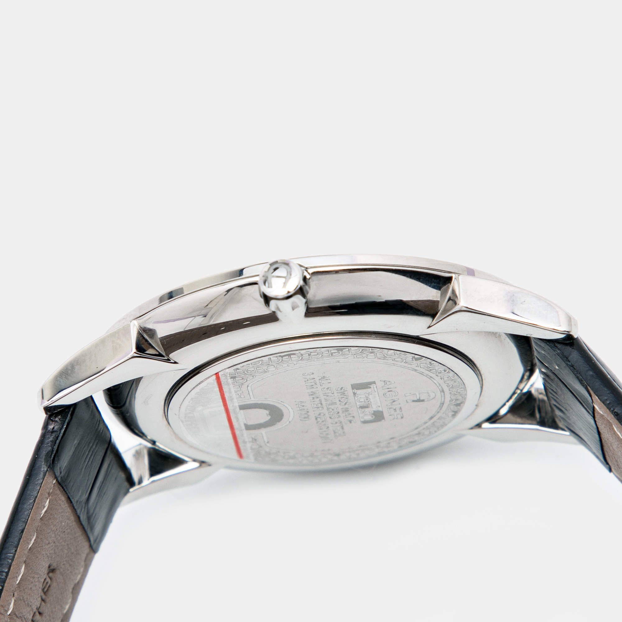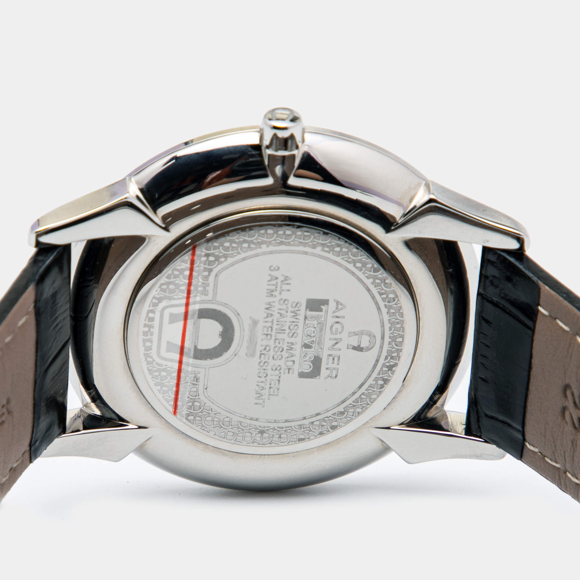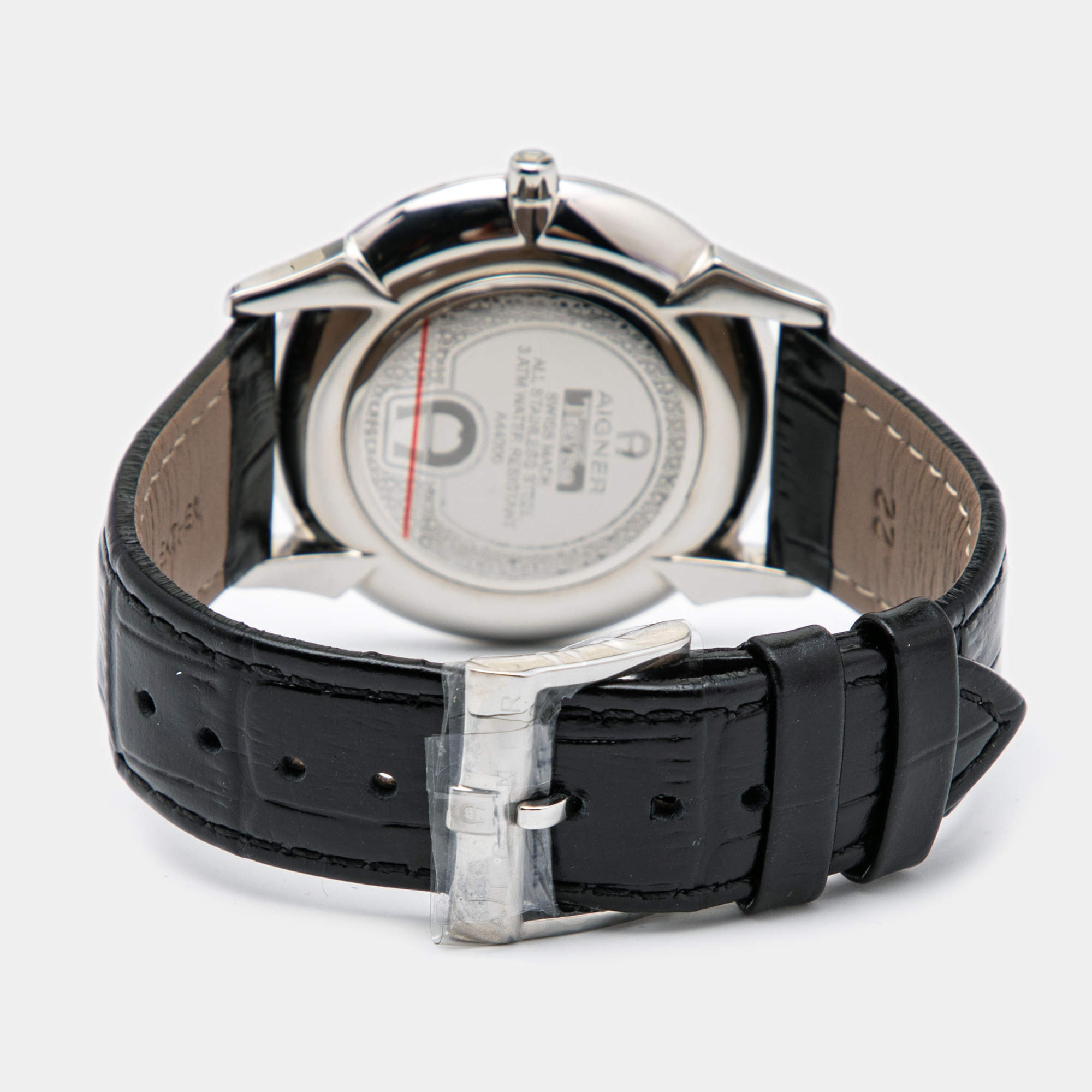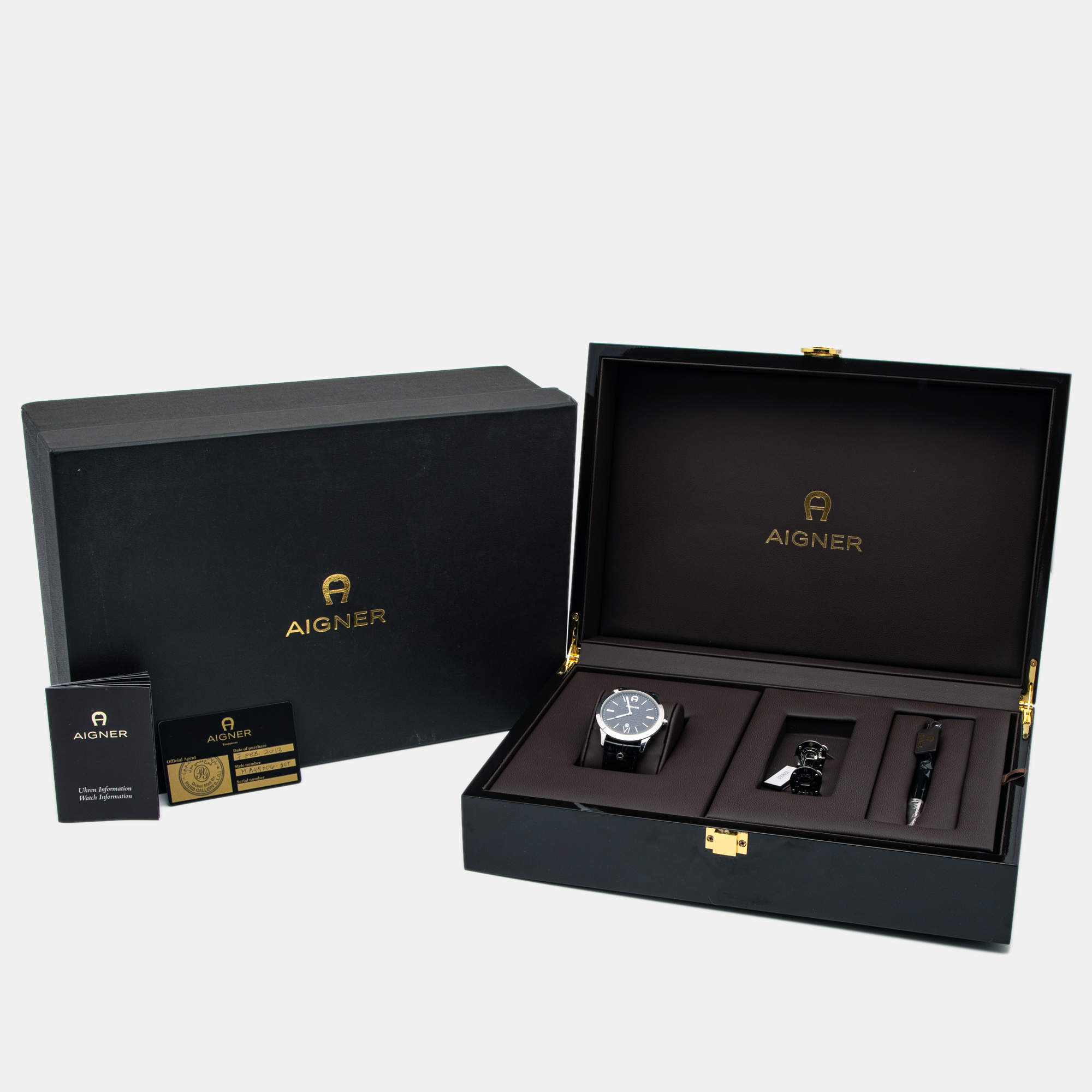 Aigner Black Stainless Steel Leather Treviso A44000 Men's Wristwatch 42 mm Cufflinks and Pen Set